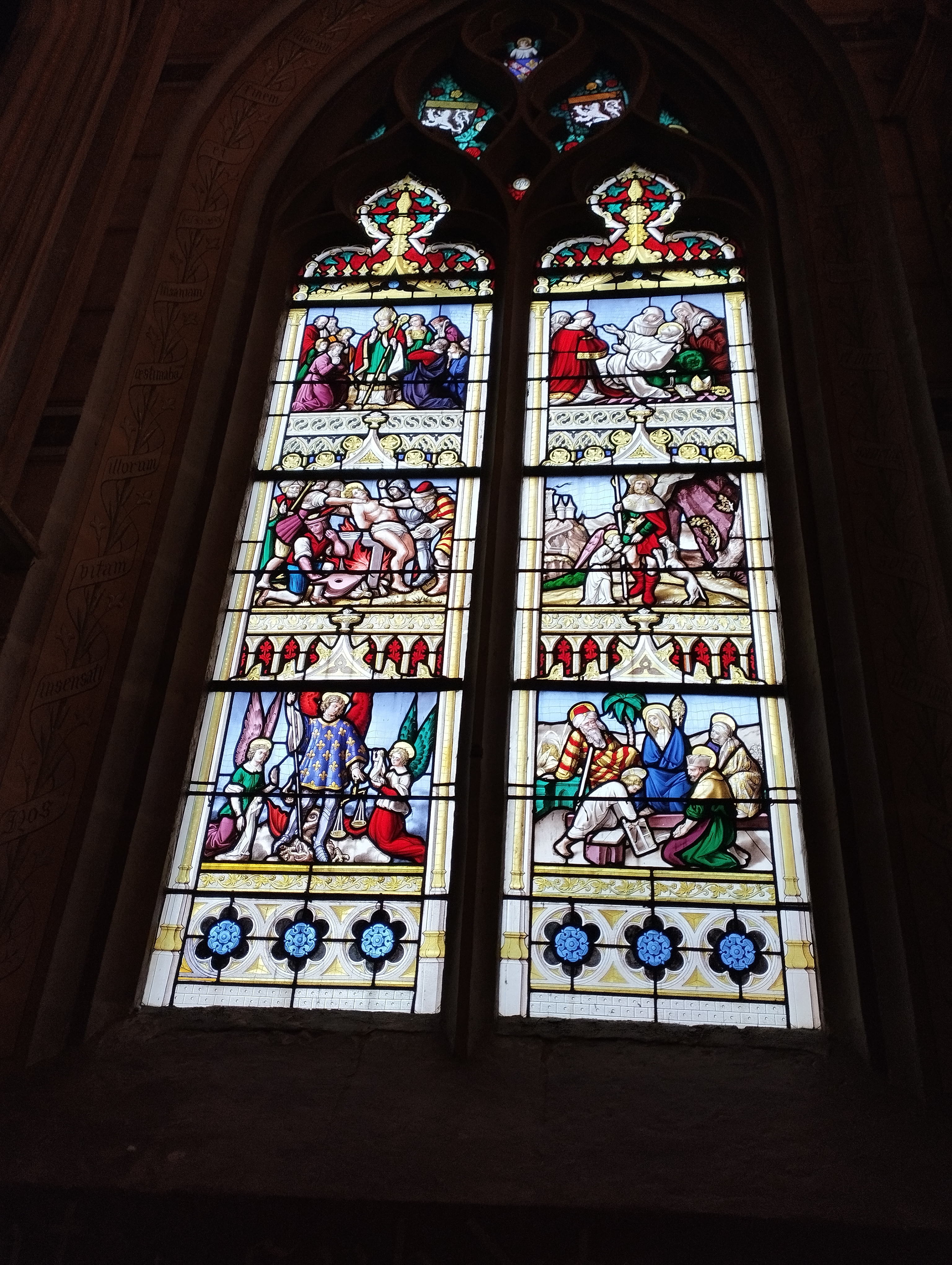 Il faut entrer pour apprécier le charme de cette église et découvrir les merveilles qui y sont préservées. La nef est d'une beauté non ostentatoire, sa voûte décorée de caissons peints et sa belle charpente apparente conduisent le regard vers un chœur spectaculaire. Une église du 15è qui abrite des vitraux du 15è et 16è et plusieurs objets classés de la même époque. Parmi eux, l'un m'a beaucoup plu : un ancien devant d'autel, présenté comme un tableau encadré, représente cinq scènes de la vie du Christ et de la Vierge, je l'ai trouvé en tous points remarquable, sa restauration est superbe.