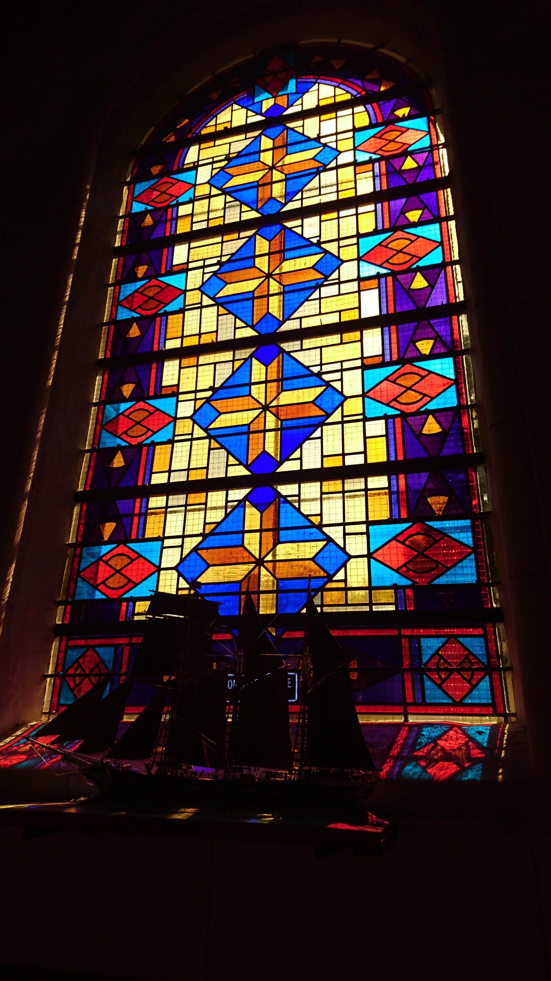 Trop bien, très belle église, bien entretenue et décorée, avec des bateaux, des vitraux colorés où ce jour de soleil les rayons diffusaient de belles couleurs, c'est un lieu à recommander sans hésitation, pour toutes les personnes qui veulent se recueillir ... Bien-sûr beaucoup de visiteurs pendant les vacances pour pouvoir méditer tranquillement ! Dans l'ensemble les gens respect ce lieu de prières, sauf évidemment quelques 'spécimens' que nous pouvons retrouver un peu partout. Si vous passez par là, allez-y vous ne serez pas déçu.