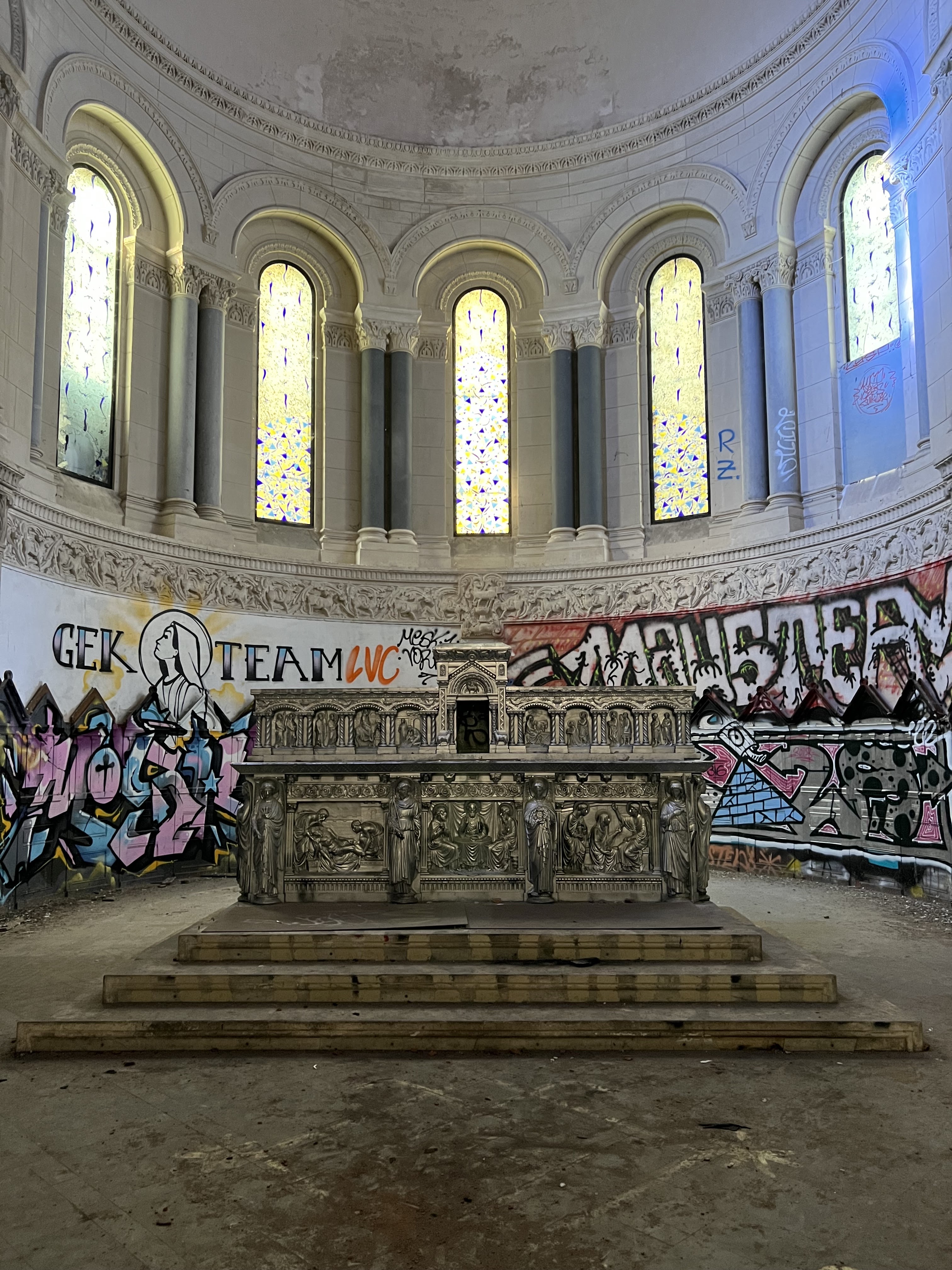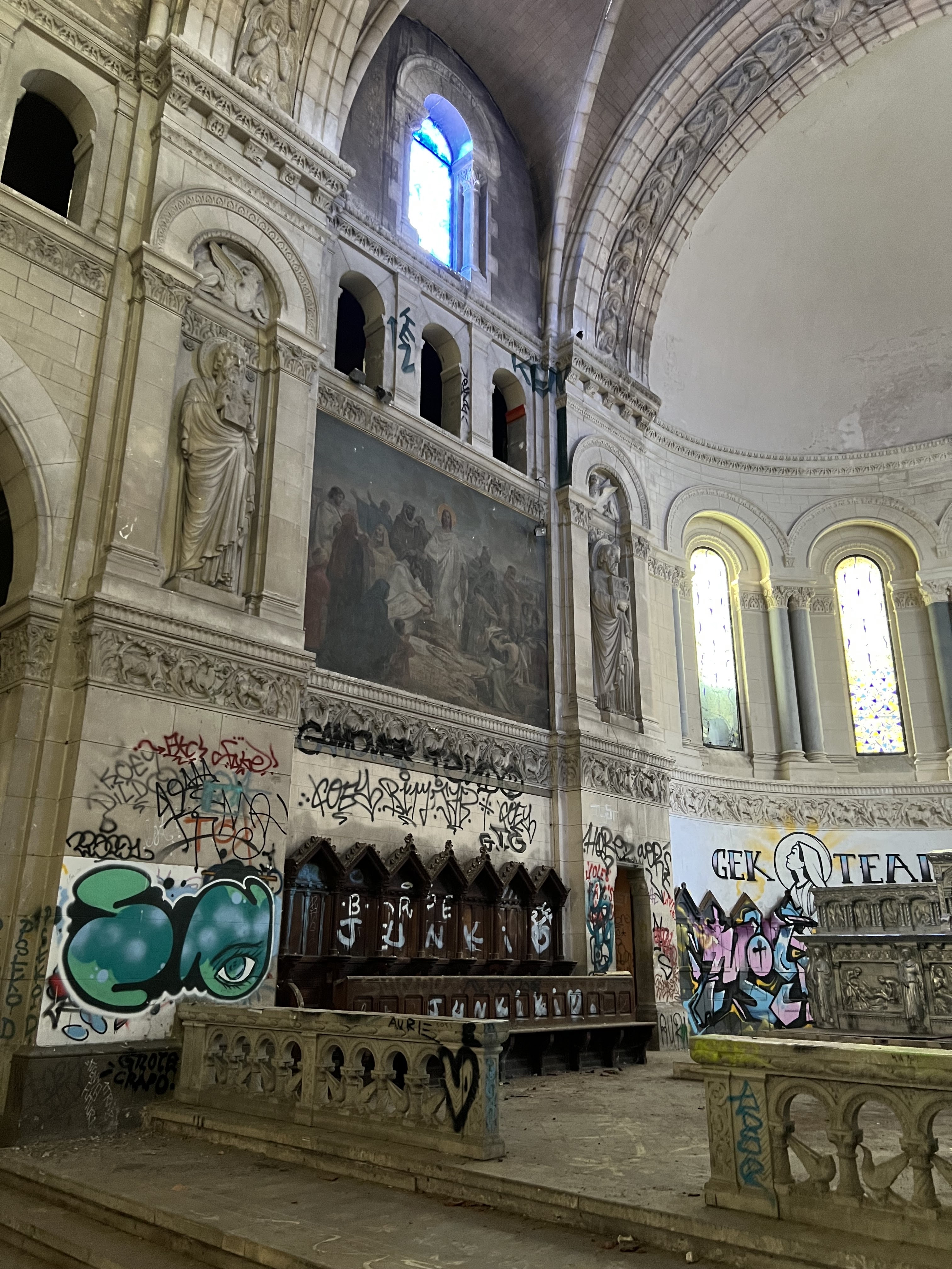 Lieu d’urbex très sympathique, c’est un cadre atypique. La vue du clocher est incroyable. Il reste encore tous les vitraux, de belles statues et des tableaux. Si vous y pénétrez respecter ce lieu !