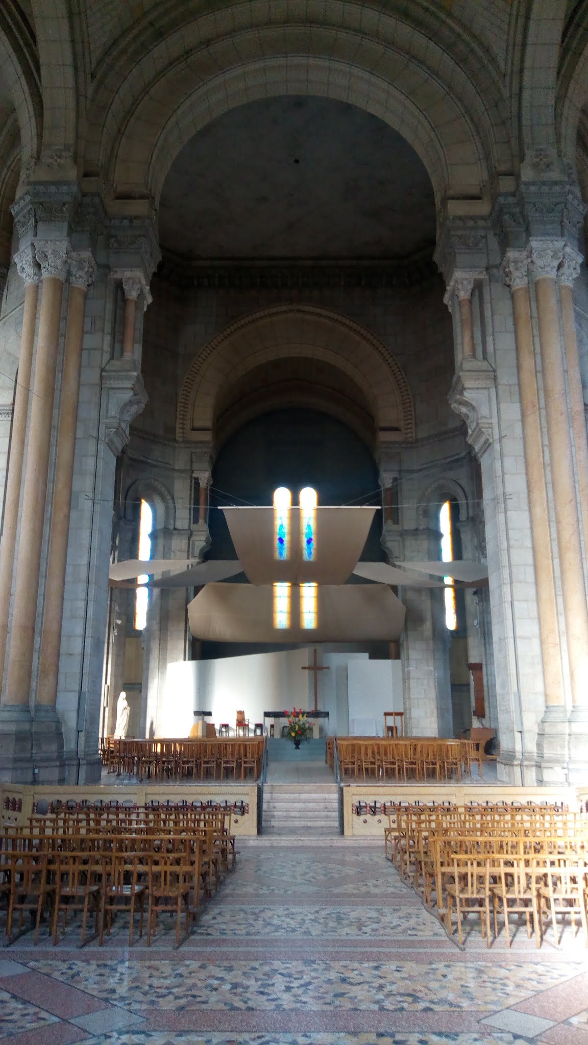 Très grande église à l'acoustique difficile. Les prêtres sont trop rétros mais sympathiques