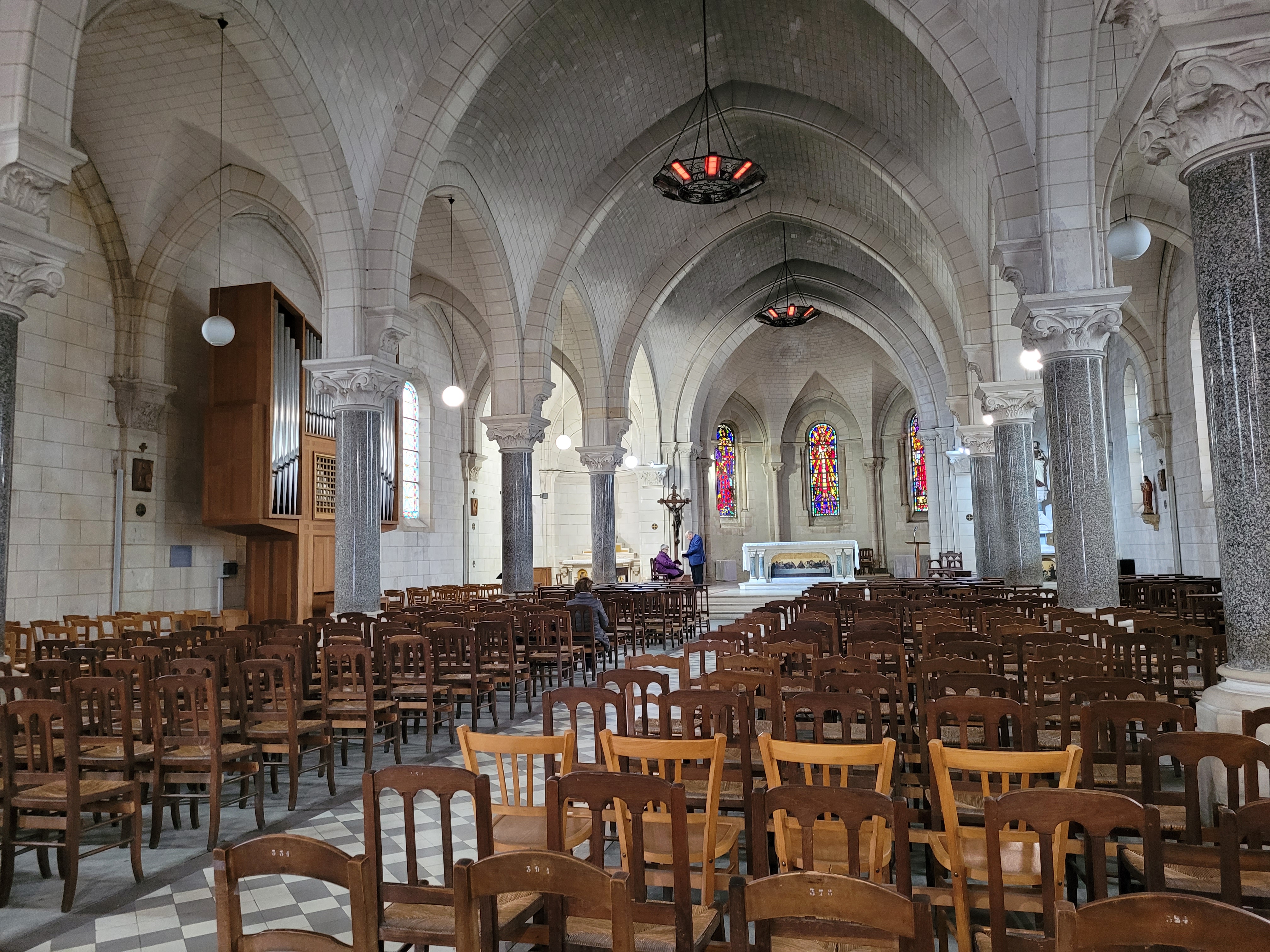 Belle église chauffée en hiver. Possibilité de s'agenouiller.