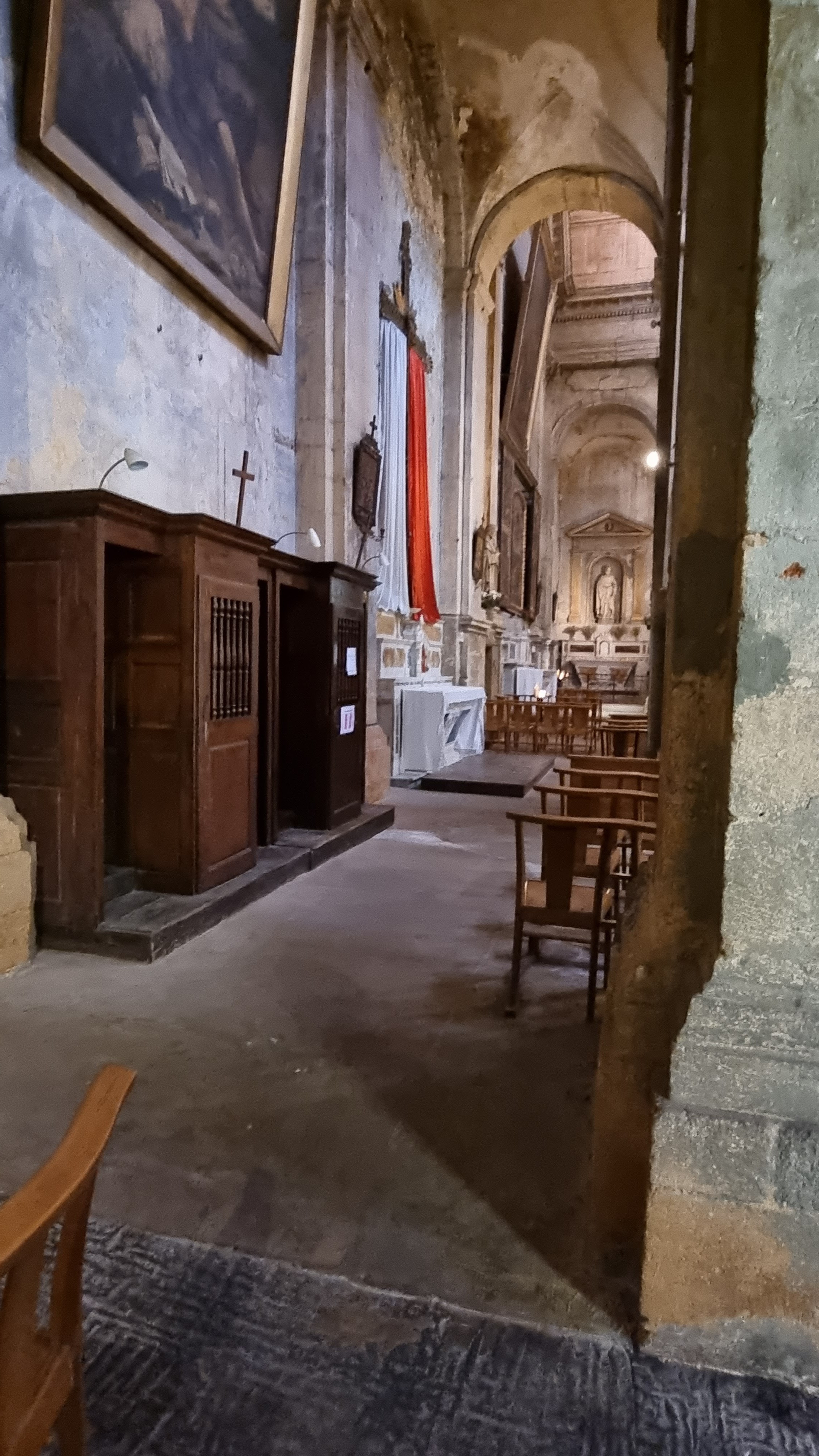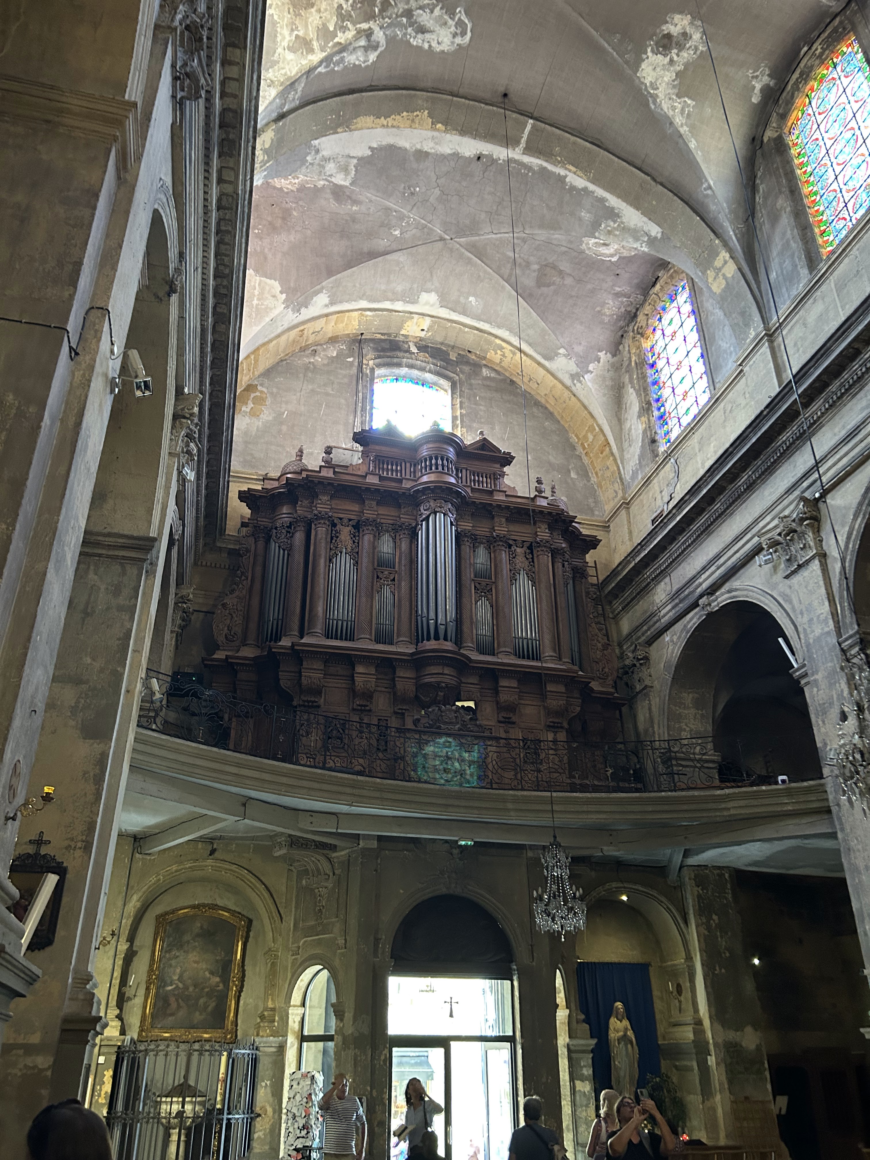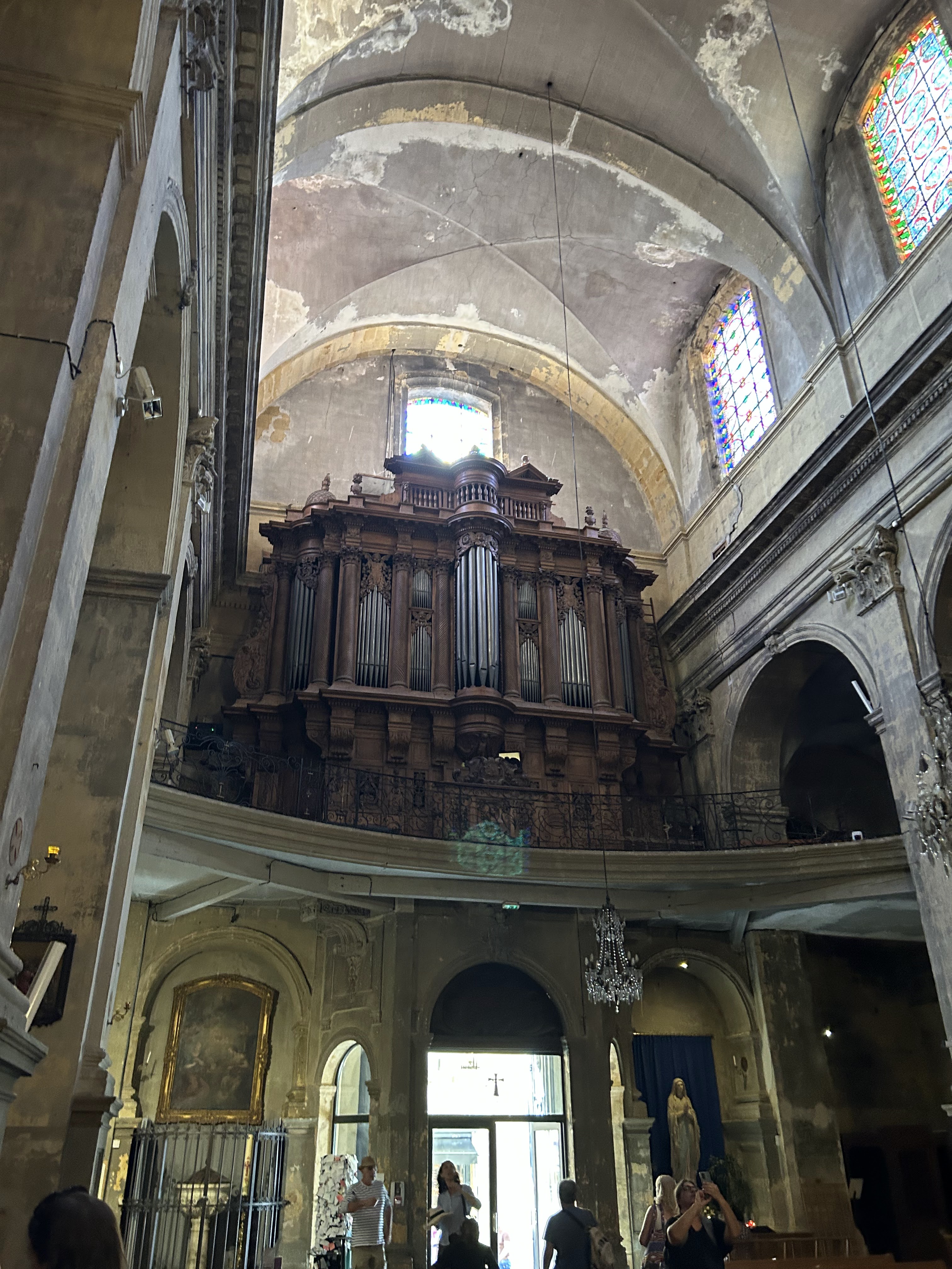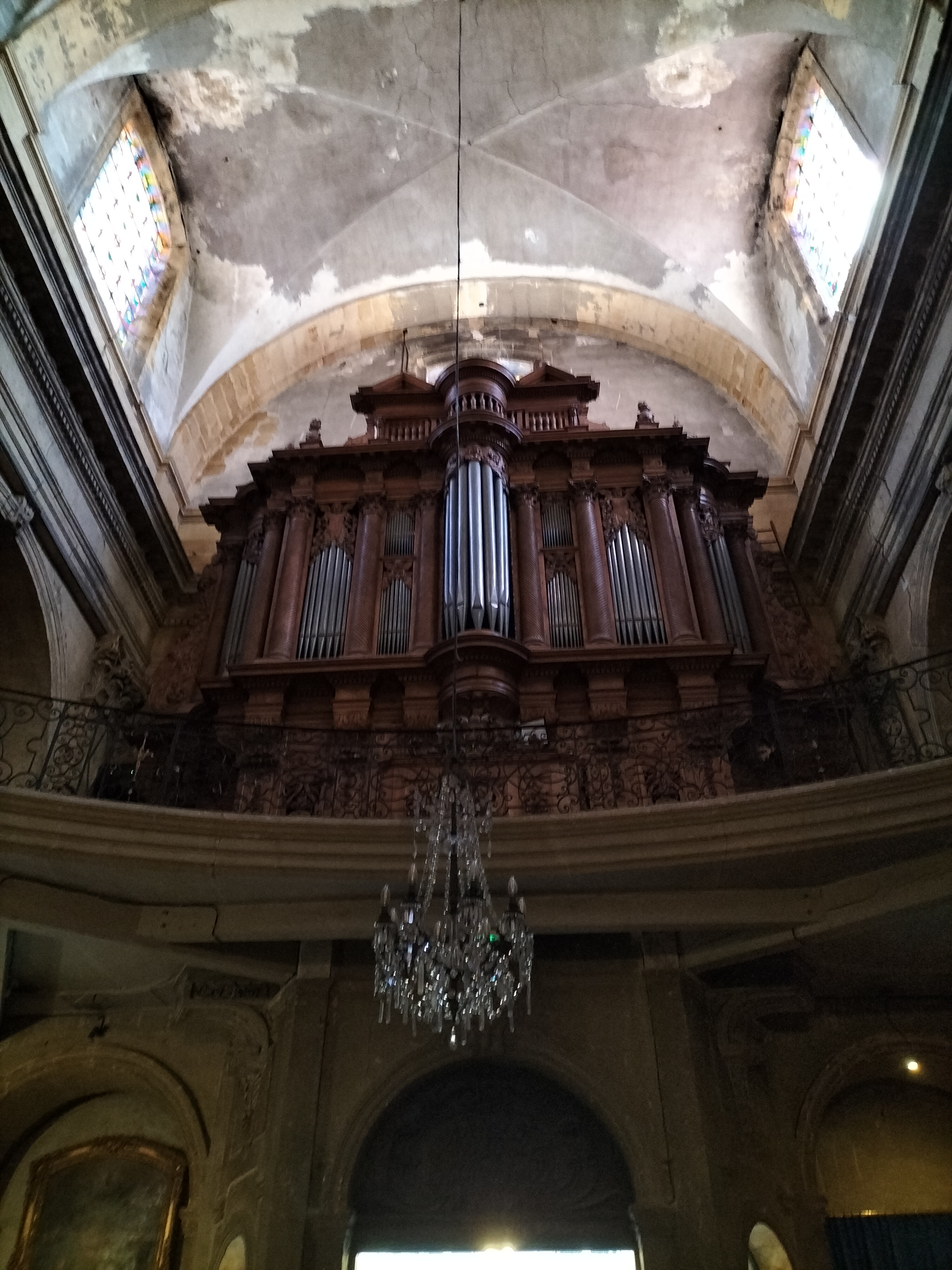 L'appel de l'orgue et les portes grandes ouvertes nous ont amené à rentrer dans cette église en plein centre ville. De beaux tableaux et un orgue magnifique mais des murs qui tombent malheureusement en ruine pour cet édifice classé aux monuments historiques.