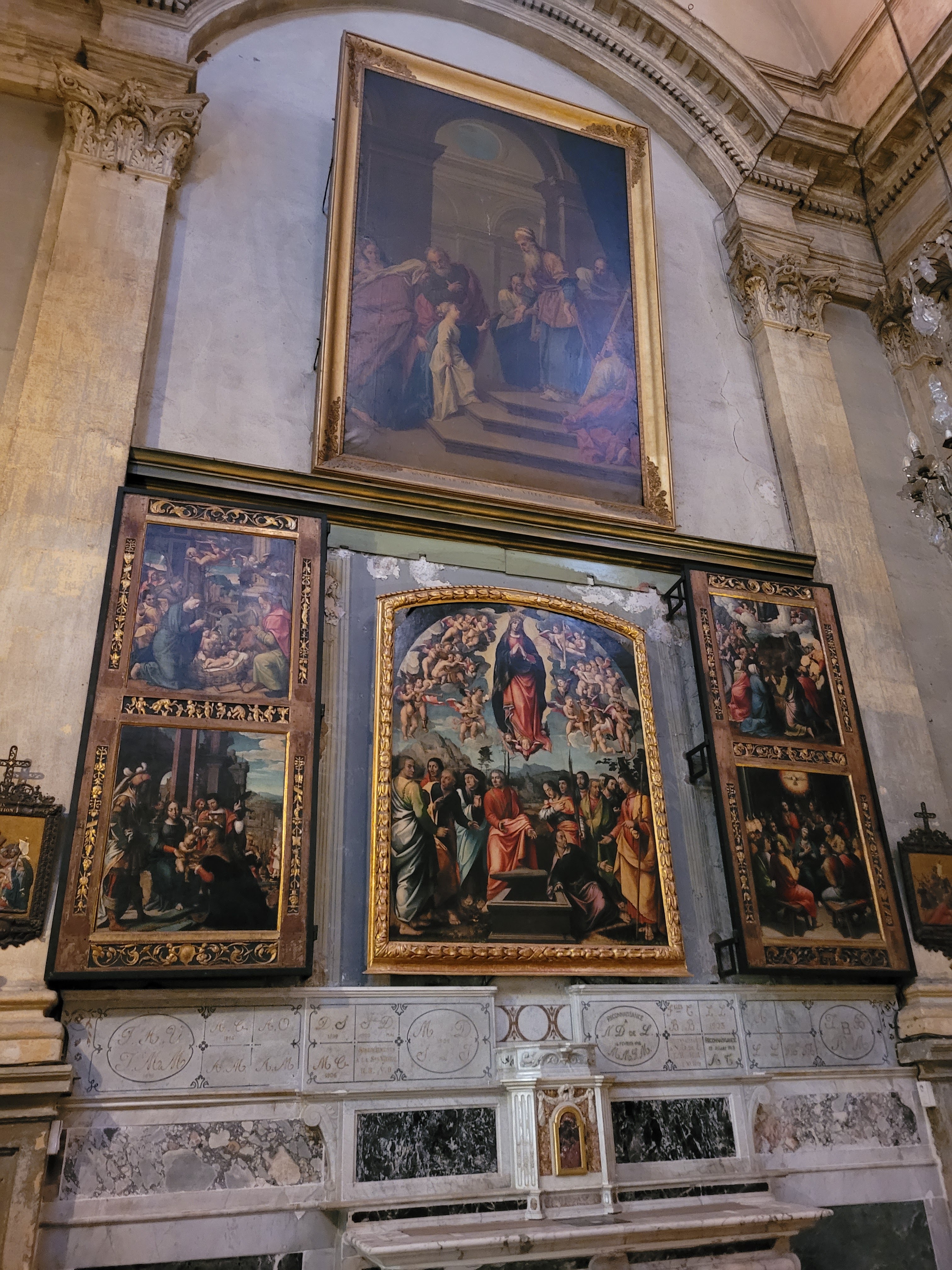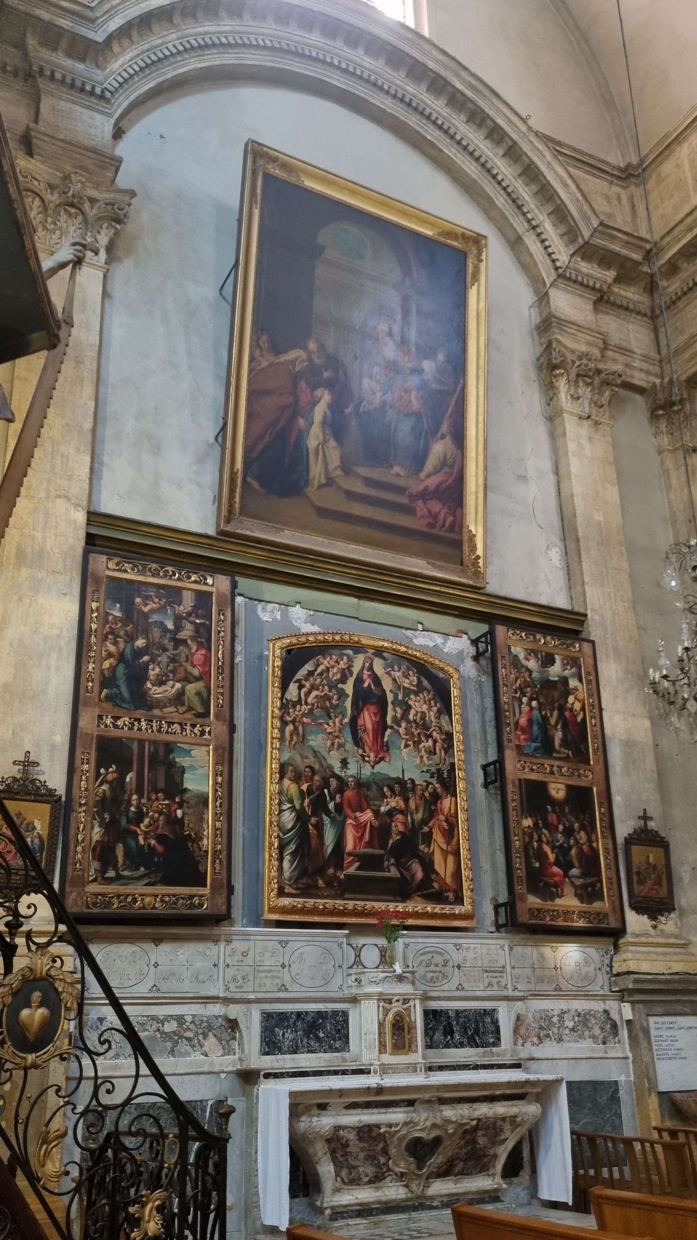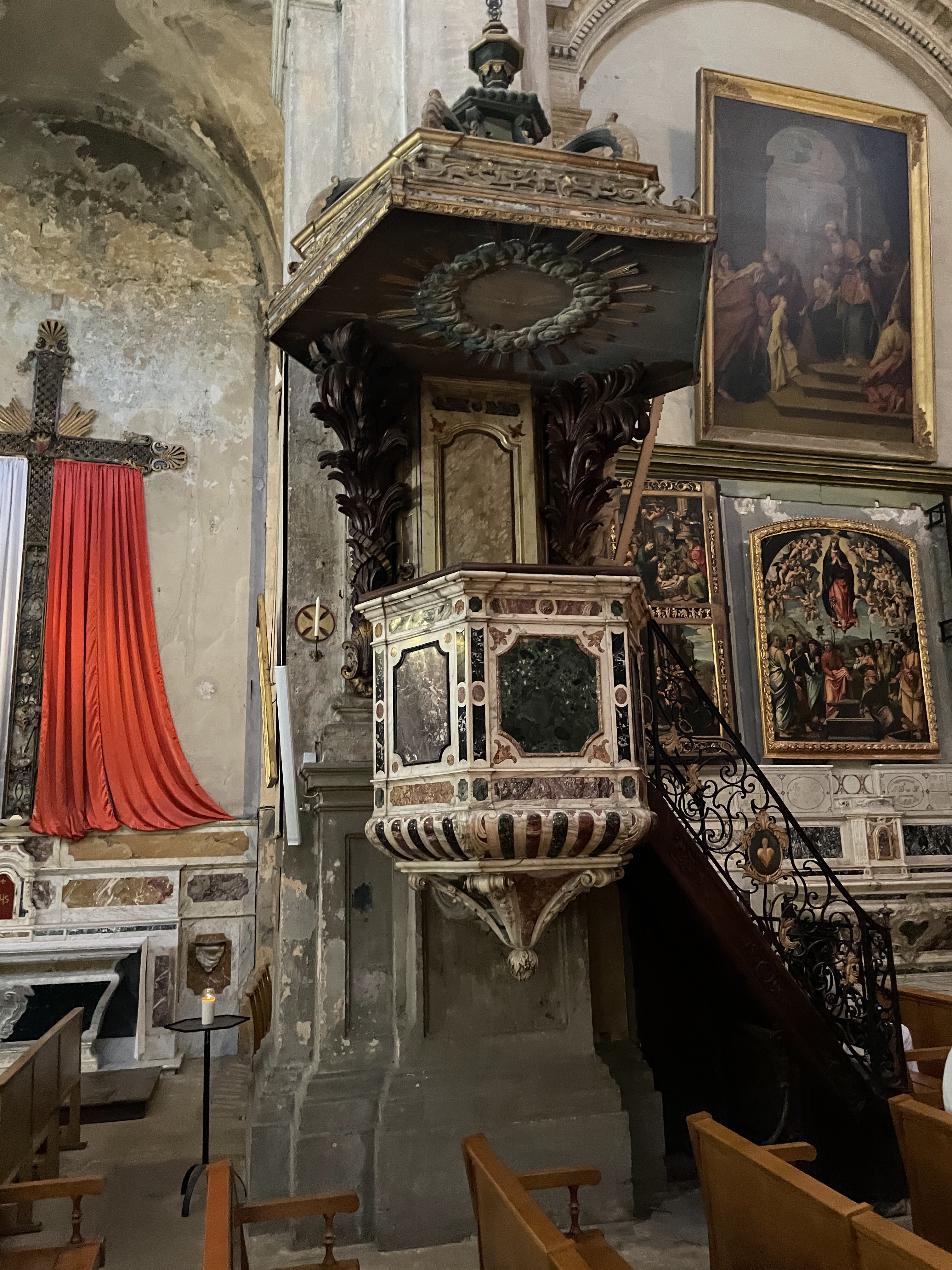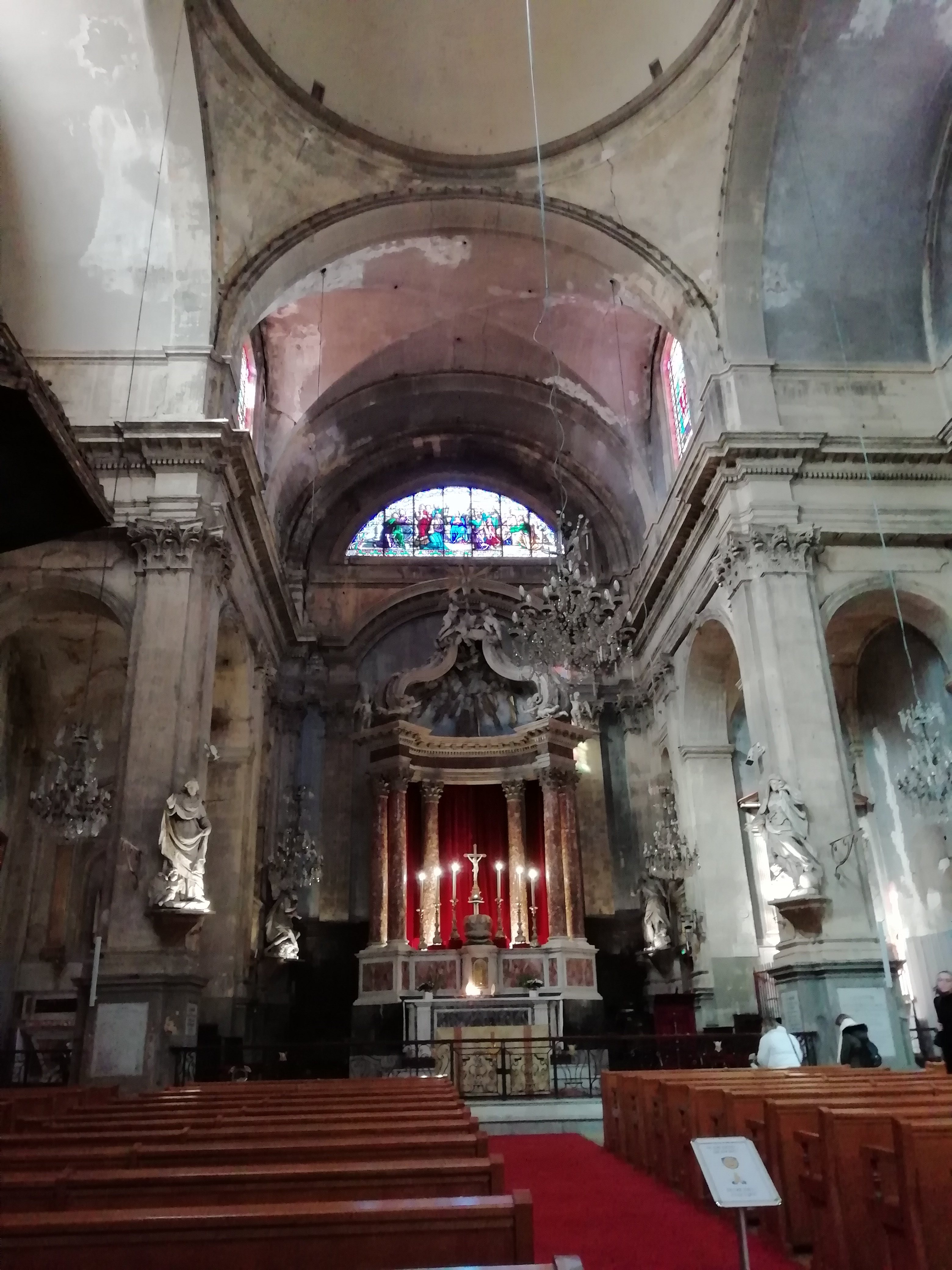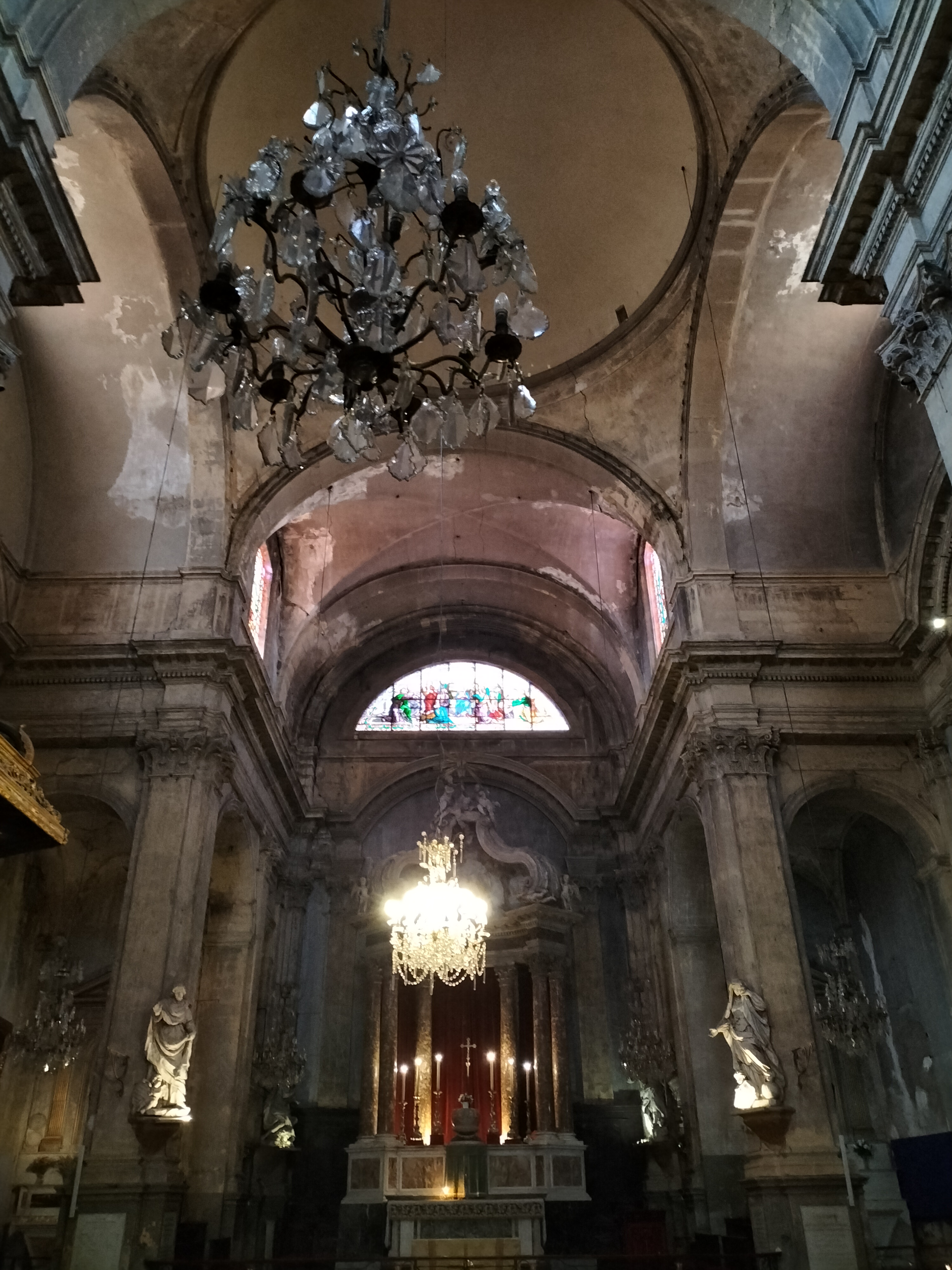 L'appel de l'orgue et les portes grandes ouvertes nous ont amené à rentrer dans cette église en plein centre ville. De beaux tableaux et un orgue magnifique mais des murs qui tombent malheureusement en ruine pour cet édifice classé aux monuments historiques.