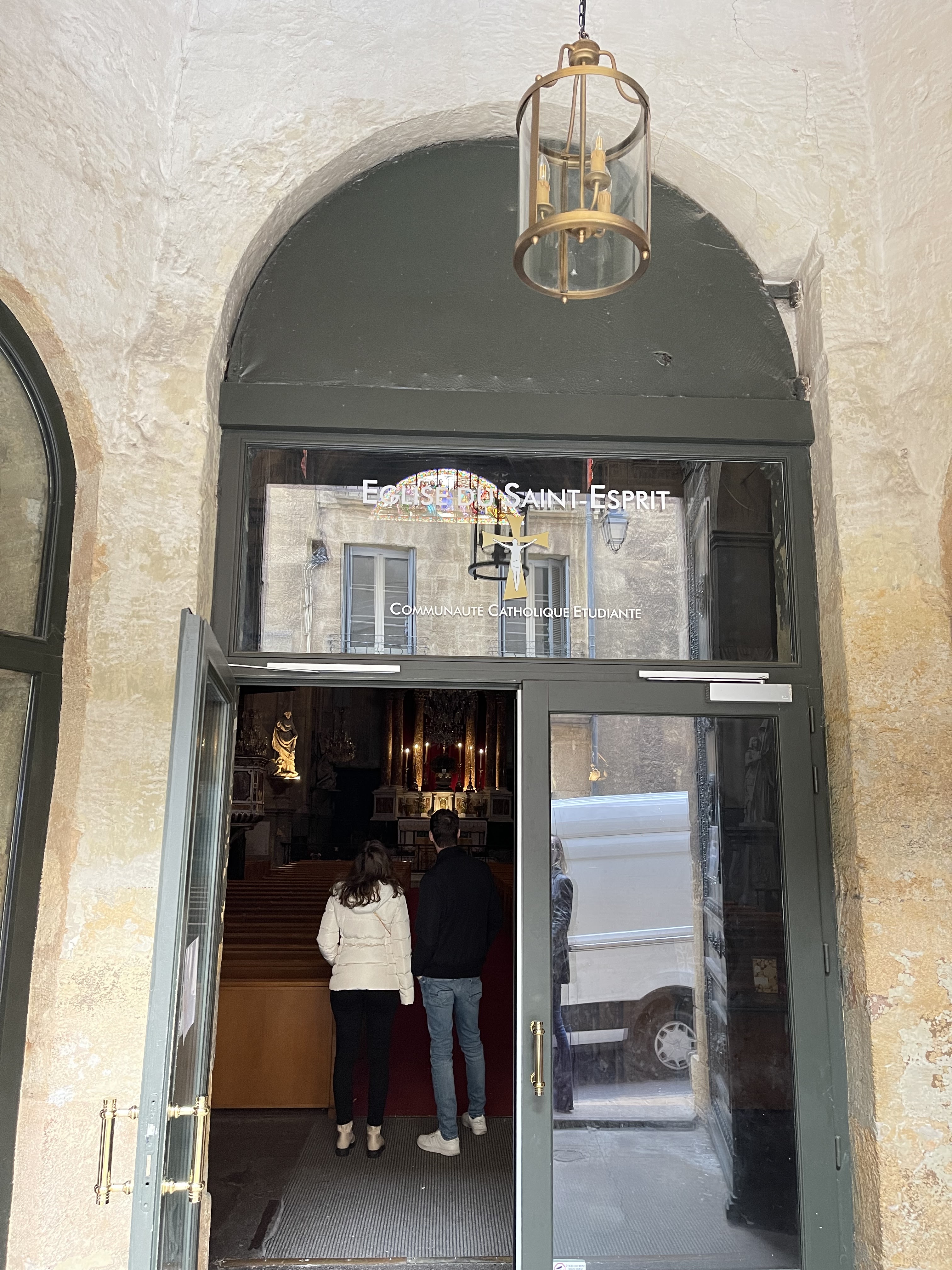 Calme, et pourtant si proche du tumulte touristique. L'église du Saint-Esprit est un édifice religieux de culte catholique construit au numéro 40 de la rue Espariat, à Aix-en-Provence. Elle a été construite au xviiie siècle à l'emplacement d'un hôpital, dénommé l'hôpital du Saint-Esprit. L'édifice est protégé par un classement au titre des monuments historiques par arrêté du 31 décembre 1985.
