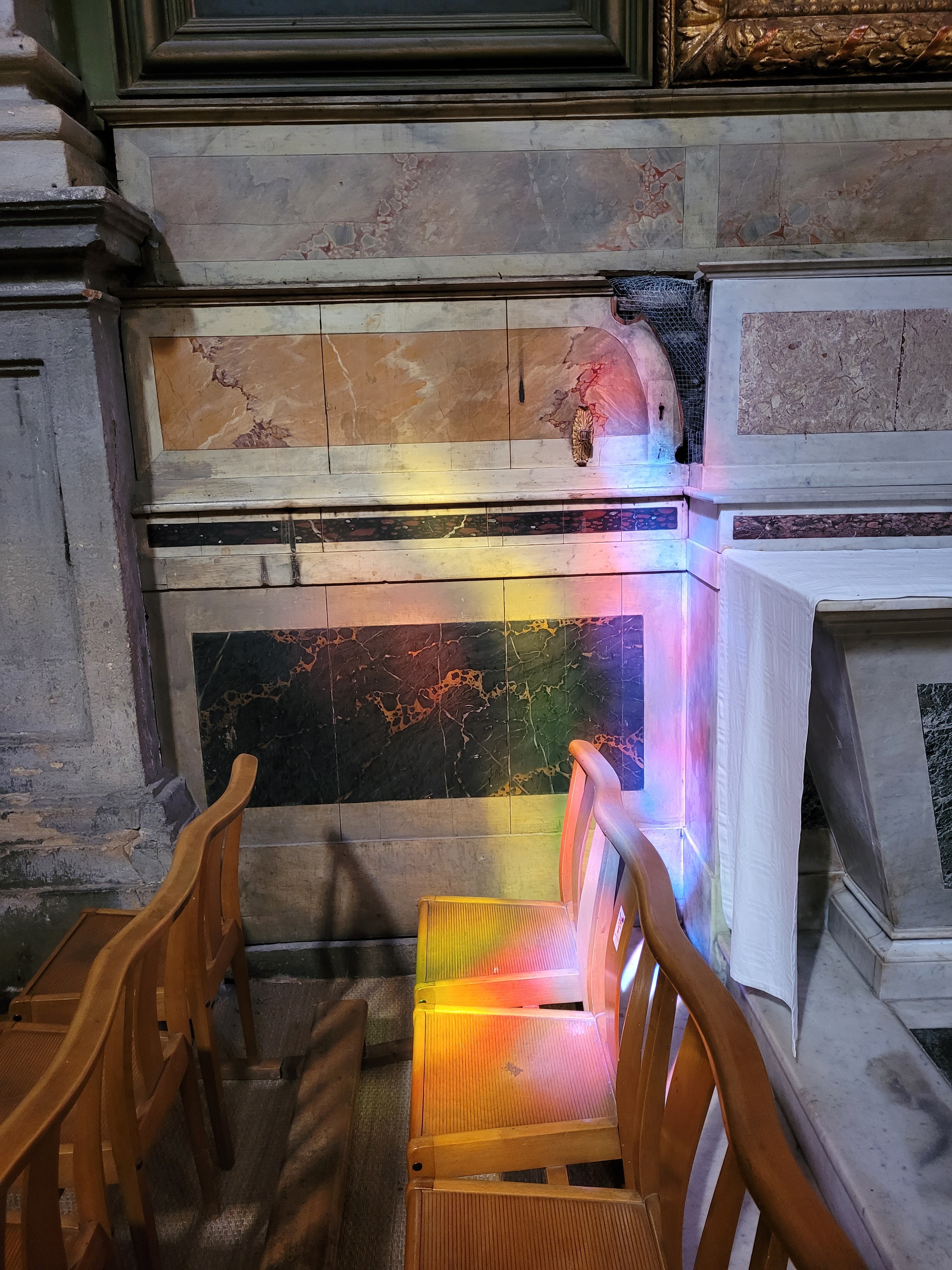 L'éclairage des deux statues à l'entrée du chœur est superbe. Rien que pour ça, il faut rentrer. Pour autre chose aussi.