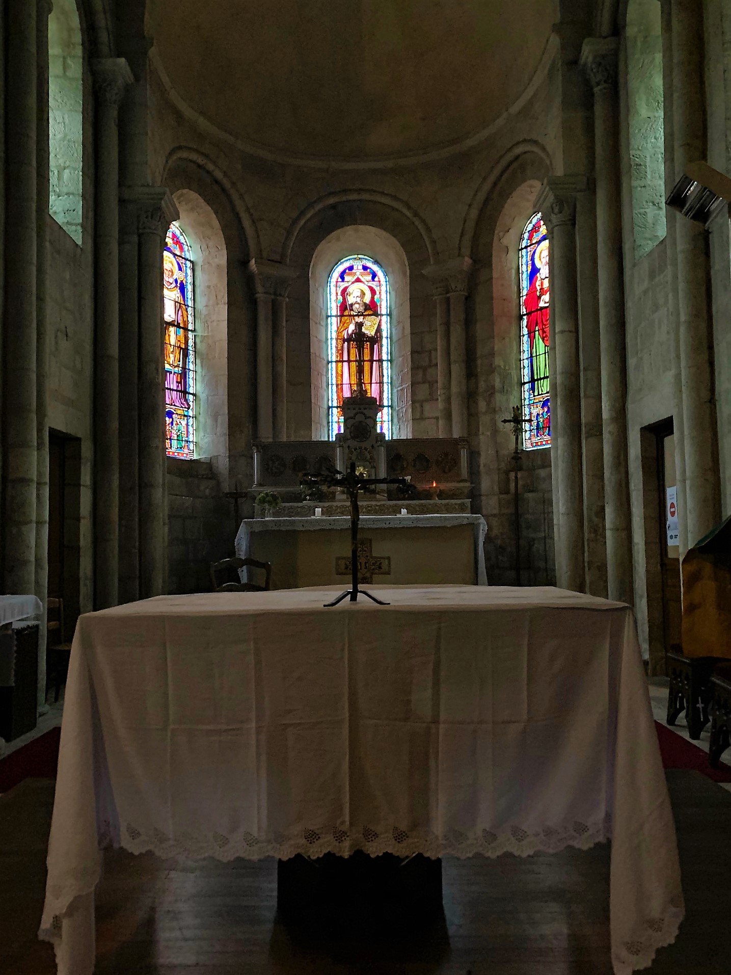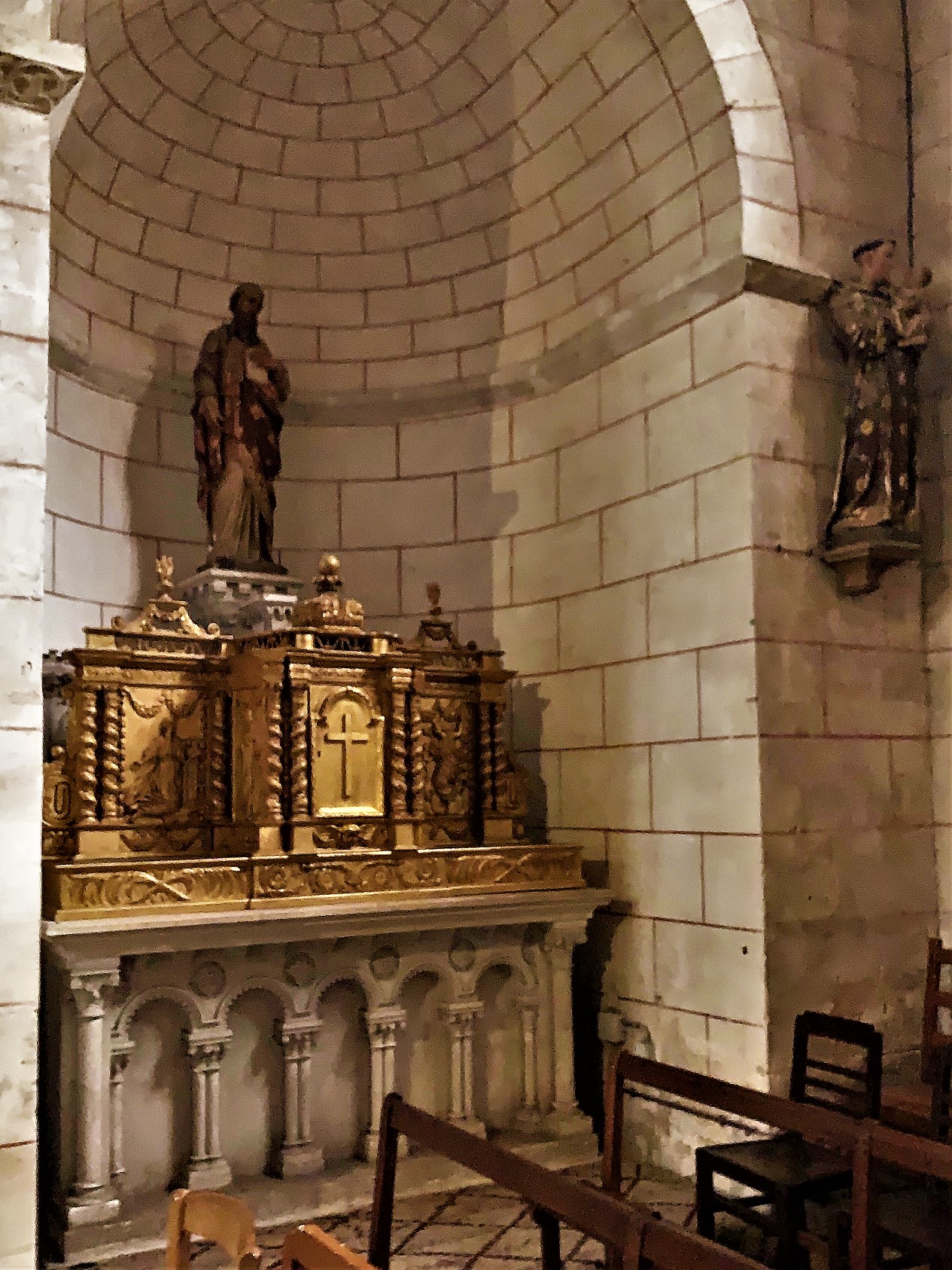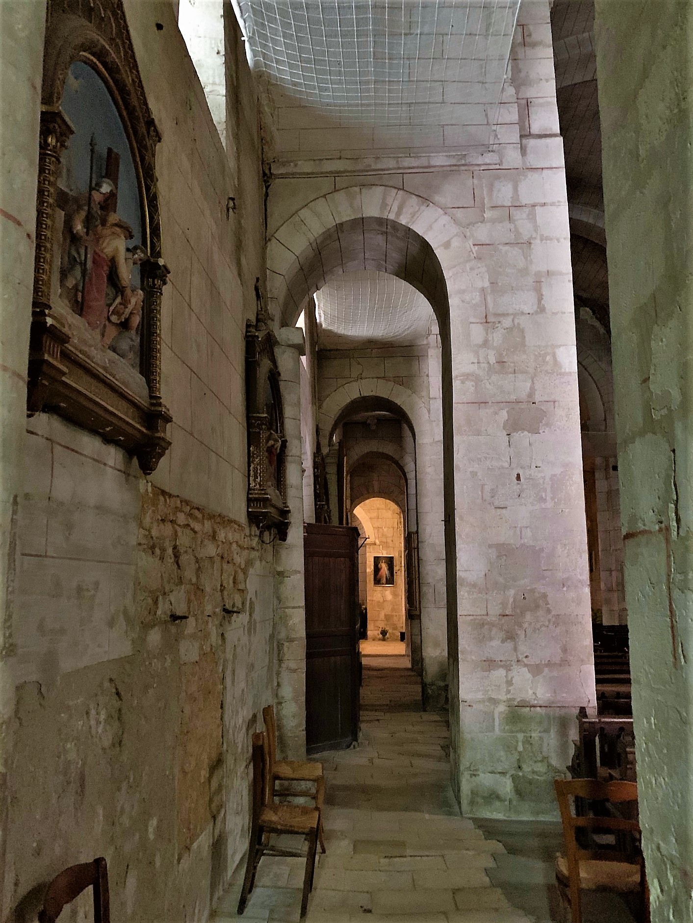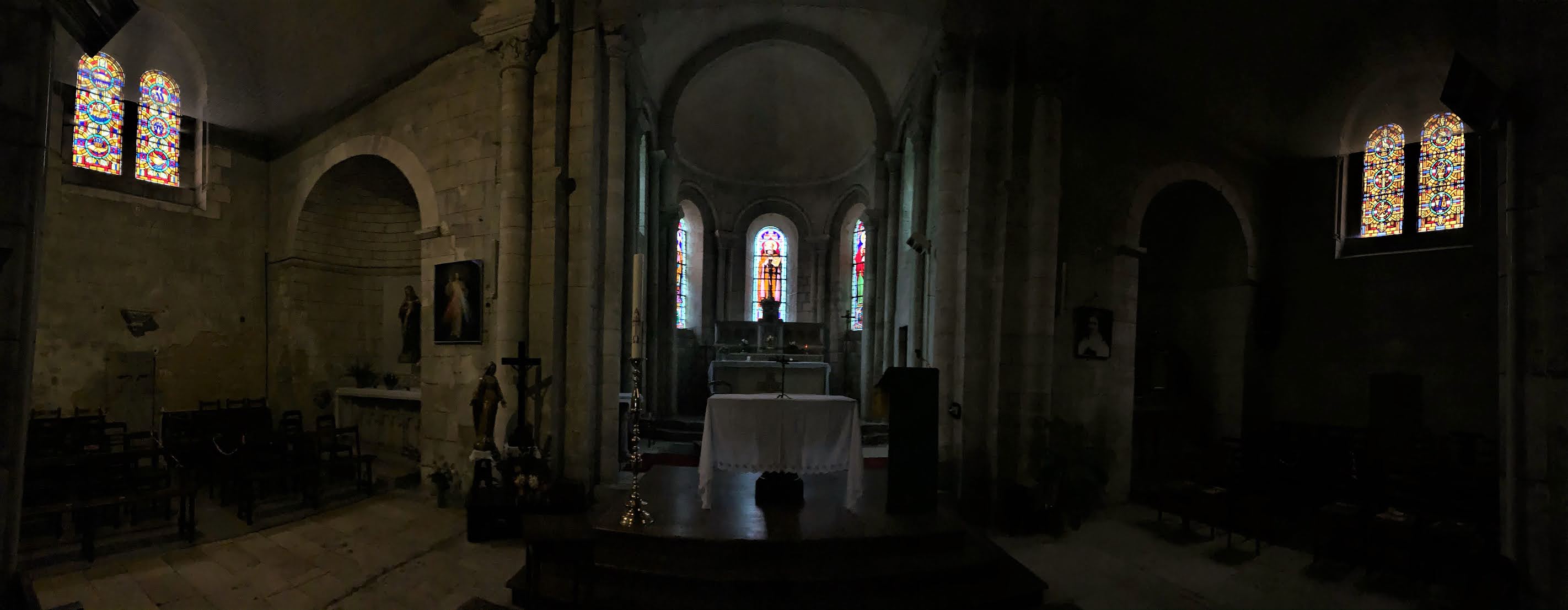 Une église romane du 11ème siècle dont l'histoire débute à Confolens en Charente. Saint Gaultier, fils d'une famille noble de Confolens, en Charente, naquit en 990. Elève brillant de l'école du Dorat, dirigé par Israël (saint-chanoine du Dorat) qui meurt en 1014. L'arrivée de Pierre Drut, laïc et guerrier, à la direction de l'école, incitera Gaultier à revenir vers son lieu natal. Il s'installe dans une grotte, près de Confolens. Après de nombreuses sollicitations, il accepte de partager la vie des moines de l'abbaye de Lesterps (située à proximité de Confolens) puis en deviendra le Père-Abbé. Une guerre féodale eu lieu durant laquelle l'abbaye fut pillée et brûlée. La plainte déposée par Gaultier auprès du pape fut suivie d'effet. En compensation, l'abbaye se vit offrir les terres de Rivarennes, commune qui faisait alors partie du village de Saint-Gaultier et possessions du seigneur de Chabanais. Deux églises faisaient partie de la donation, dont celle de Saint-Hilaire, qui fut remplacée par l'édifice actuel, conséquemment à la création d'un prieuré. Eglise romane du 11ème siècle, elle a été transformée, mais il existe pas de traces historiques avant le début du 19ème siècle. Caractéristique des constructions de cette époque, une particularité la distingue toutefois. La voûte en berceau de la nef, est soutenue par des collatéraux étroits, voûtés également en berceau, mais perpendiculairement à la voûte de la nef. Les transformations apportées au cours des siècles, ont pas altéré le côté roman de l'église. Pour exemple, la voûte fut refaite au 19ème siècle, on remplaça les pierres par des briques. mais en respectant la forme primitive. Cette église est ouverte et accueillante, je n'ai pas trouvé d'interrupteur, dommage, un éclairage supplémentaire m'aurait bien plu.