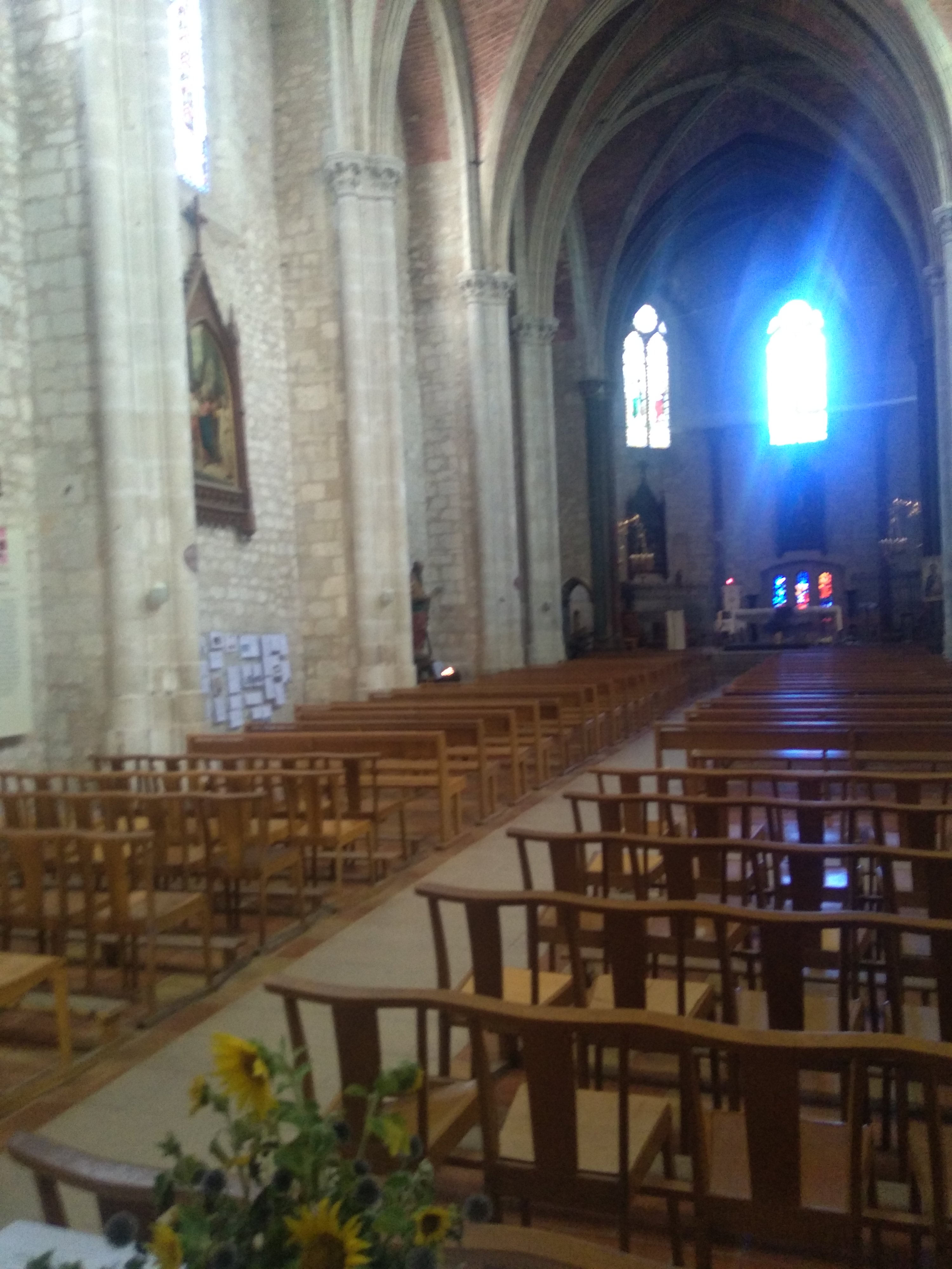 Un édifice qui vaut une visite, très massive extérieurement mais à taille humaine un style très épuré. Renferme un chemin de croix de belle facture. Des vitraux très épuré mais riche en spiritualité. Vous traversez une ville médiévale qui permet de se déconnecter du monde toujours pressé.