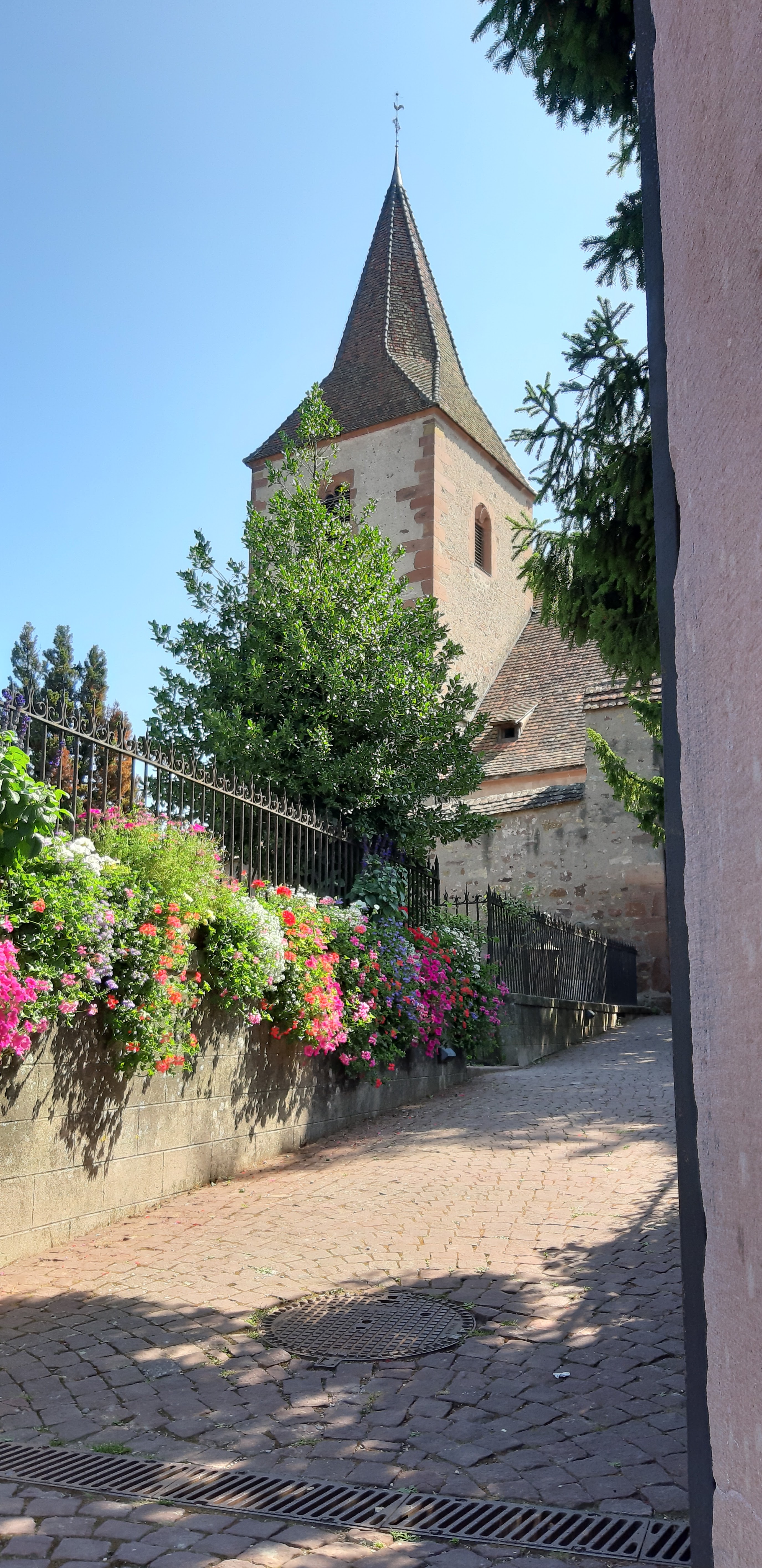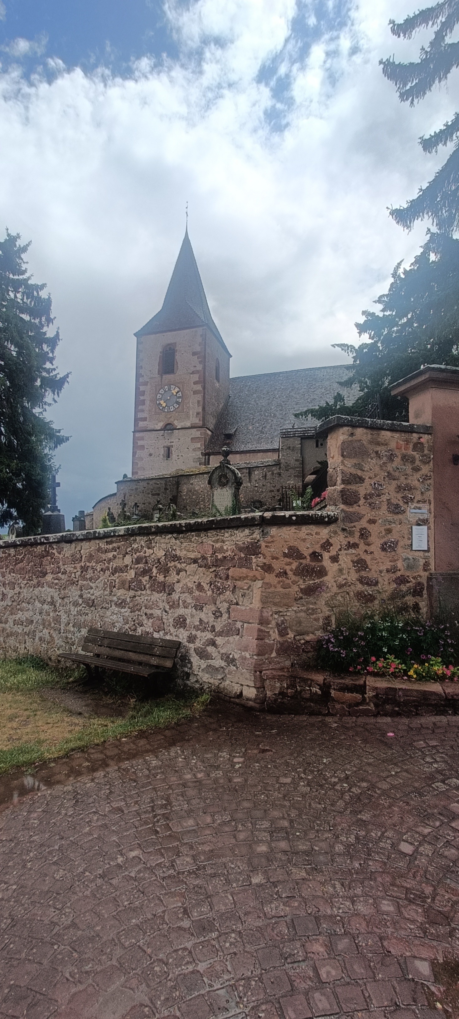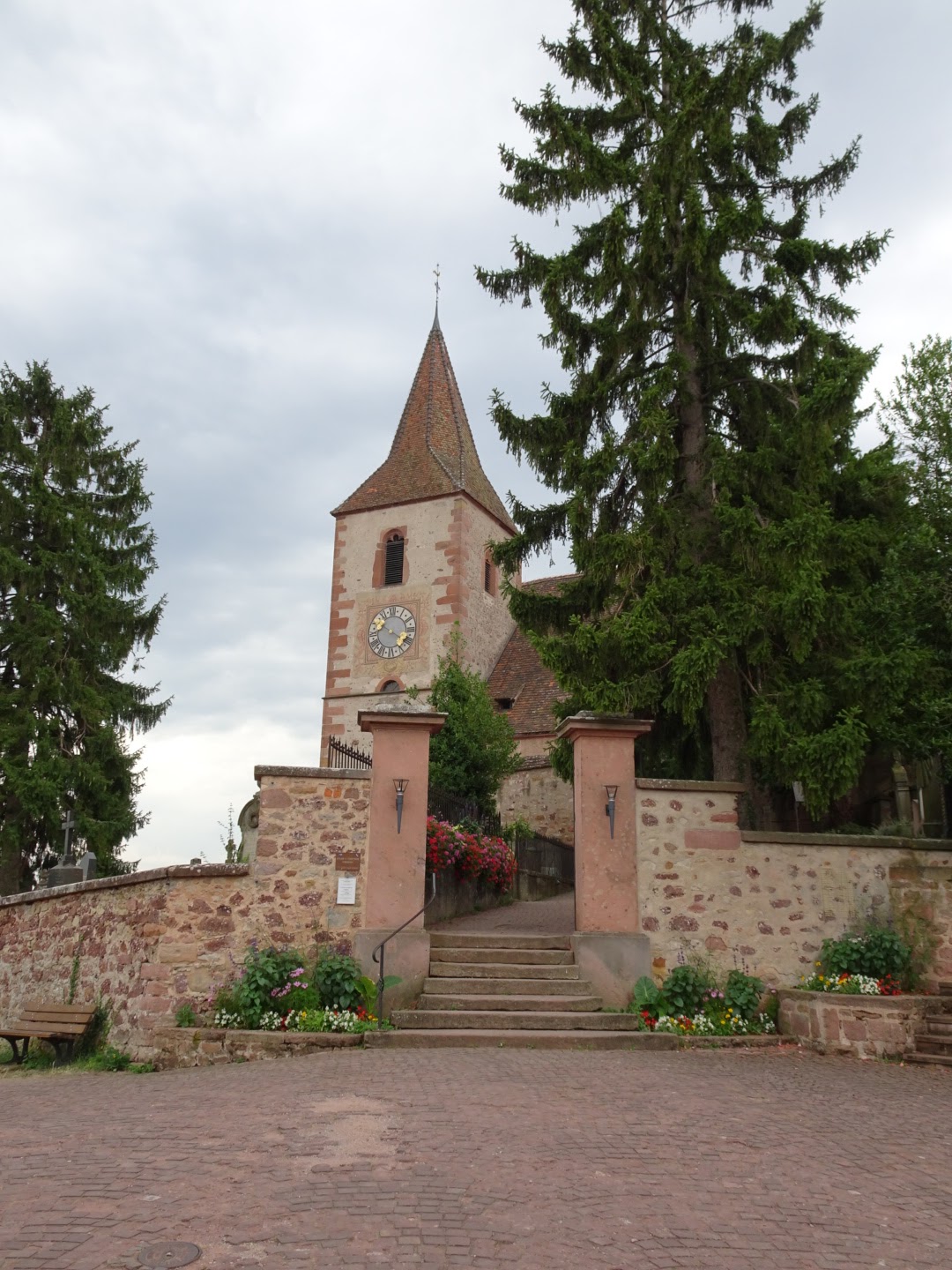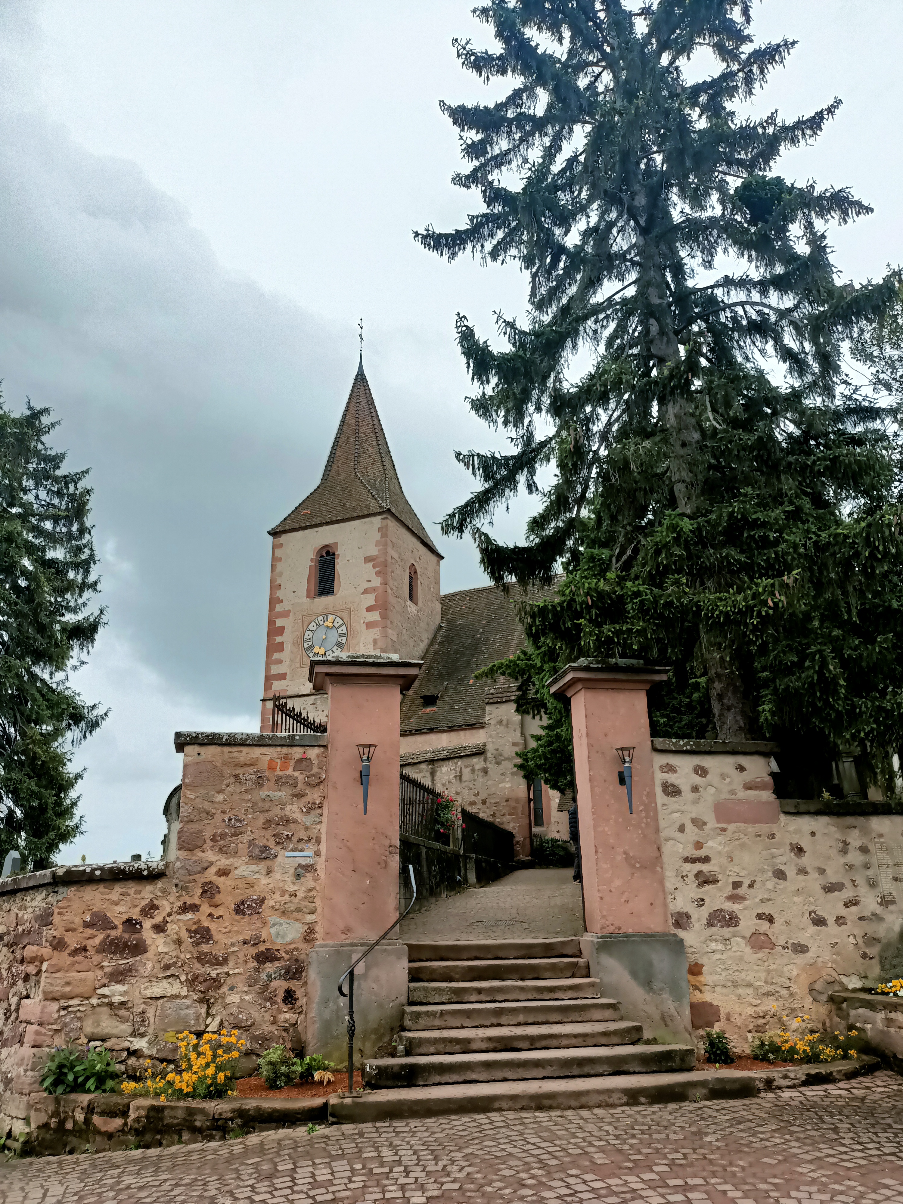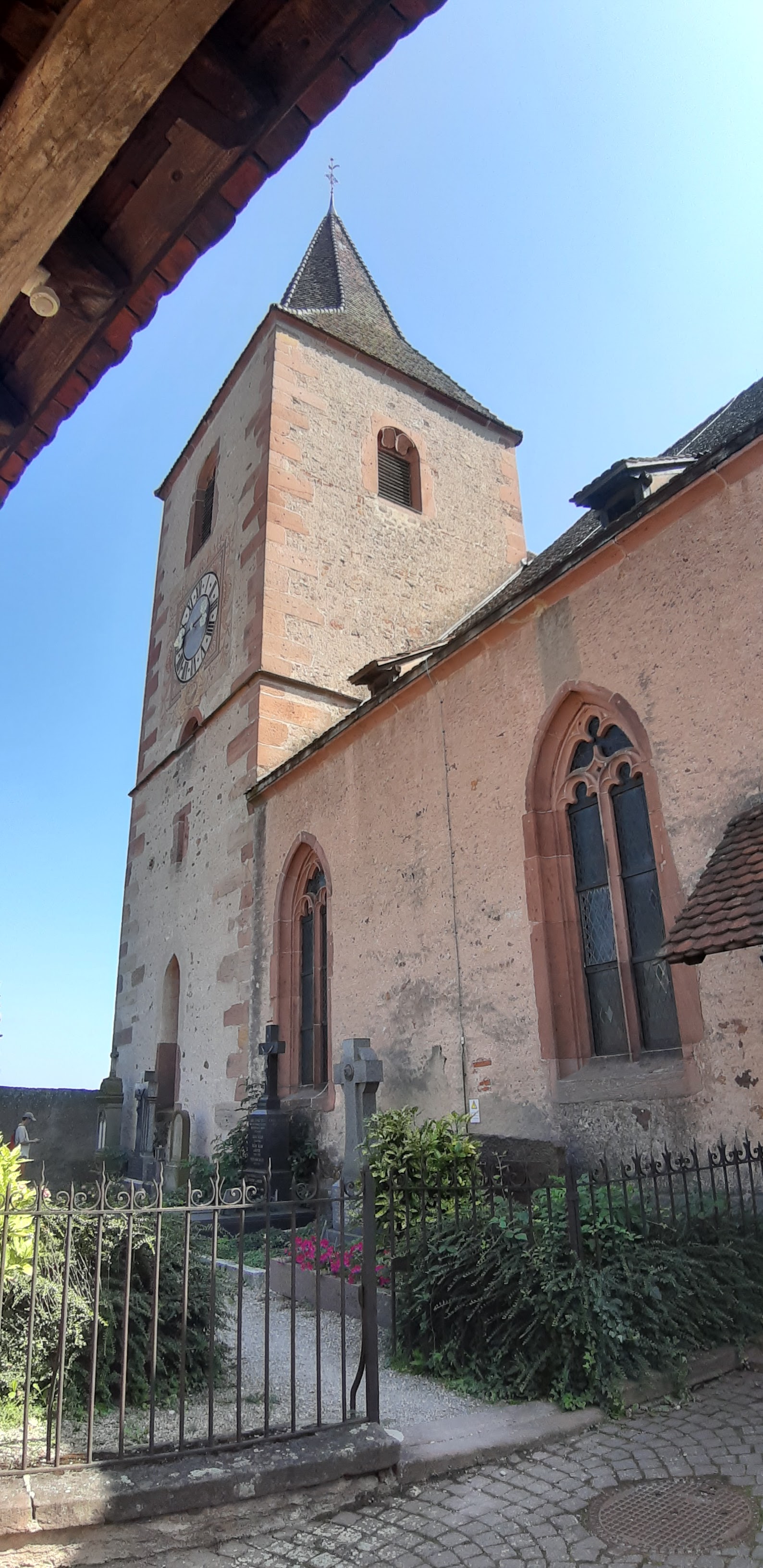 Très belle église entourée par son cimetière fortifié. Superbe vue sur les coteaux et les trois châteaux qui surplombent Ribeauvillé.