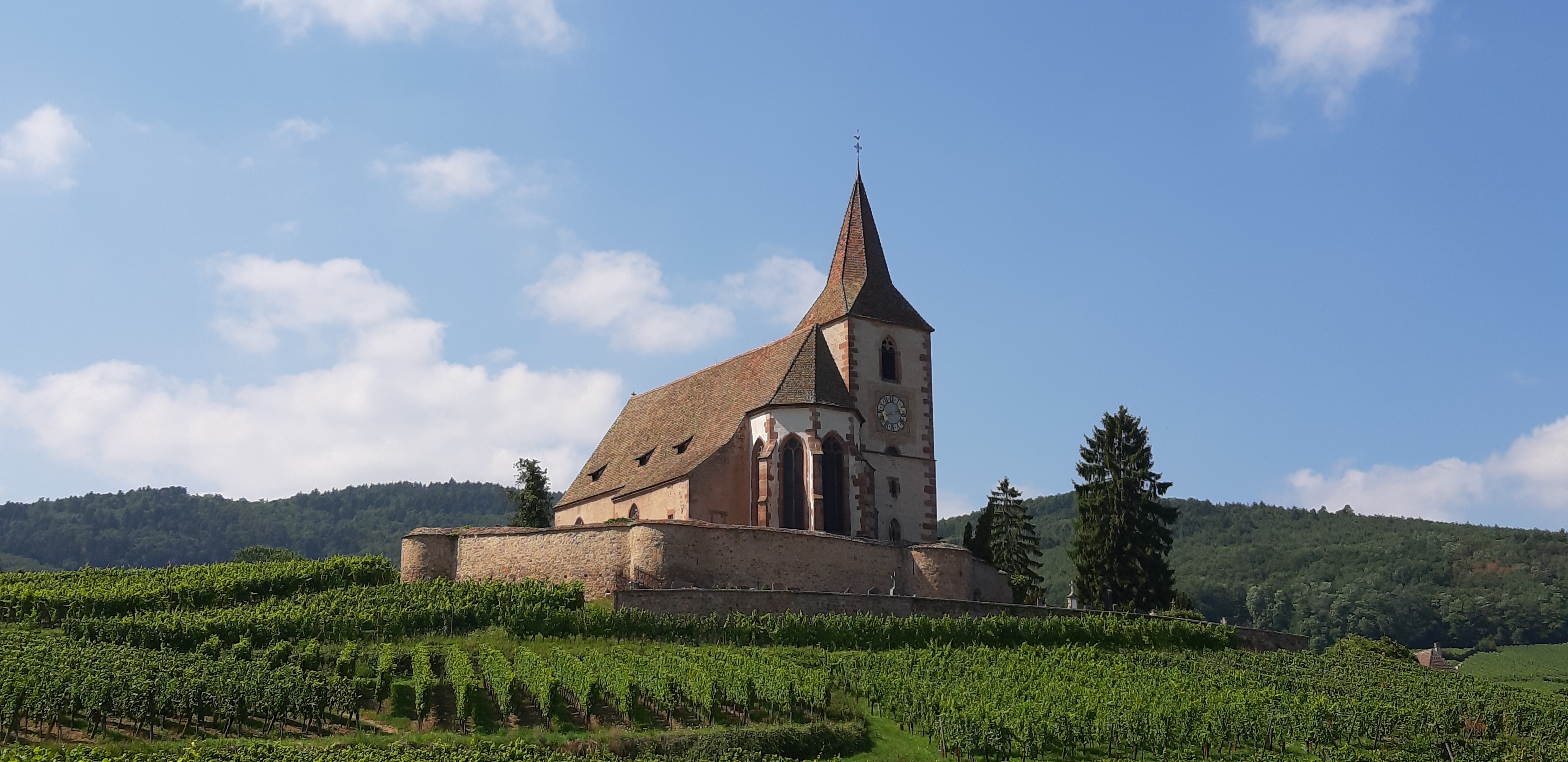 Cette église est vraiment jolie, immergée dans un paysage splendide, au milieu des vignobles d'Alsace.