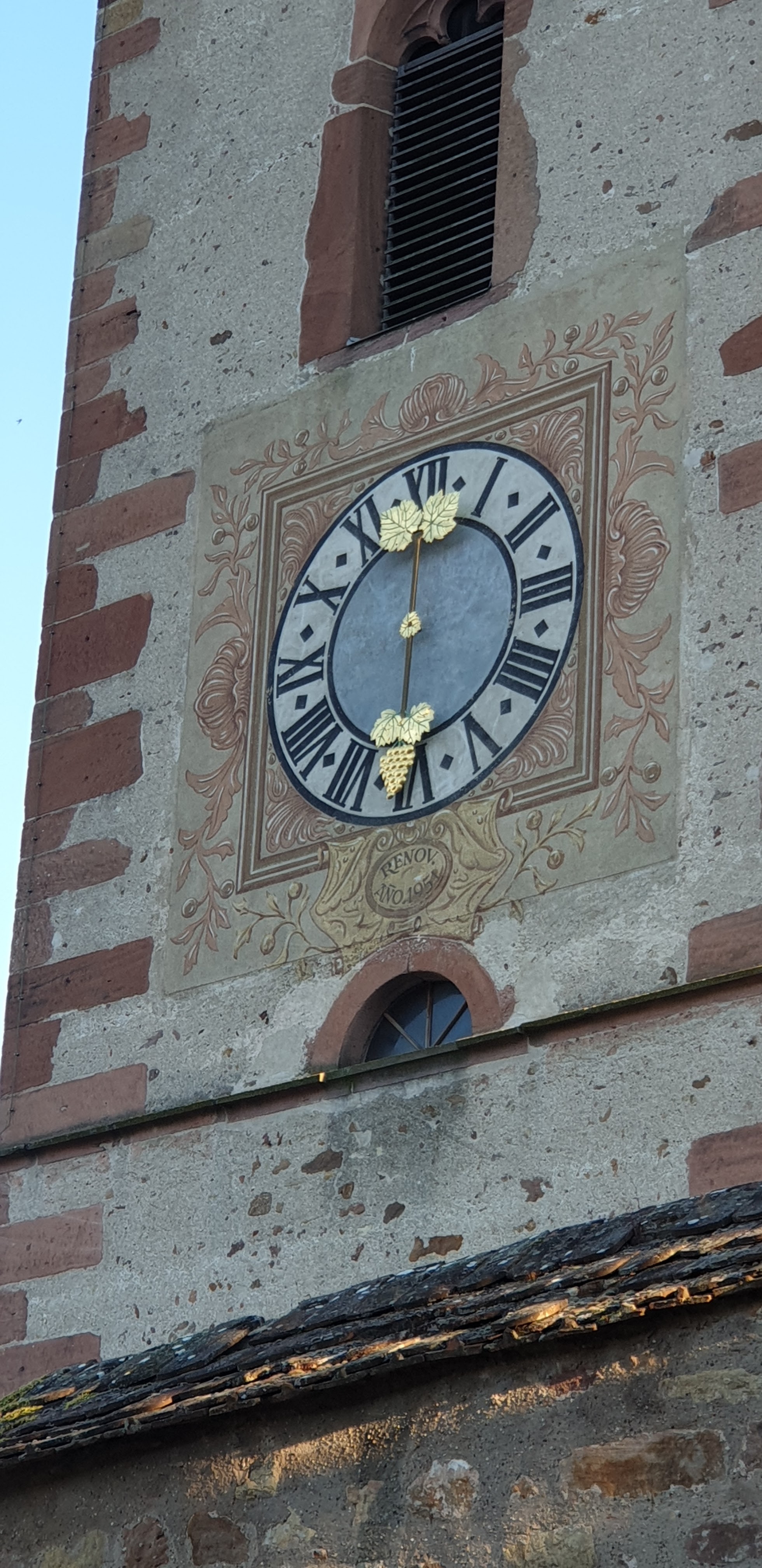 Superbe église avec une horloge magnifique ! Il y a dans le bas, un petit banc avec une vue imprenable sur les vignes et le paysage : endroit idéal pour pic-niquer au calme sans l'agitation des villages !