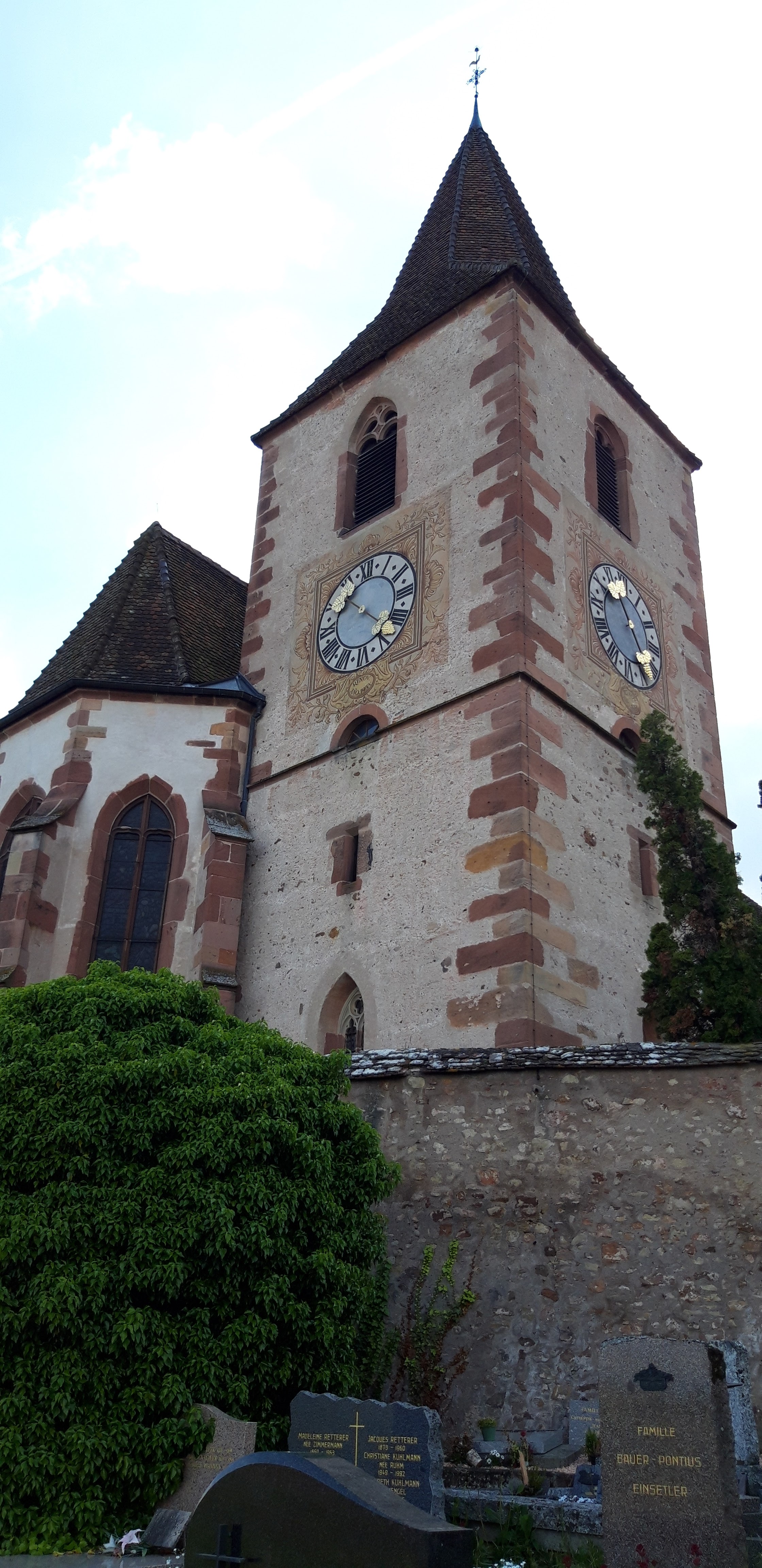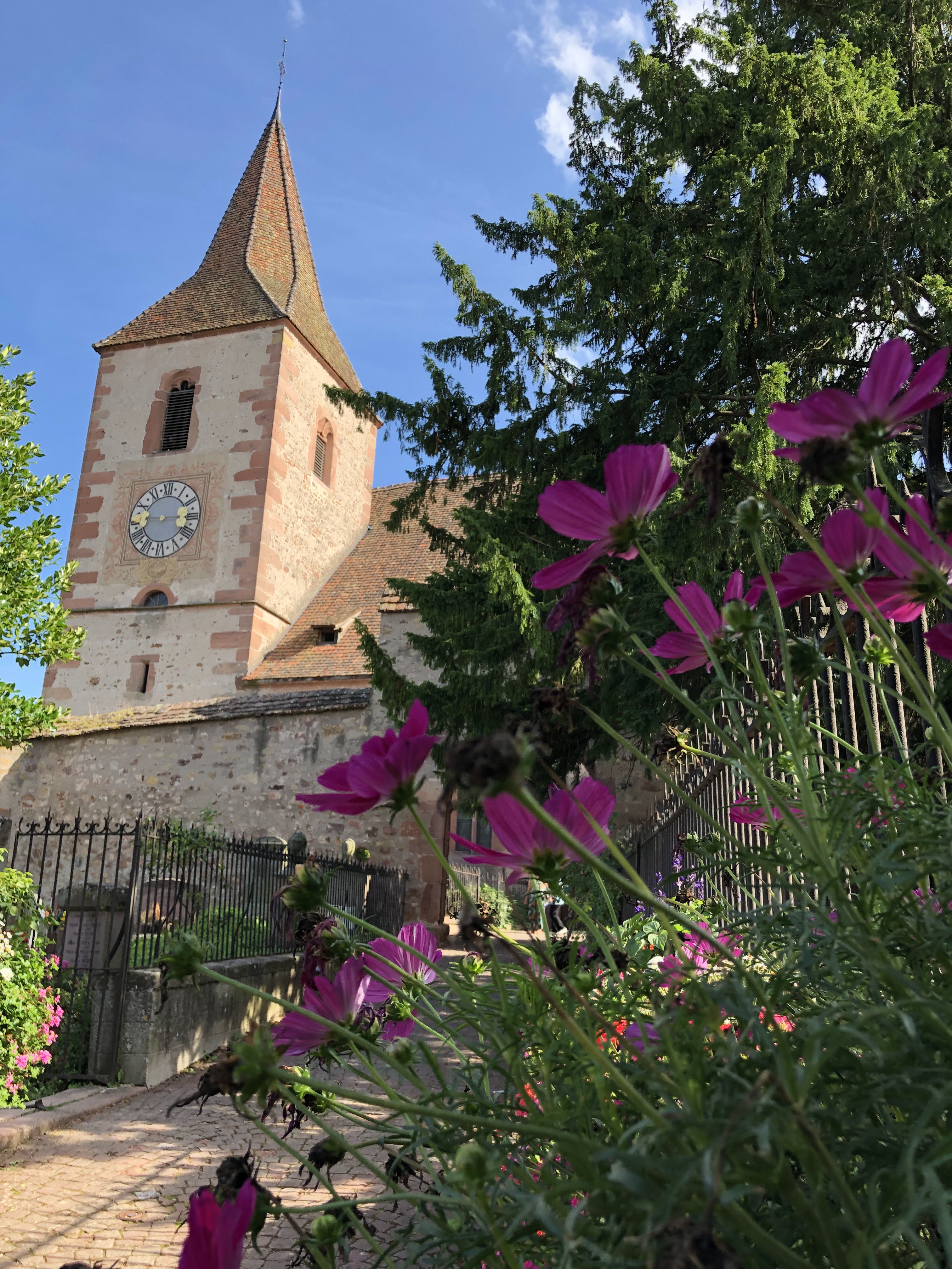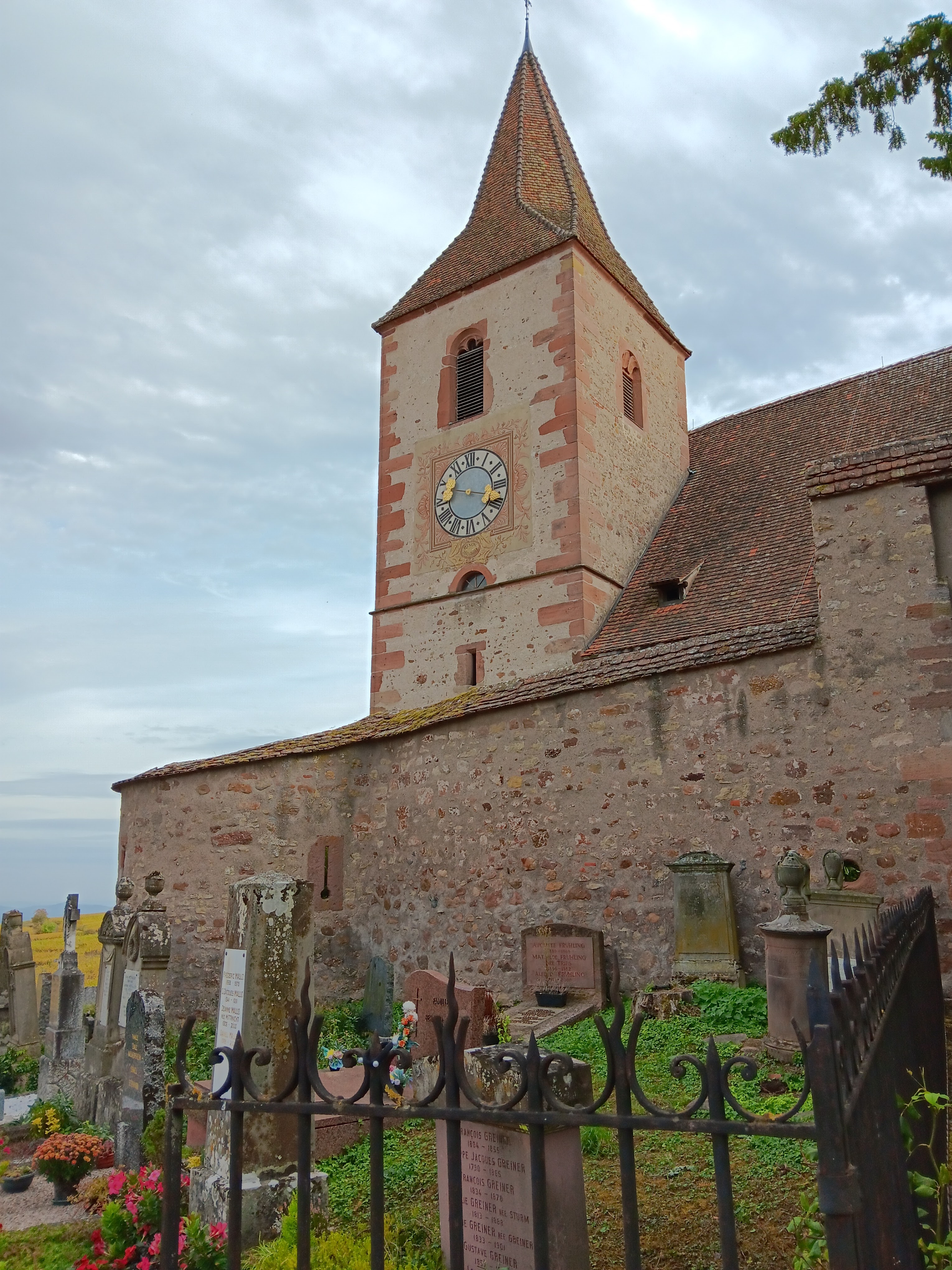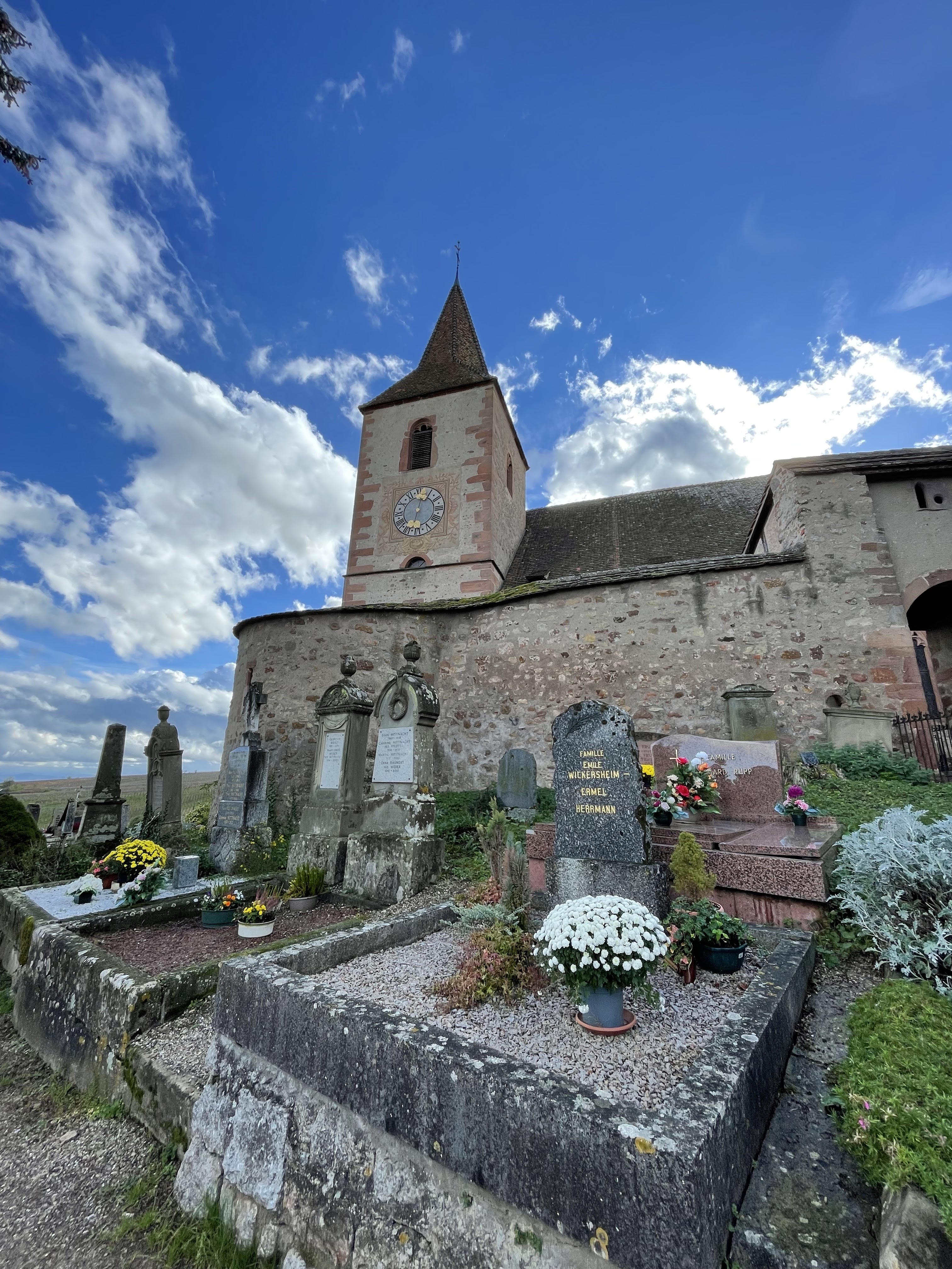Une très belle petite église fortifiée située au milieu des vignes et un peu à l’écart du village. Entre le mur d’enceinte et l’église se trouve un petit cimetière faisant tout le tour de l’église, avec certaine tombes très vieille. Je ne lui mets que trois étoiles car bien qu’il y ait un écriteau «église ouverte d’Alsace», celle-ci était fermée et il n’était donc pas possible d’y rentrer.