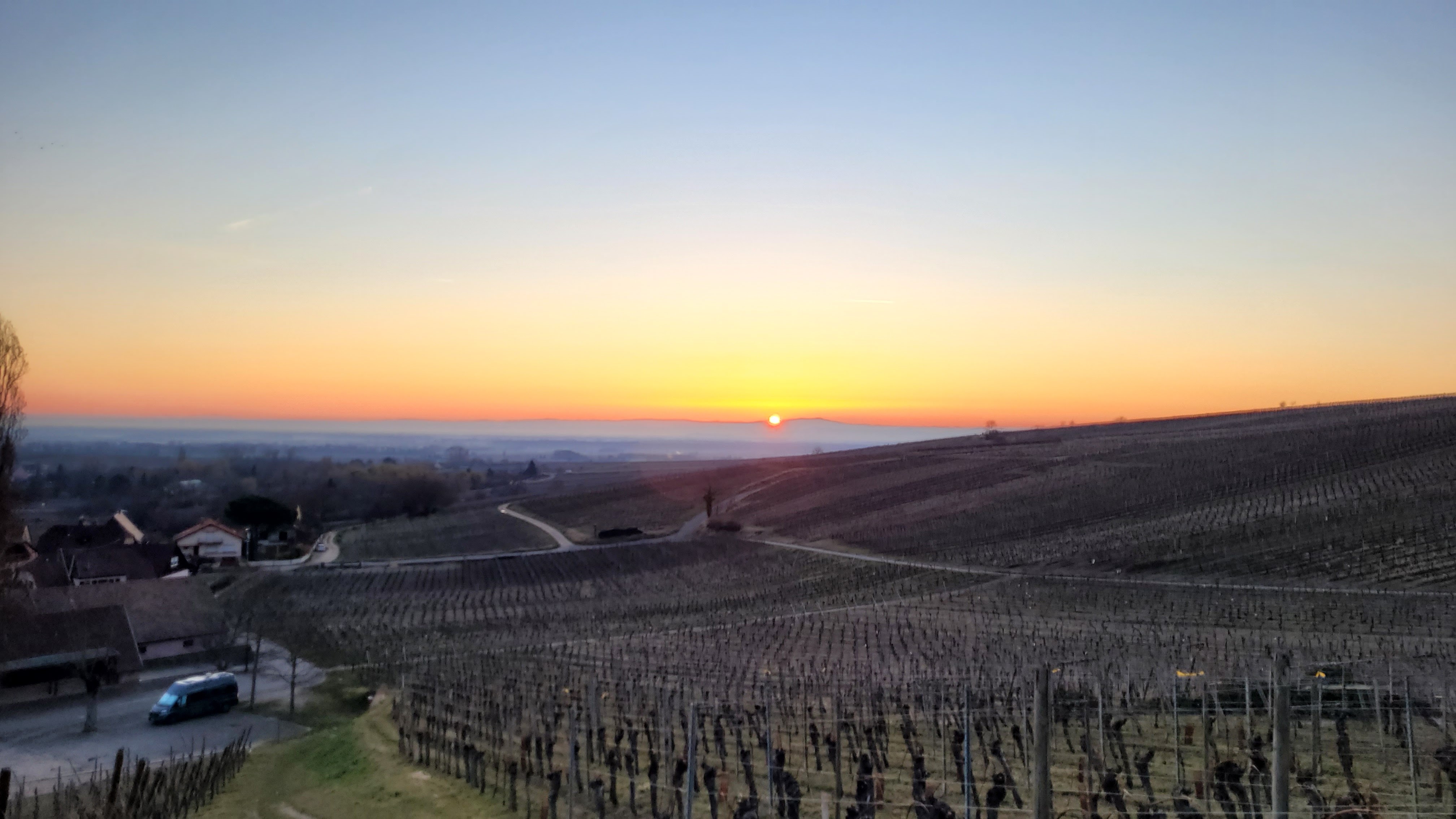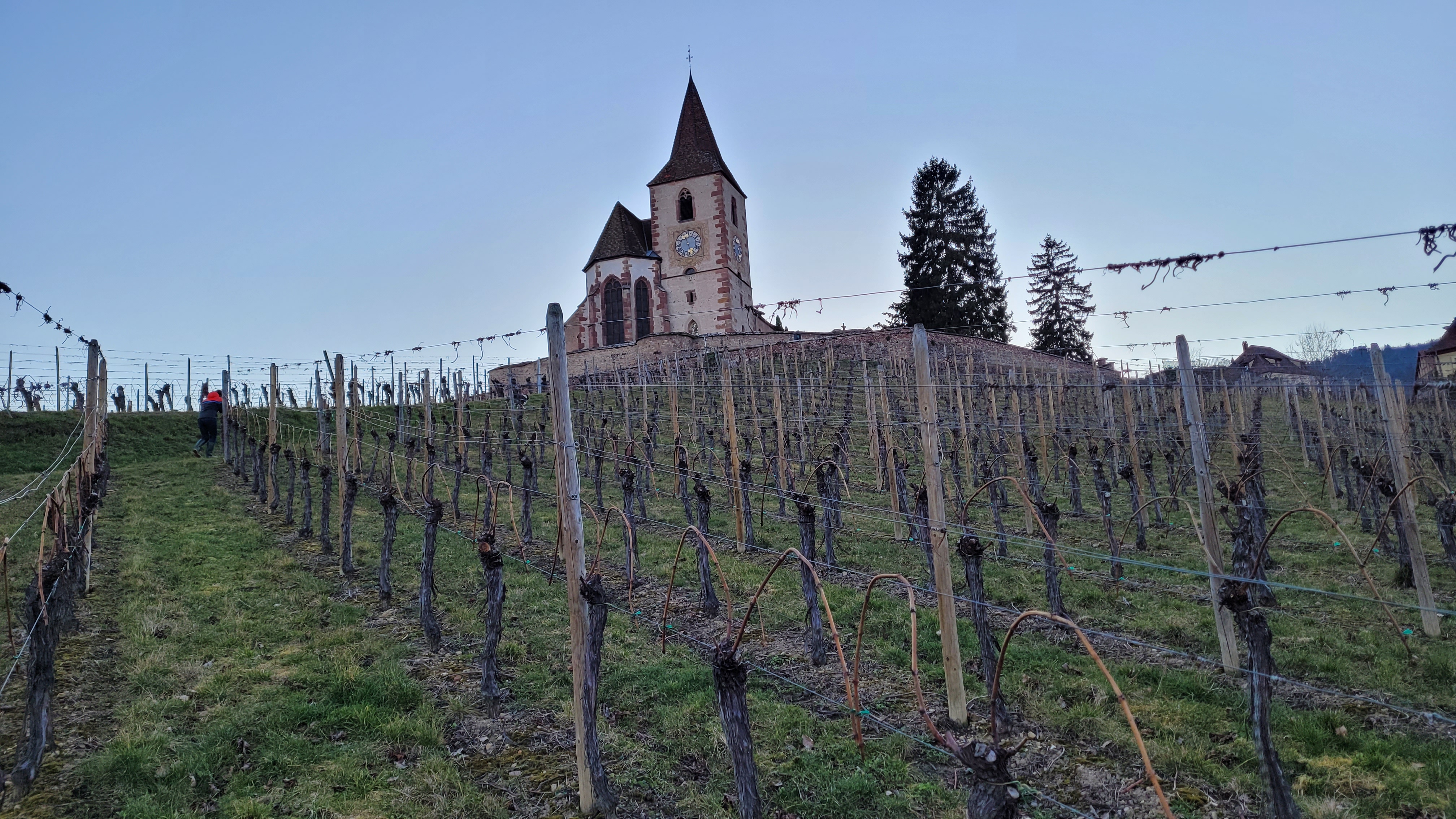 De cette petite église j'ai vu le dernier coucher de soleil de 2022, un magnifique manteau rose sur cette petite colline entourée à 360 degrés de vignes et de maisons alsaciennes. Cela vaut vraiment le détour lors d'un déplacement de Ribeauville à Riquewihr, cela rappelle beaucoup notre Rolle en Vénétie !