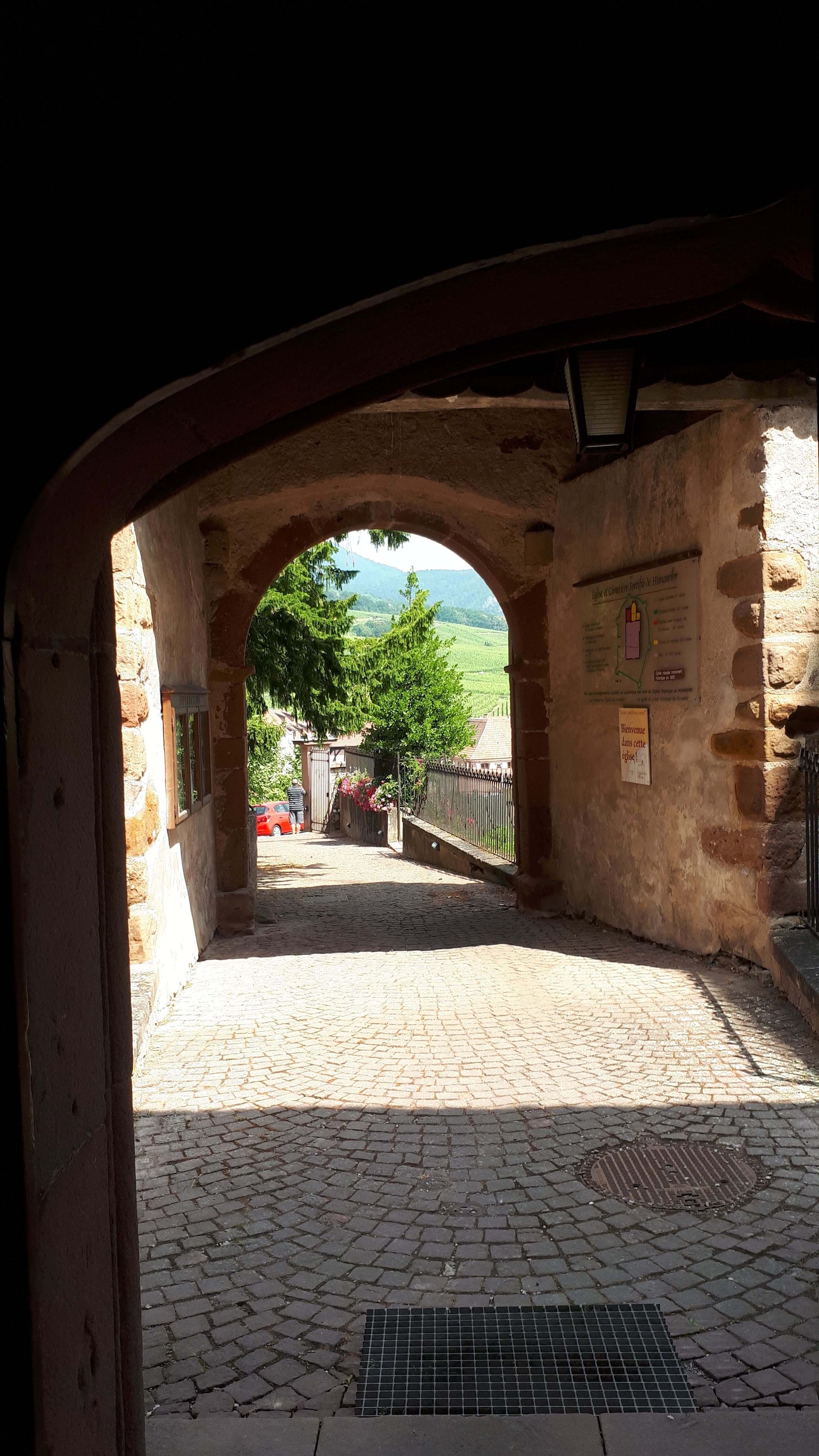 Hunawihr elle-même est sur la route de Riquewihr à Ribeauvillé. Hunawihr est également (comme Eguisheim et Riquewihr) récompensé par le titre de l'un des plus beaux villages de France (Plus beaux villages de France). Hunawihr a reçu ce prix pour le paysage urbain intact. L'une des curiosités est l'église fortifiée Saint-Jacques. Bien situé juste à l'extérieur du centre-ville. Mais nous ne sommes pas entrés dans l'église parce que c'était le service.