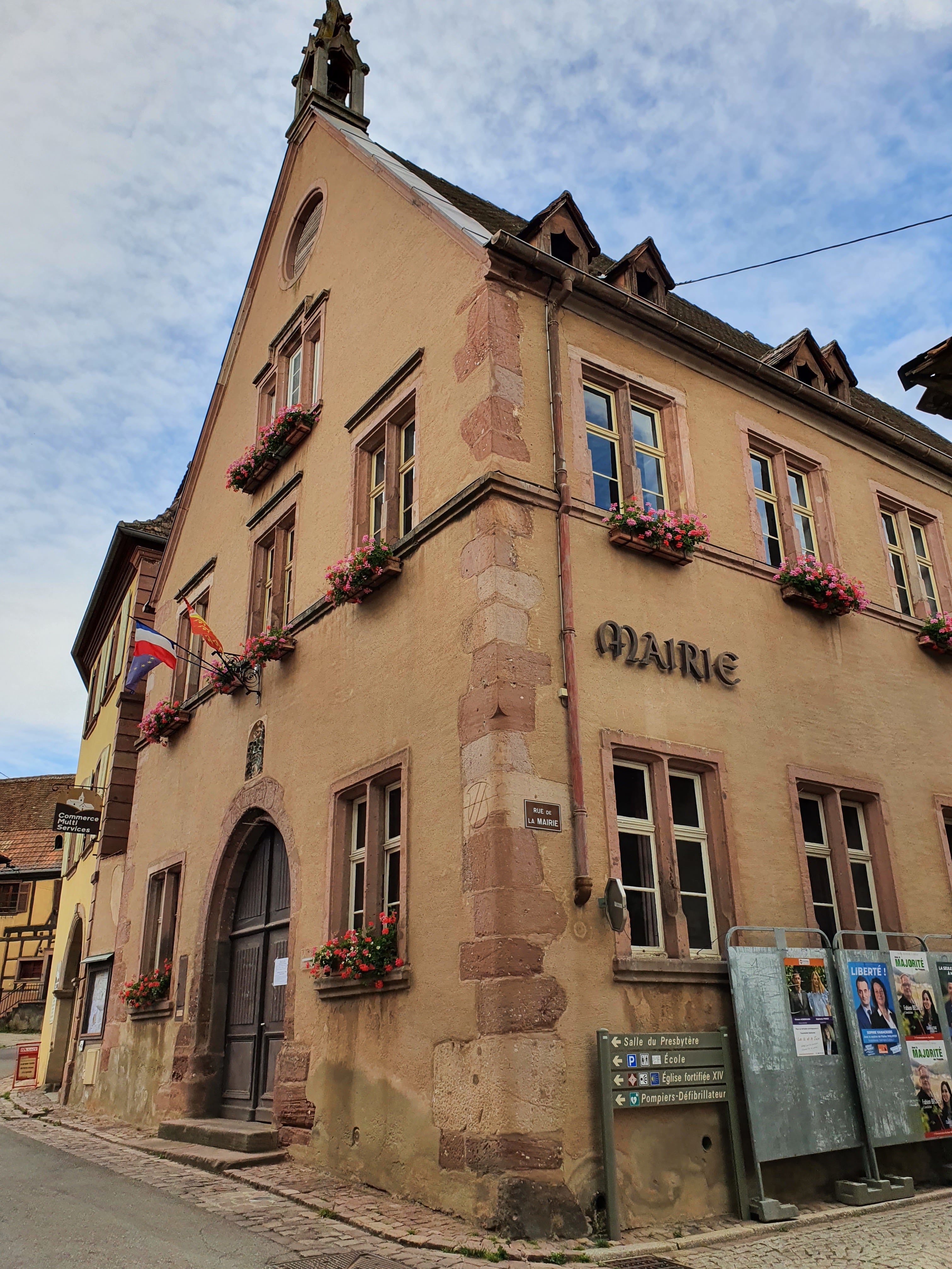 L'église est le point le plus marquant de ce village les plus beaux. Il est perché au sommet d'une colline, à quelques pas de la rue. Les vues sur les vignobles, la vallée alsacienne et au-delà depuis le parc de l'église sont époustouflantes. Cette église est partagée entre catholiques et protestants et il y a des cimetières séparés à montrer dans l'enceinte de l'église. Le village lui-même est constitué d'une rue principale avec de vieilles maisons des deux côtés. Une demi-heure ou une heure de détour en allant de Riquewihr à Ribeauvillé devrait suffire. Ou vous pouvez prendre le train touristique depuis Ribeauvillé qui dessert également ce village.