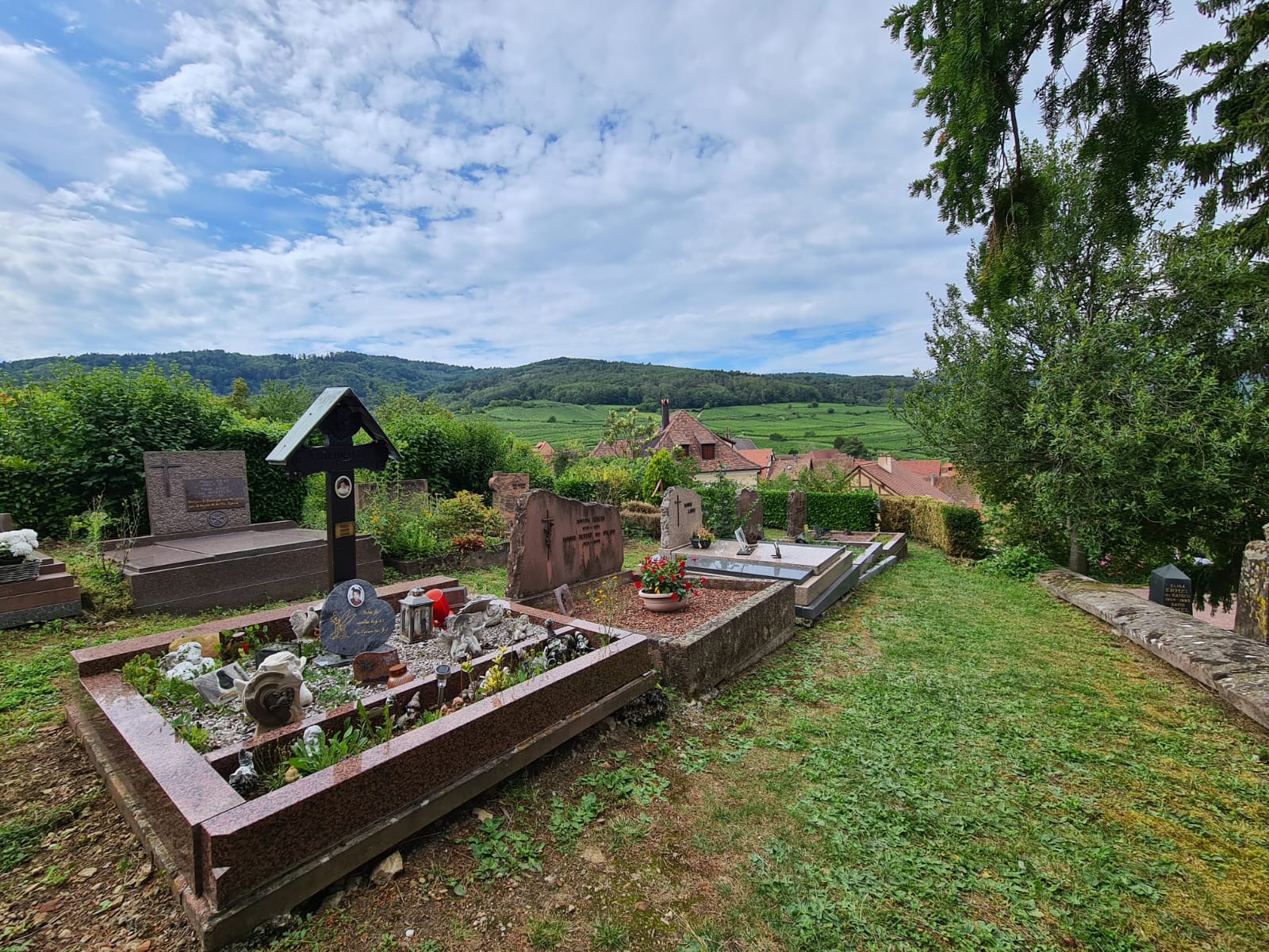 Magnifique emplacement au milieu du vignoble alsacien, belle vue sur le village d'en haut, mérite une halte.
