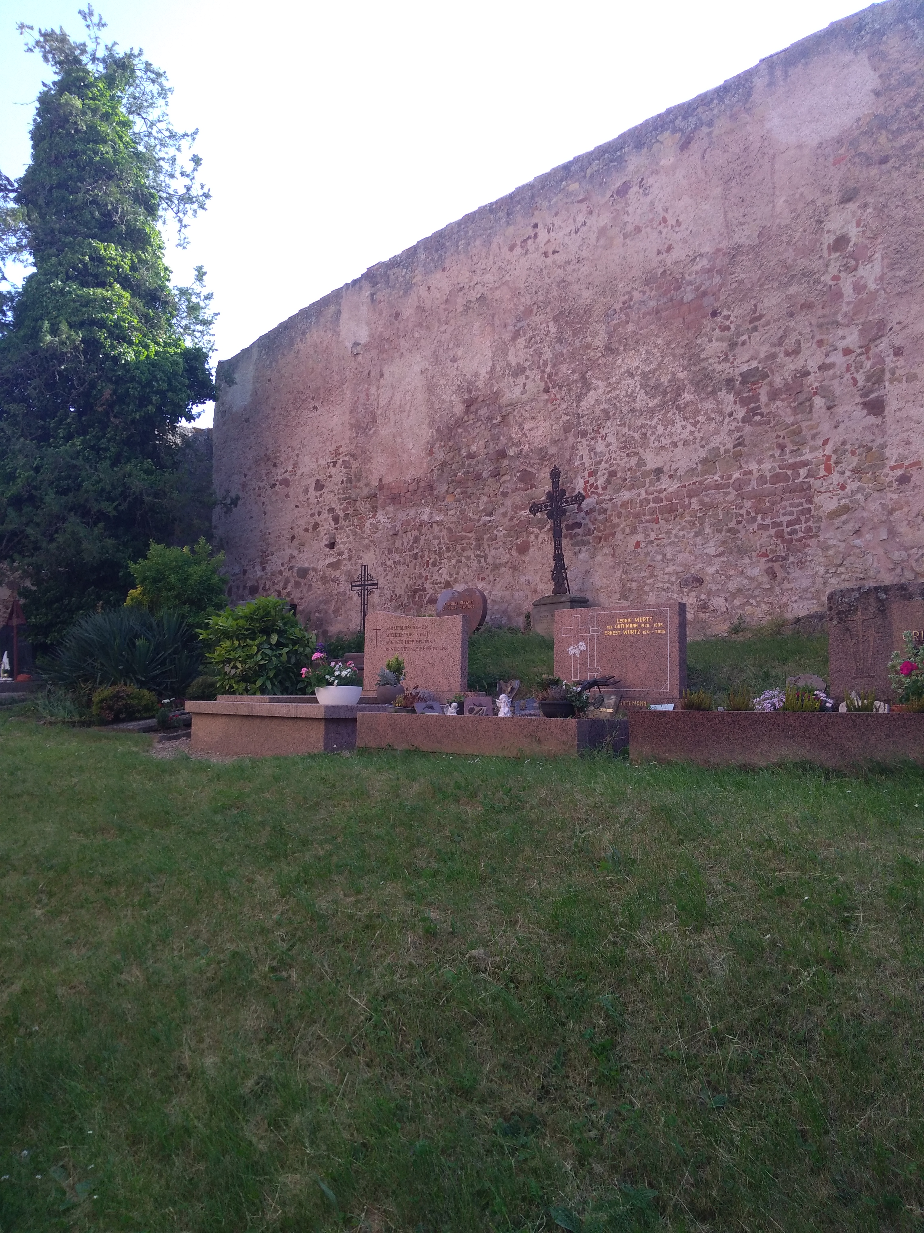 Construction intéressante avec mur de protection incluant embrasures. Des tombes vraiment anciennes