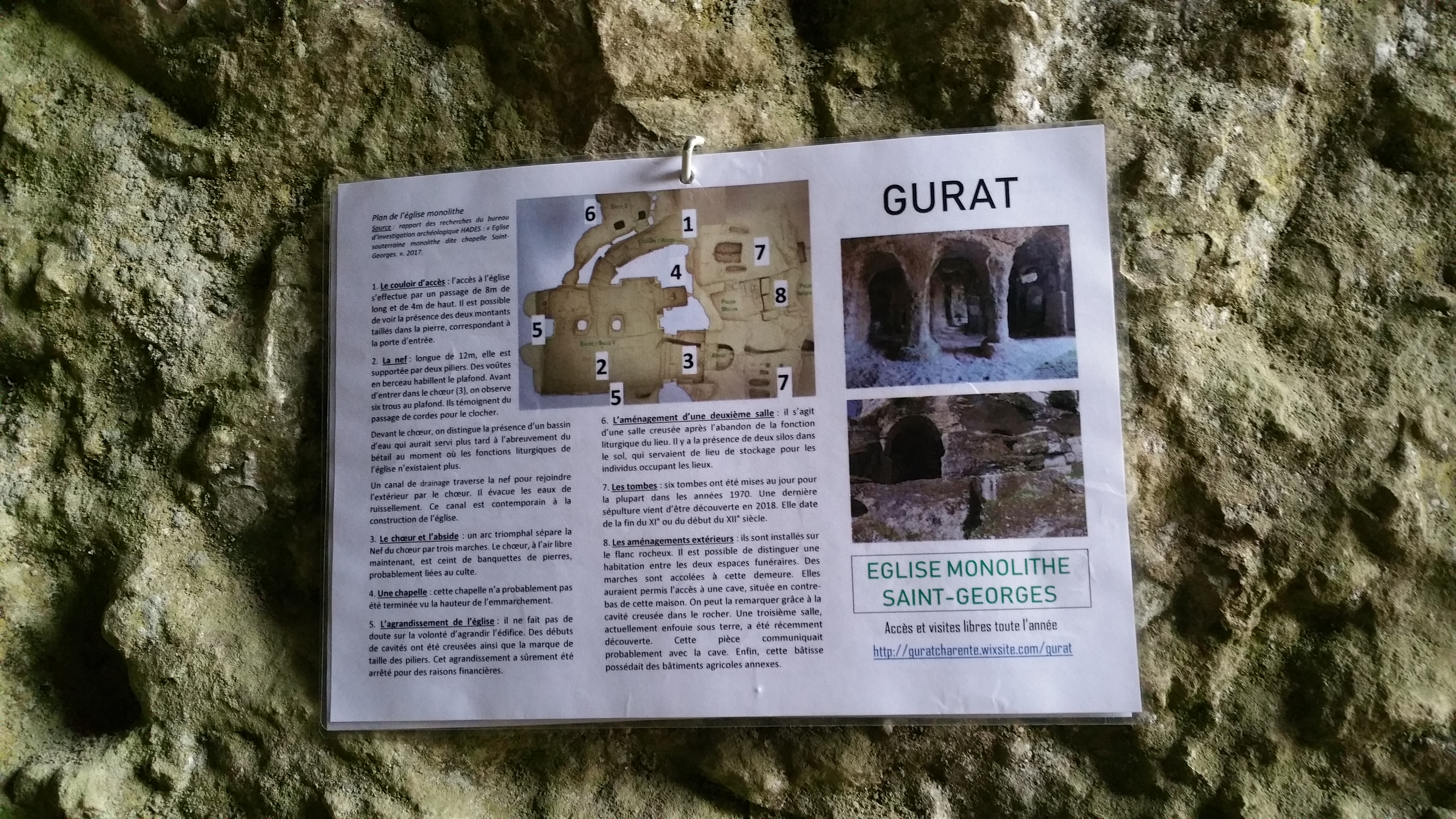 Voila un incontournable. Il vous faut visiter ce lieu intimiste (visite gratuite ), voir les grottes d'Argentine et sa chapelle à Larochebeaucourt (visite gratuite), pour ensuite voir l'église ou devrais je dire la cathédrale monolithe d'Aubeterre (visite payante) . Cette église monolithe de Gurat est signalé lieu remarquable sur le guide Michelin. ( en 2018 et 2019... pour l'instant) Vous apprécierez davantage celle d'Aubeterre après avoir vu les 2 autres sites. Pour moi, ces 3 sites proches sont incontournable pour comprendre.
