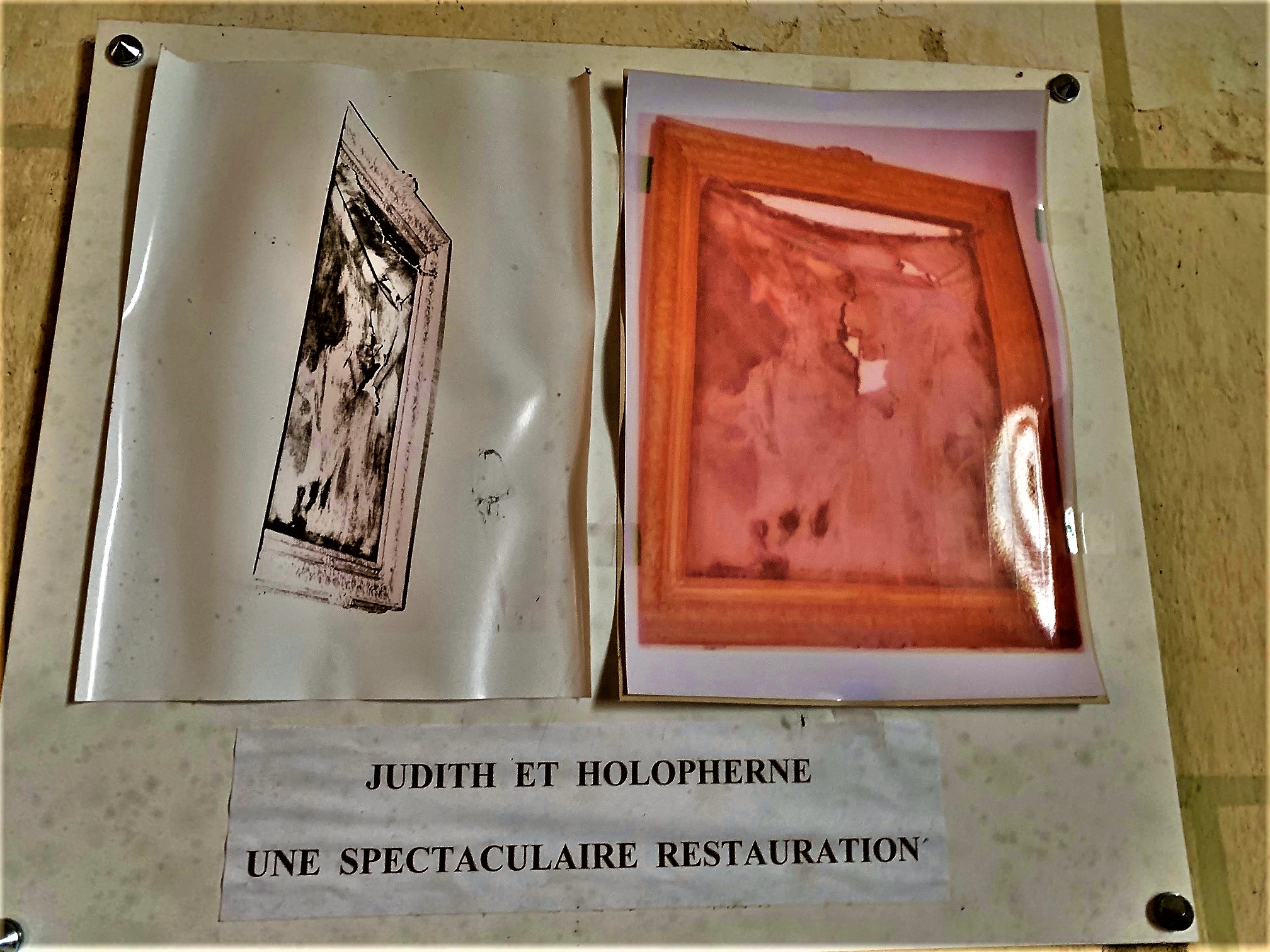Une église, peu aguichante de l'extérieur mais qui mérite une visite. L'intérieur est charmant, un trésor et quelques autres jolies choses y sont abritées. Dès que l'on pénètre dans l'édifice, l'oeil est attiré par le chœur et l'avant-chœur, séparés l'un de l'autre et de la nef par des arcs en tiers-point, leur aspect oriental surprend. Cette église construite au 12ème siècle, de forme rectangulaire à l'origine, a acquit la forme de croix latine par l'adjonction successive de deux chapelles au 18ème et 19ème siècles, séparées du chœur par des arcs en plein cintre. C'est également au 19ème que la nef est agrandie et la façade refaite. Le chœur a été repris au 13ème siècle, le clocher en charpente du 16ème porte aujourd'hui une élégante petite flèche recouverte d'ardoises. Les autels et retables sont simples, de belles couleurs les agrémentent, apportant des éléments joyeux dans cette église. Un trésor, située dans la chapelle nord, est l'occasion d'admirer une oeuvre particulière. Il s'agit d'un tableau de l'école Le Caravage, maître du clair-obscur faisant surgir des ténèbres ses personnages. Holopherne, décapité par Judith en est le sujet, il s'agit d'une superbe copie, l'original, après restauration a été placé dans un endroit protégé.
