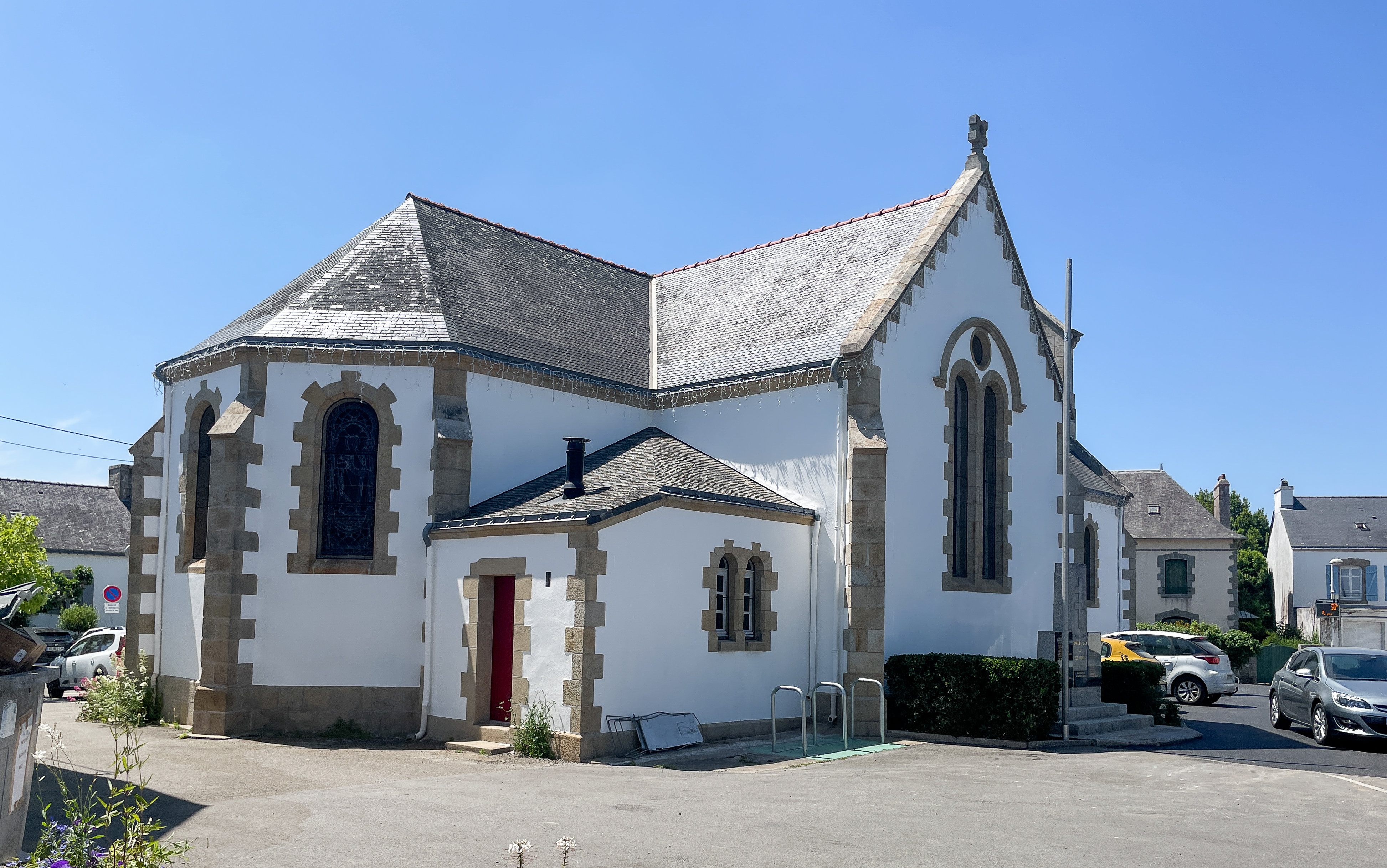 Jolie église au centre de Larmor-Baden. Beaux vitraux. Un endroit tranquille
