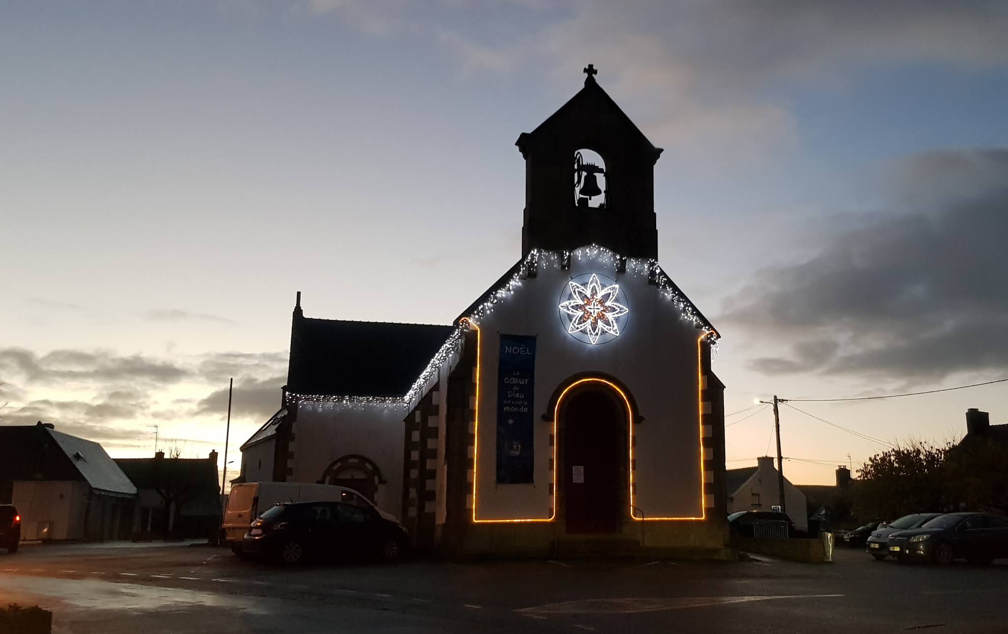 Eglise très bien illuminée le soir - crèche très belle - célébration de la messe de Noël (24 decembre) très bien (beaucoup de chants)
