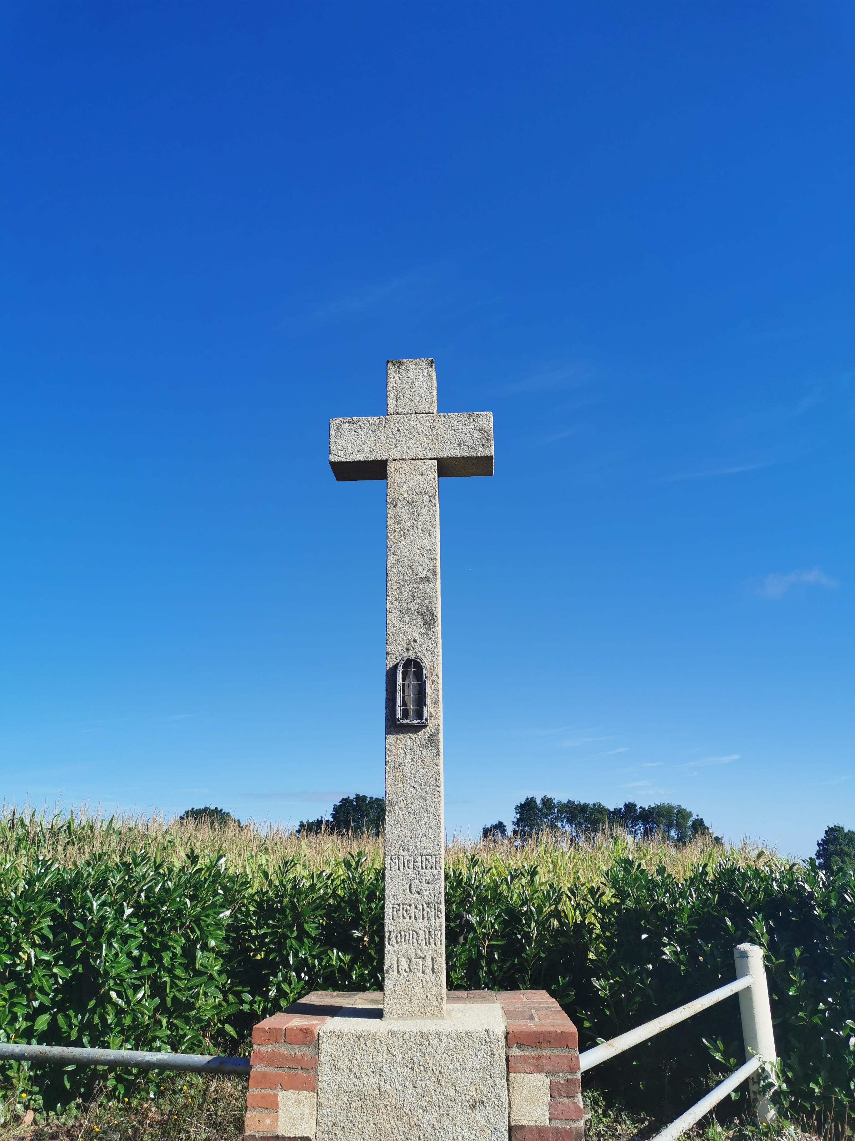 Belle église de Jallais et calvaire situé en campagne proche.