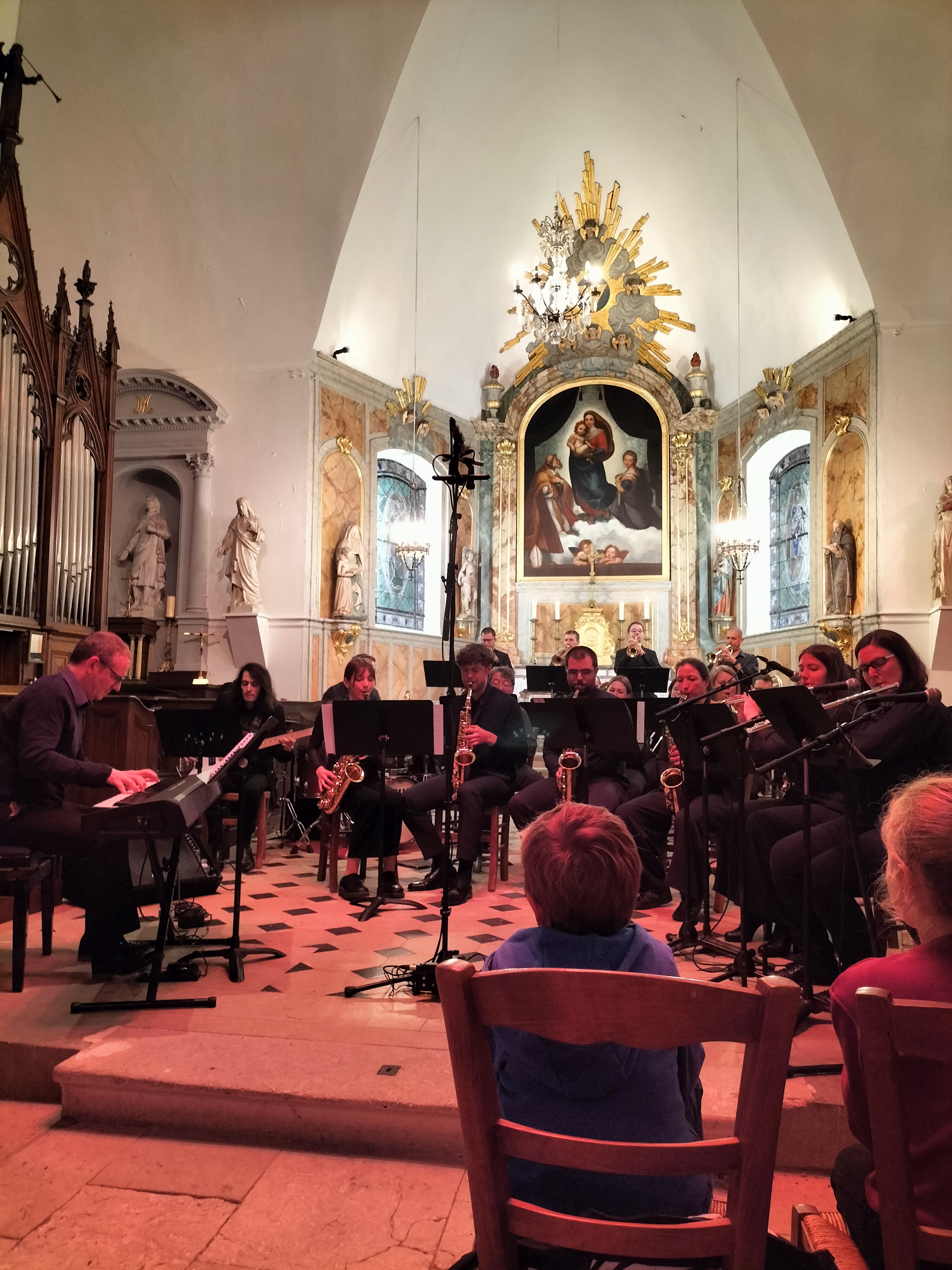 L'adorable petite église Notre Dame à Belbeuf magnifiquement restaurée, éclairée en extérieur par un chemin de bougies pour la fête des lumières et cerise sur le gâteau elle accueillait ce samedi le Big Bang de Canteleu pour un concert de Jazz 👏👍😍