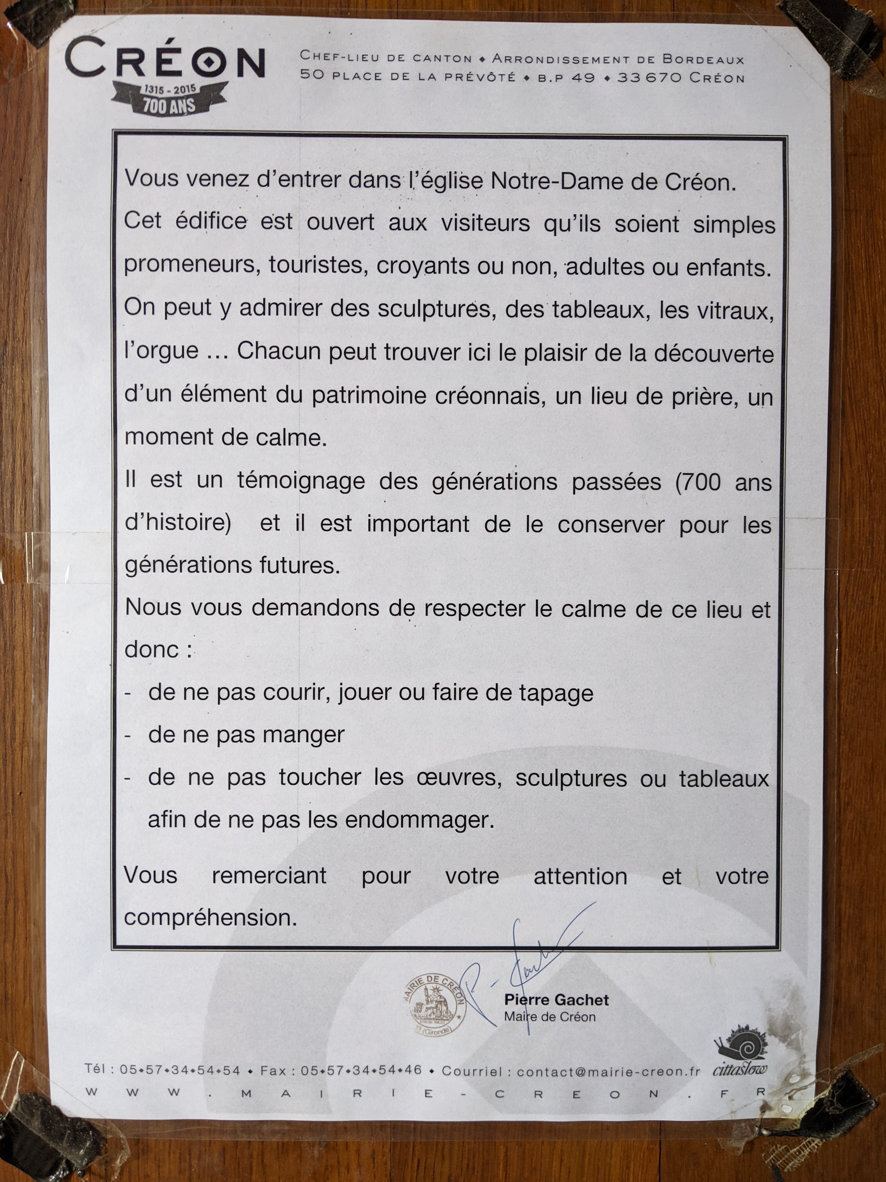 Ce n'est pas un arrêt obligatoire mais si on flâne sur la place centrale de Créon, l'église vaut le coup d'œil. Elle est simple et jolie, et les 700 ans d'histoire inspire un peu de respect. La porte principale, les vitraux, l'orgue, la statue de la vierge et l'enfant du XIIIe siècle sont à voir.