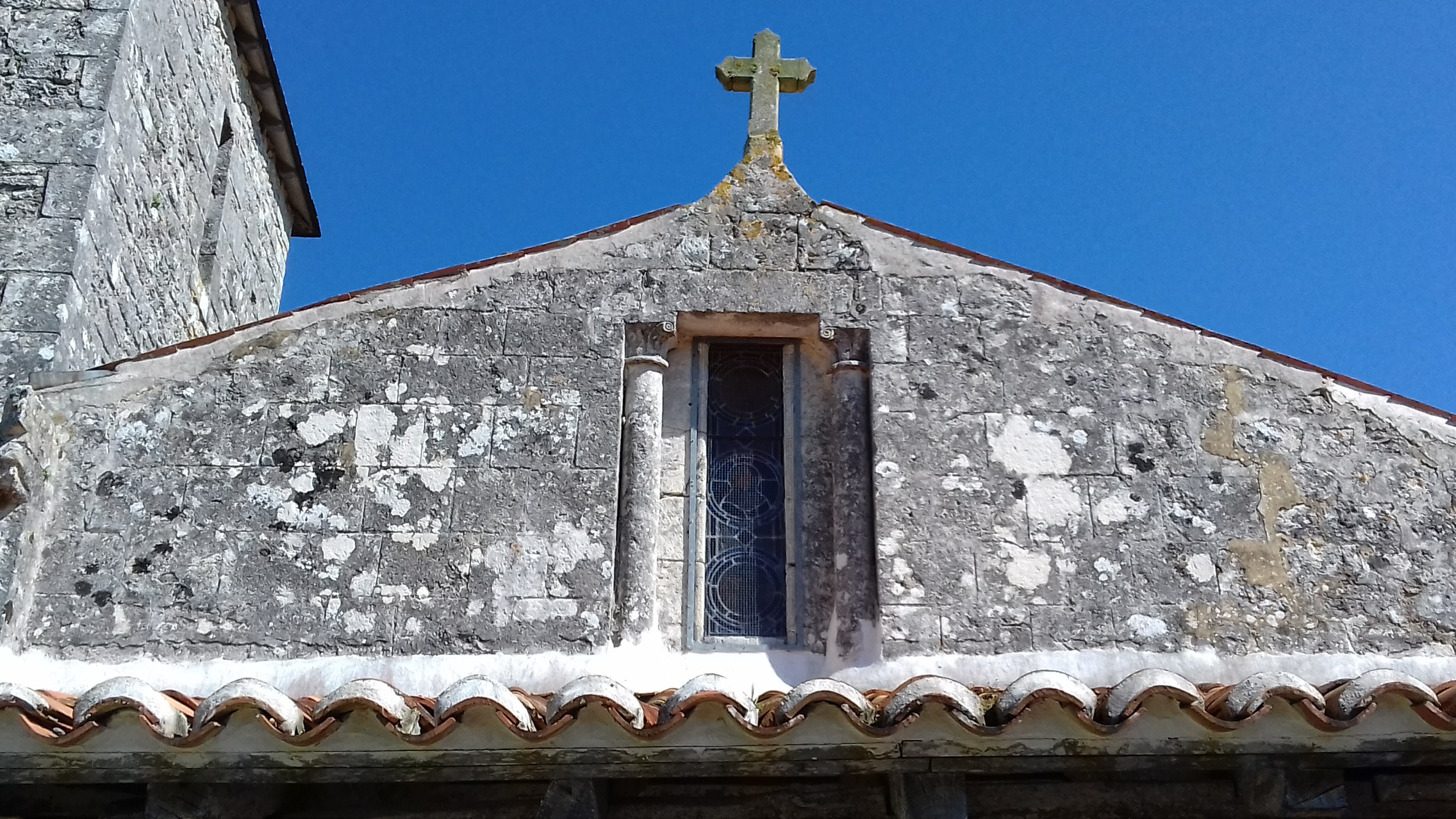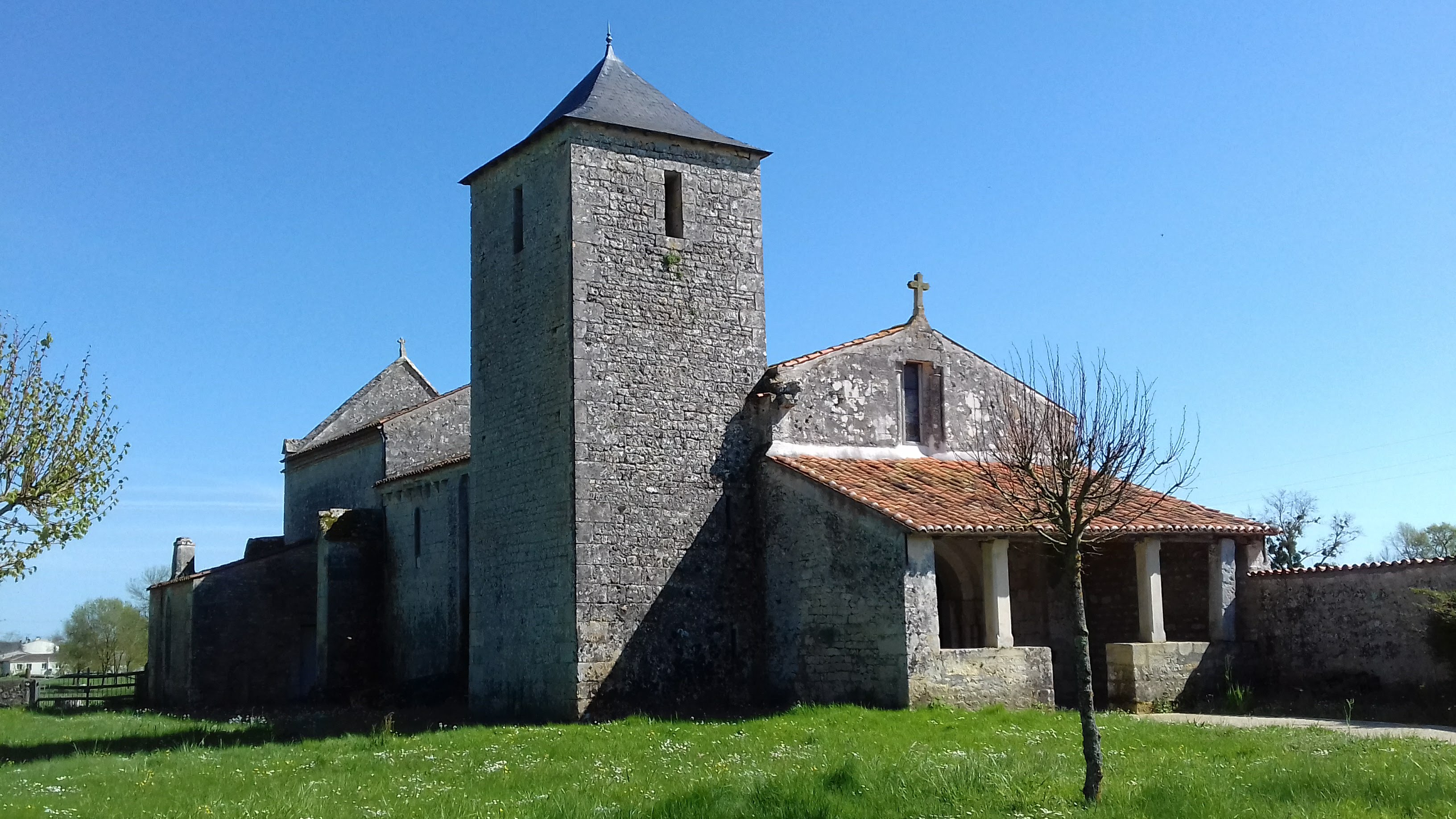 Pte église au bout de son allée avec son beau terrain et ses tombes anciennes. Son auvent et son clocher tour carrée. Malheureusement fermée au moment de ma visite. Construite au début du XII ème Siècle et fortement remaniée au fil des siècles.