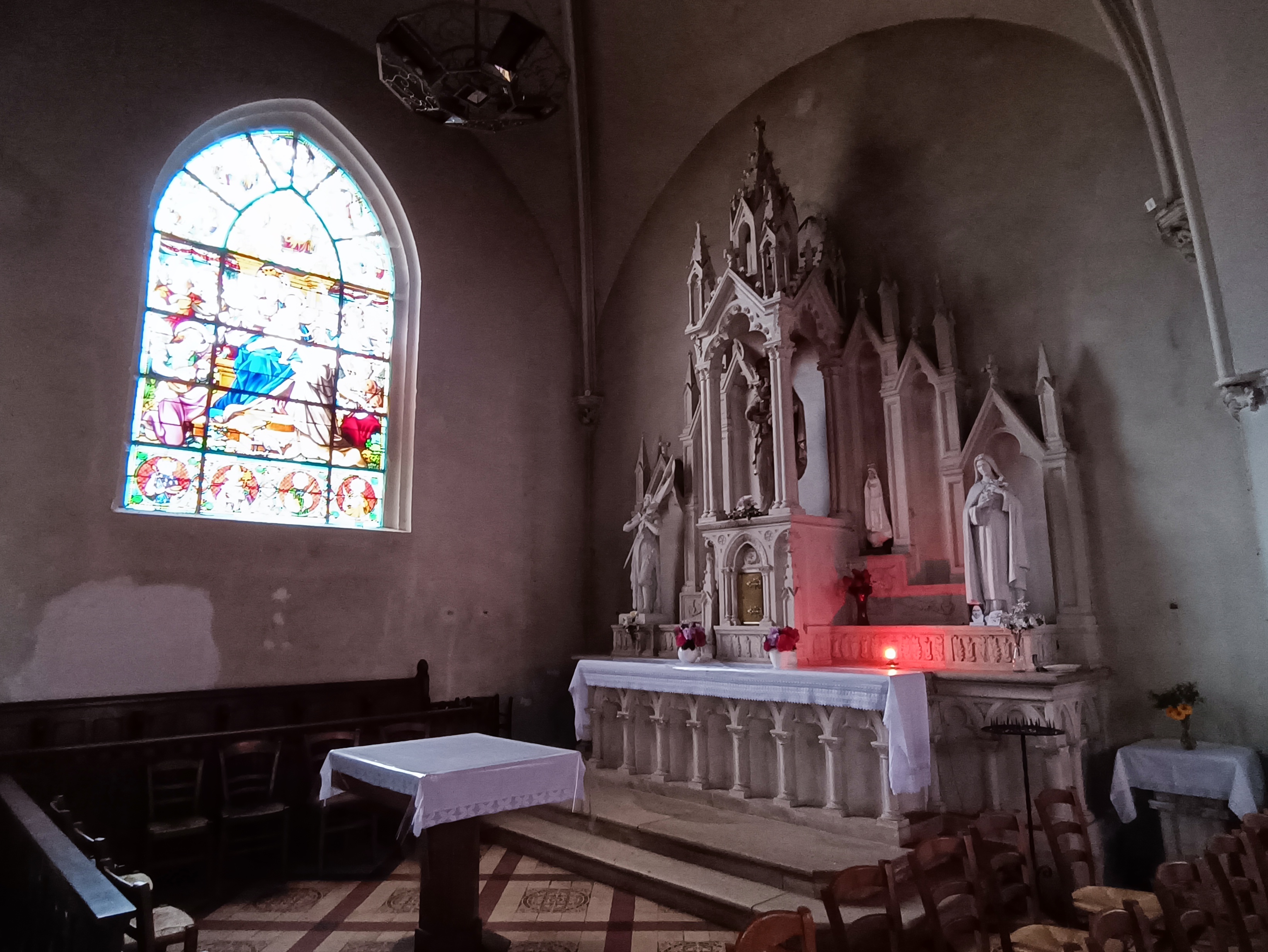 Belle visite-surprise ce dimanche AM, car cette belle église était accessible. Malheureusement désertée. Sachant que la messe dominicale avait lieu ce jour à la Loupe.