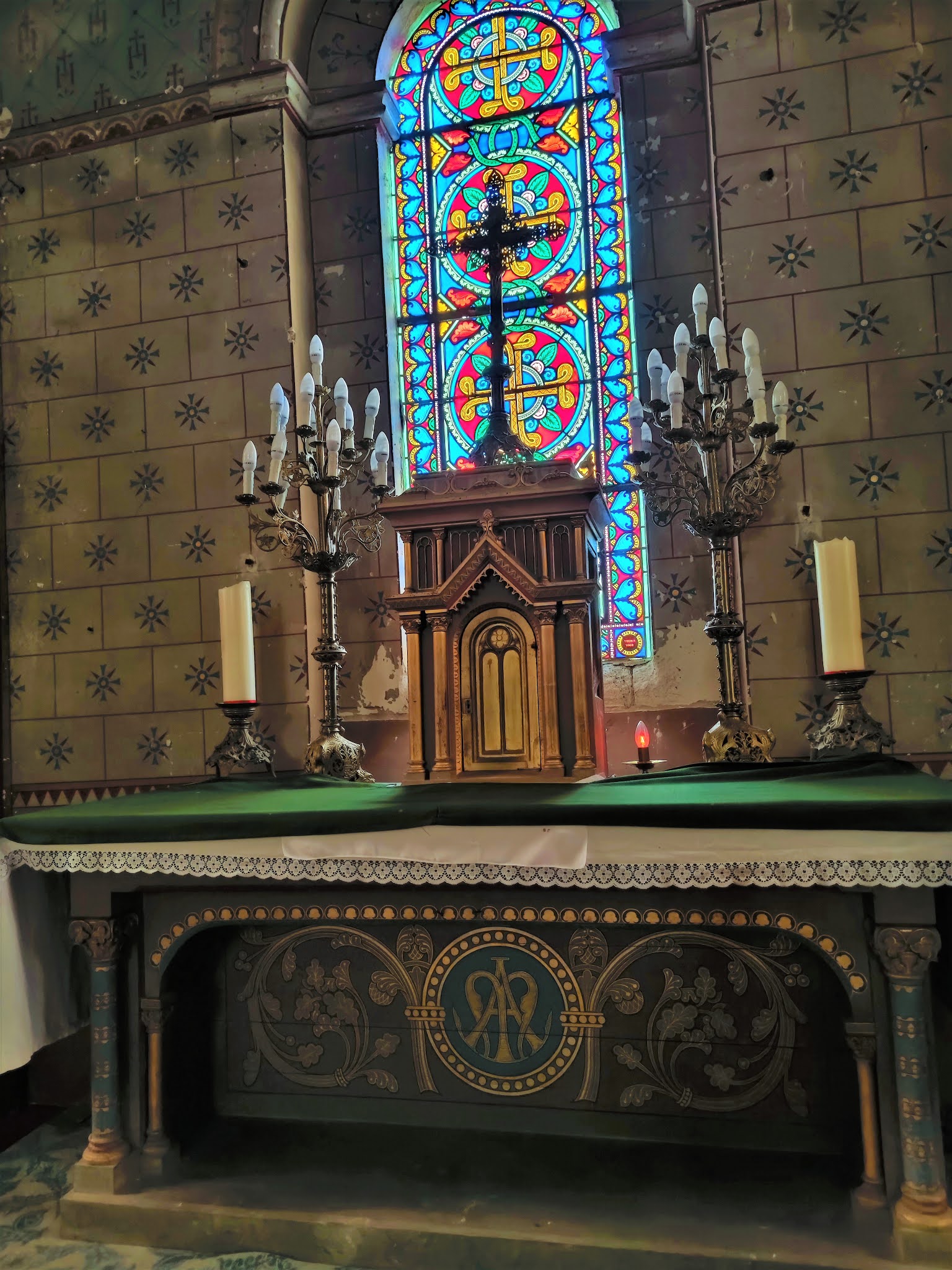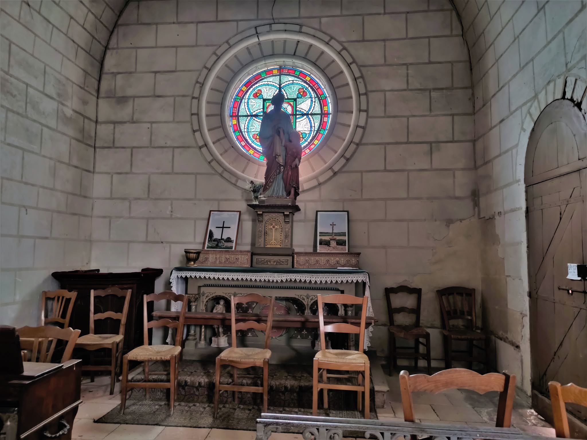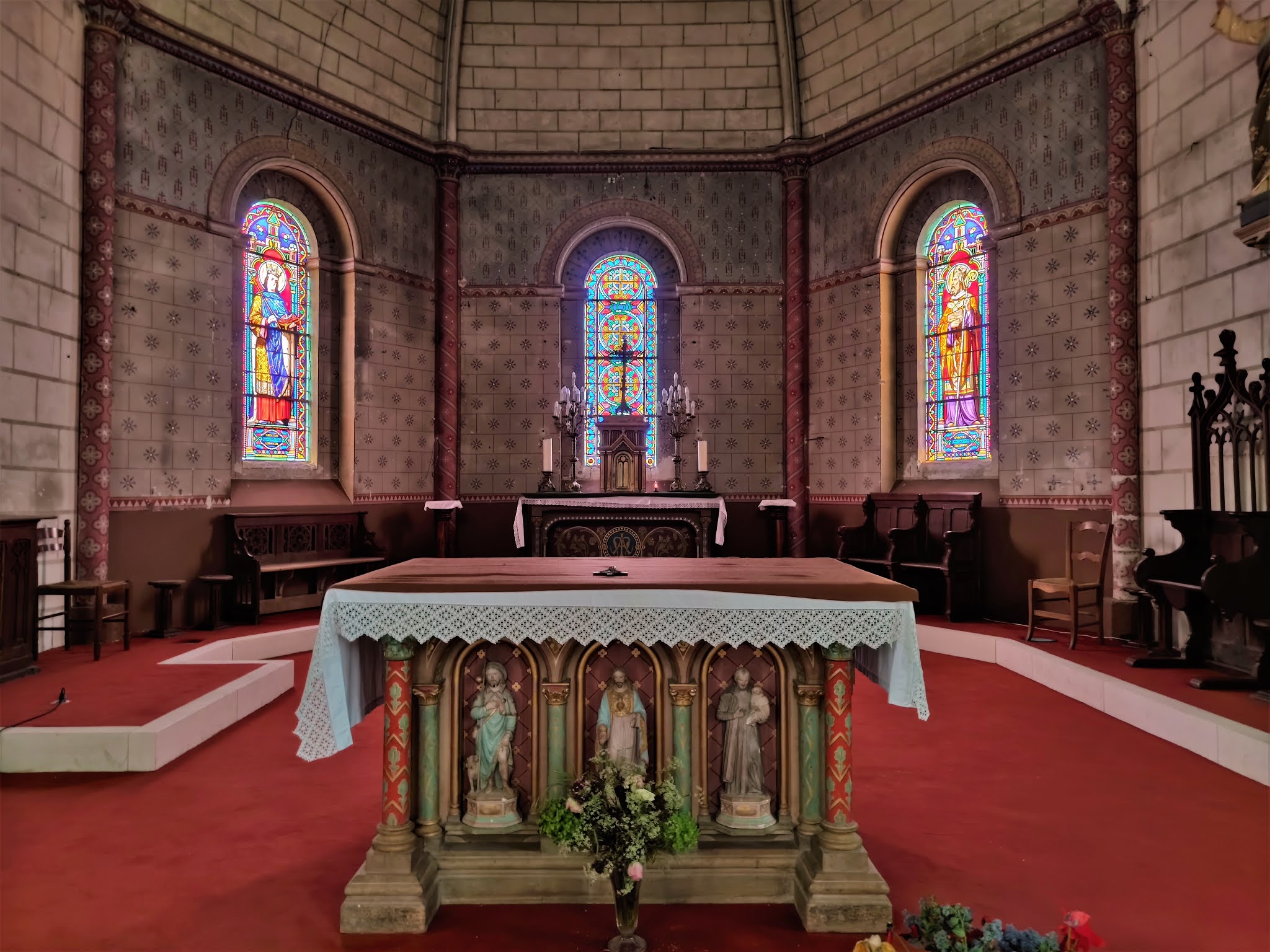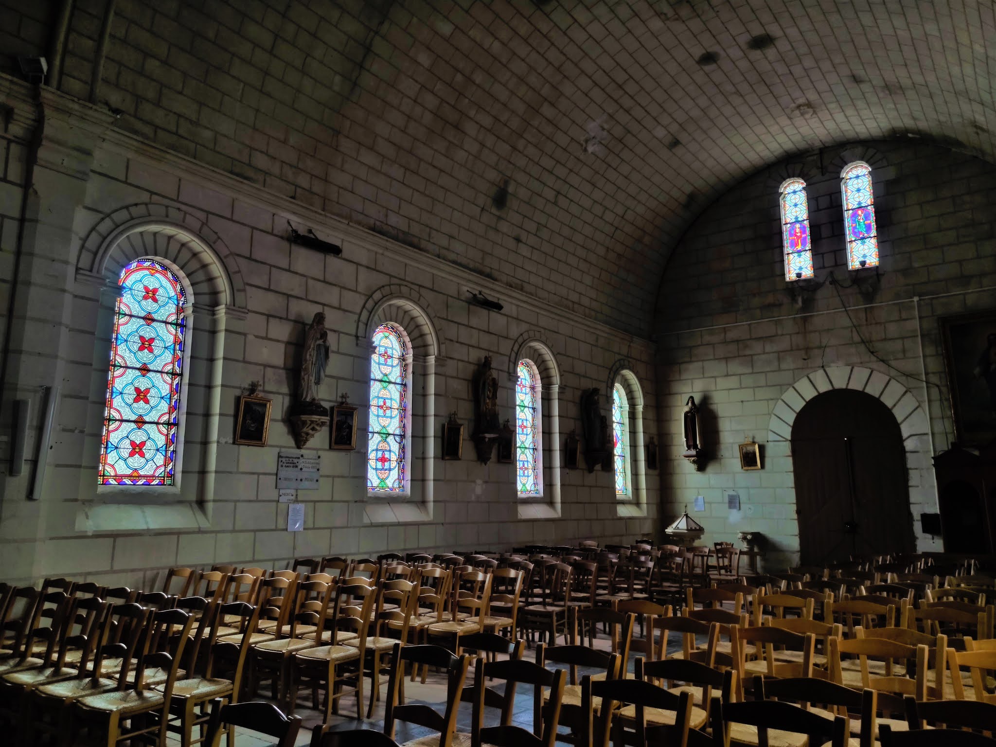 Petite église accueillante, elle est le seul patrimoine architectural de la commune. Il faut emprunter les clés à la mairie qui est située juste à côté. Le clocher du 15ème siècle, accolé au Nord de la façade, est ce qui reste de l'édifice primitif. La nef, le transept et le chœur, ont été construits au 19ème siècle. La travée du chœur et l'abside à trois pans a belle allure, deux autels y sont disposés. Des vitraux du 19ème siècle occupent toutes les ouvertures, ils offrent un éclairage de qualité. La voûte en plâtre du 19ème est en état médiocre, elle mériterait une réfection.