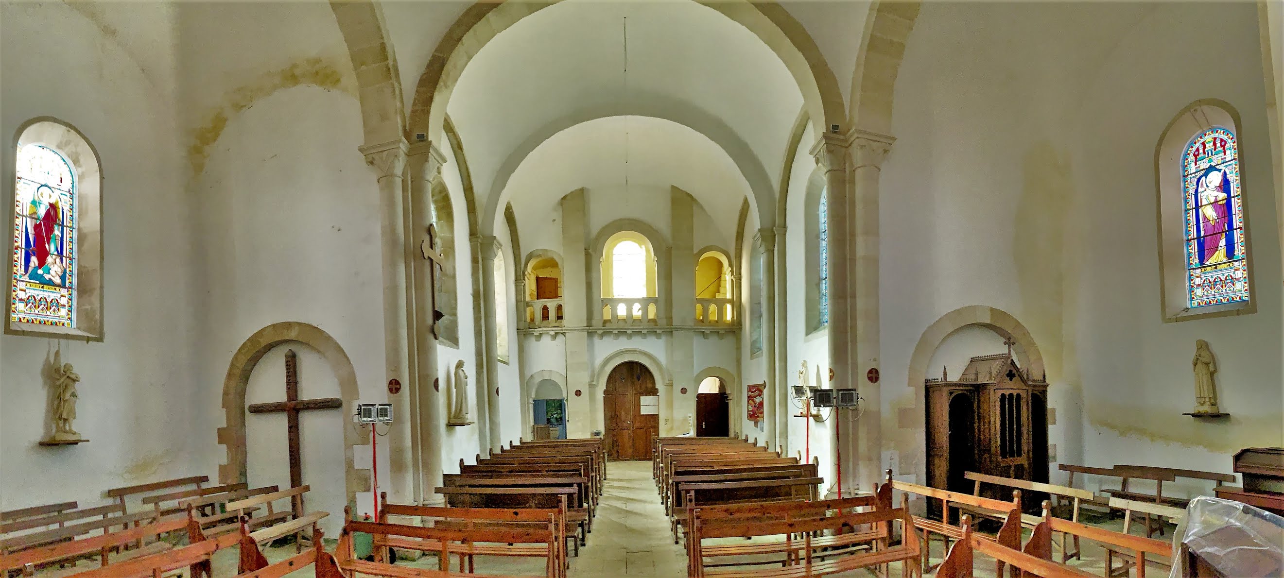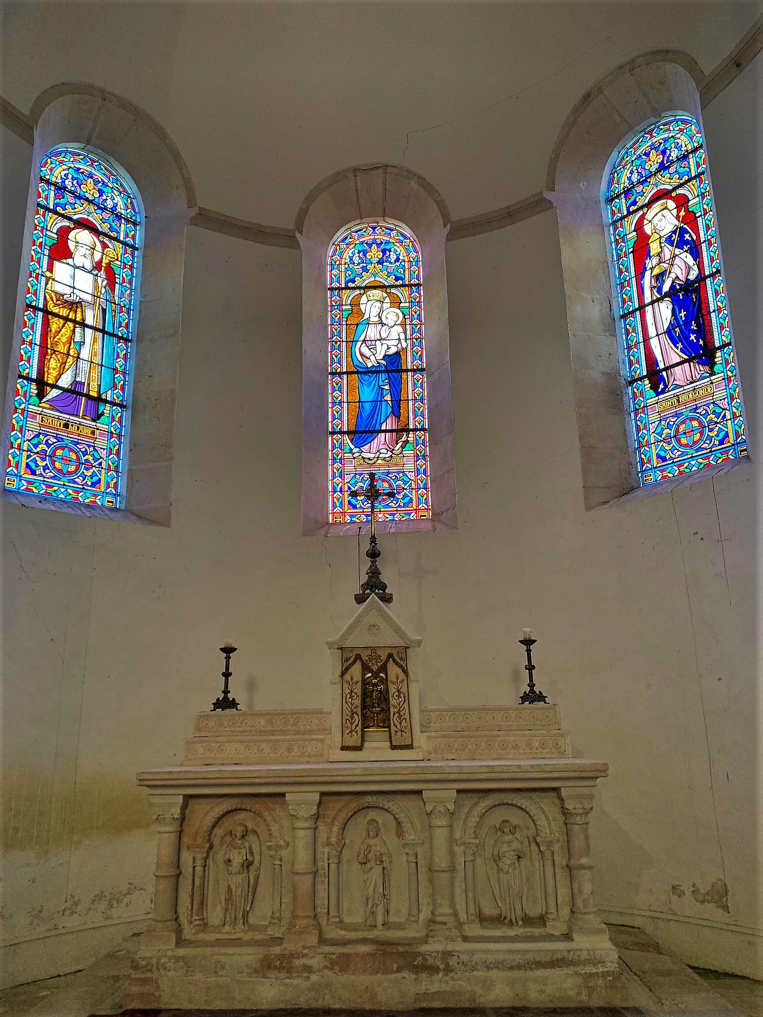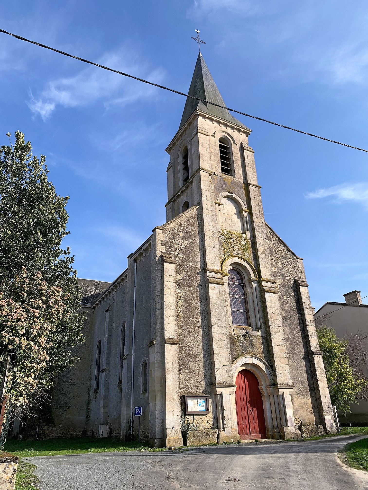 Voila une modeste église de village construite au 19ème siècle, témoignage de la foi d'une communauté catholique. En 1860, cette dernière finance la construction de cet édifice (seul l'état contribua), résolue à avoir une église envers et contre tout. A cette époque, cette commune de Souvigné est un fief protestant, le conseil municipal l'est aussi, et cela perdura. En 1910, le clocher menace ruine, la municipalité décide de le raser. La communauté catholique engagea les travaux de reconstruction du clocher à ses frais. Assez banale à l'extérieur, cette église se distingue par son style roman qui n'était pas en vogue à la fin 19ème, le gothique prédominait. Voûté en berceau, l'intérieur est lumineux, les vitraux reflètent le style en vogue au 19ème et au début du 20ème siècle. Quelques objets intriguent, une croix pleine de cœurs et une ancienne cuve baptismale, entre-autre.