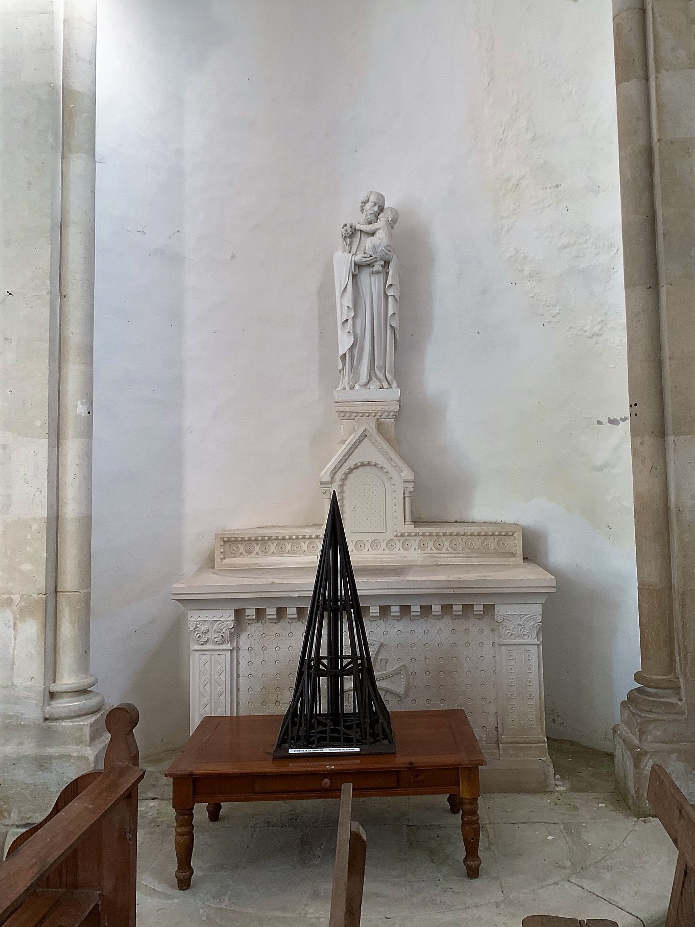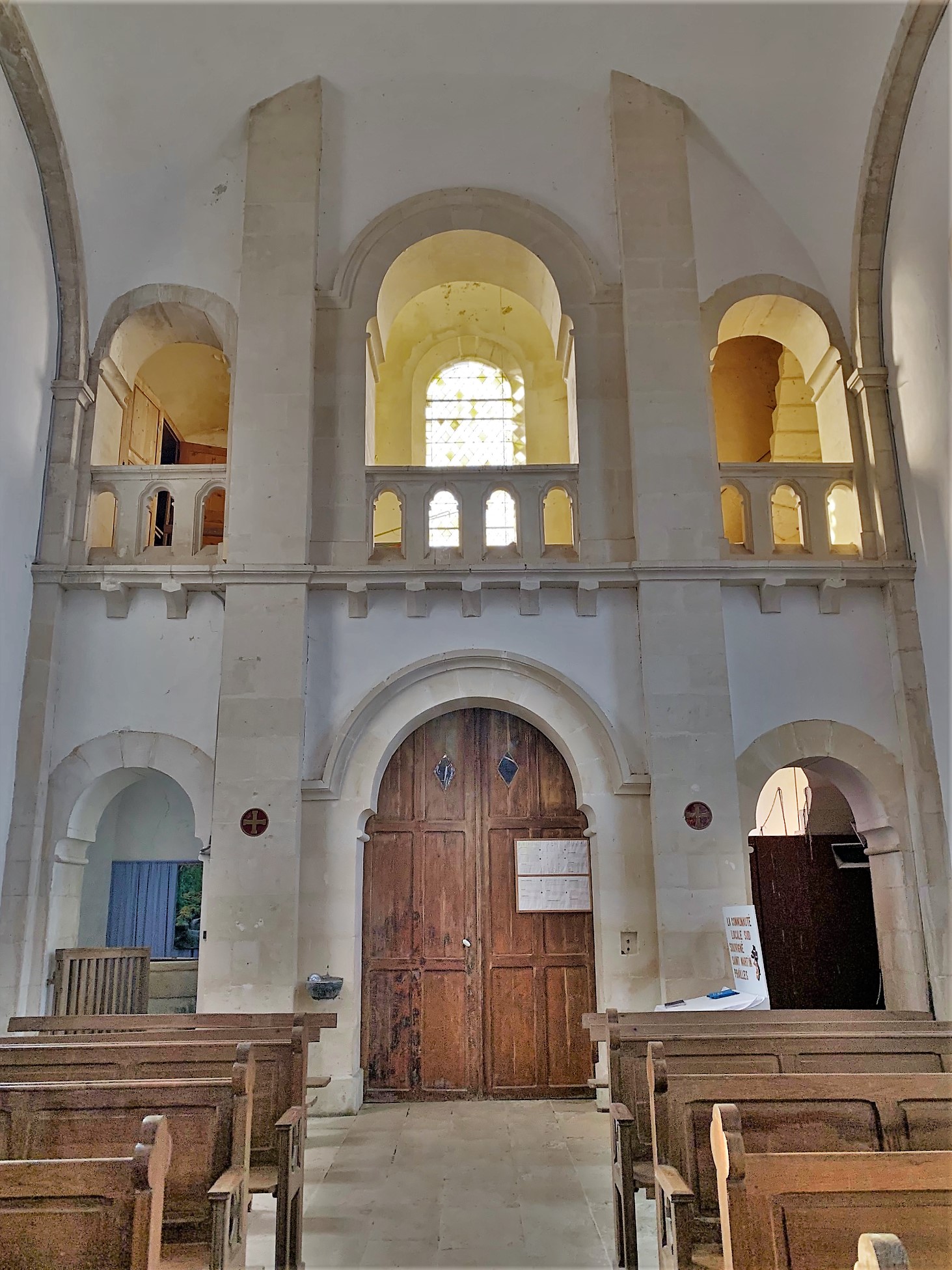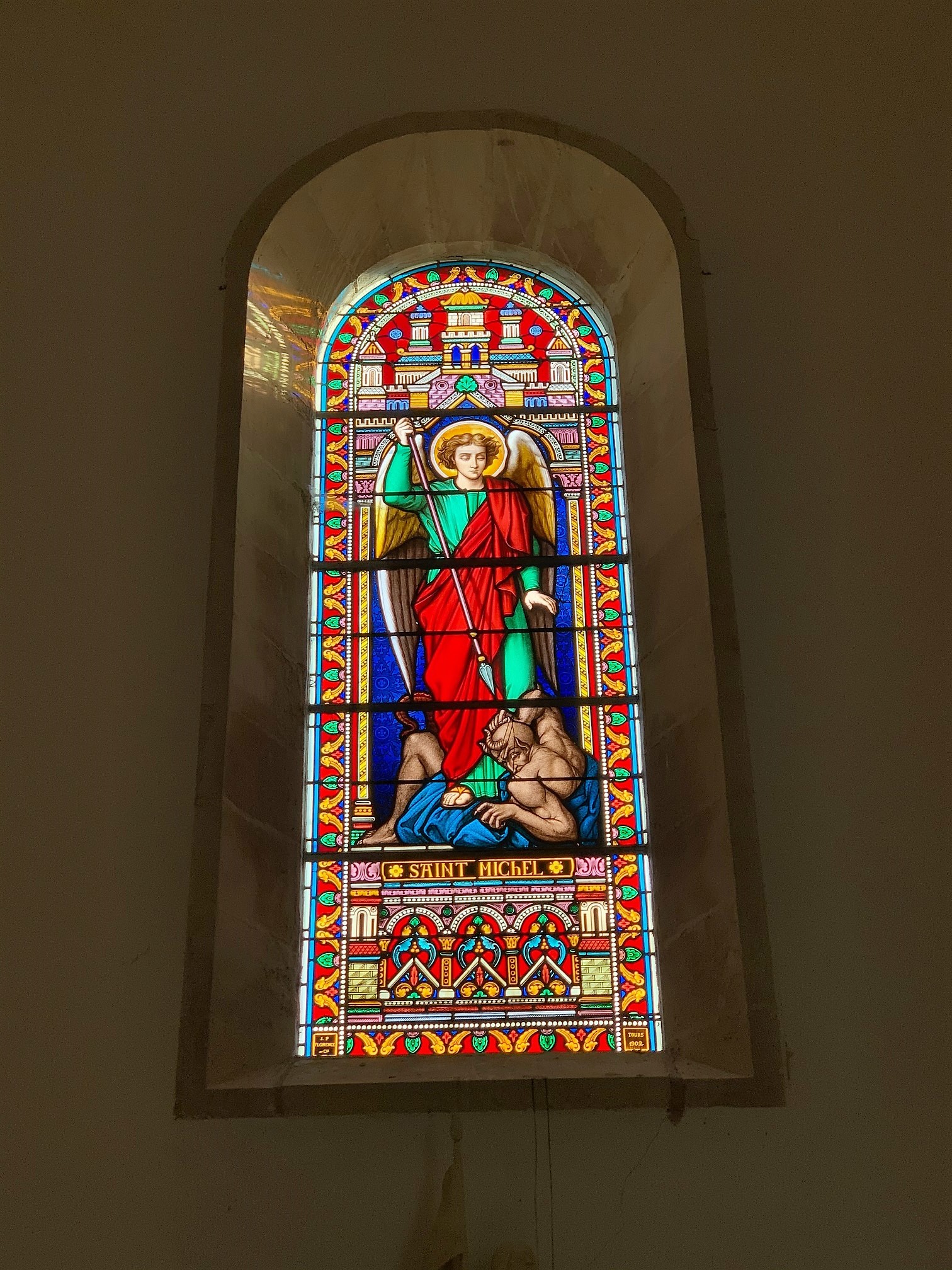 Voila une modeste église de village construite au 19ème siècle, témoignage de la foi d'une communauté catholique. En 1860, cette dernière finance la construction de cet édifice (seul l'état contribua), résolue à avoir une église envers et contre tout. A cette époque, cette commune de Souvigné est un fief protestant, le conseil municipal l'est aussi, et cela perdura. En 1910, le clocher menace ruine, la municipalité décide de le raser. La communauté catholique engagea les travaux de reconstruction du clocher à ses frais. Assez banale à l'extérieur, cette église se distingue par son style roman qui n'était pas en vogue à la fin 19ème, le gothique prédominait. Voûté en berceau, l'intérieur est lumineux, les vitraux reflètent le style en vogue au 19ème et au début du 20ème siècle. Quelques objets intriguent, une croix pleine de cœurs et une ancienne cuve baptismale, entre-autre.