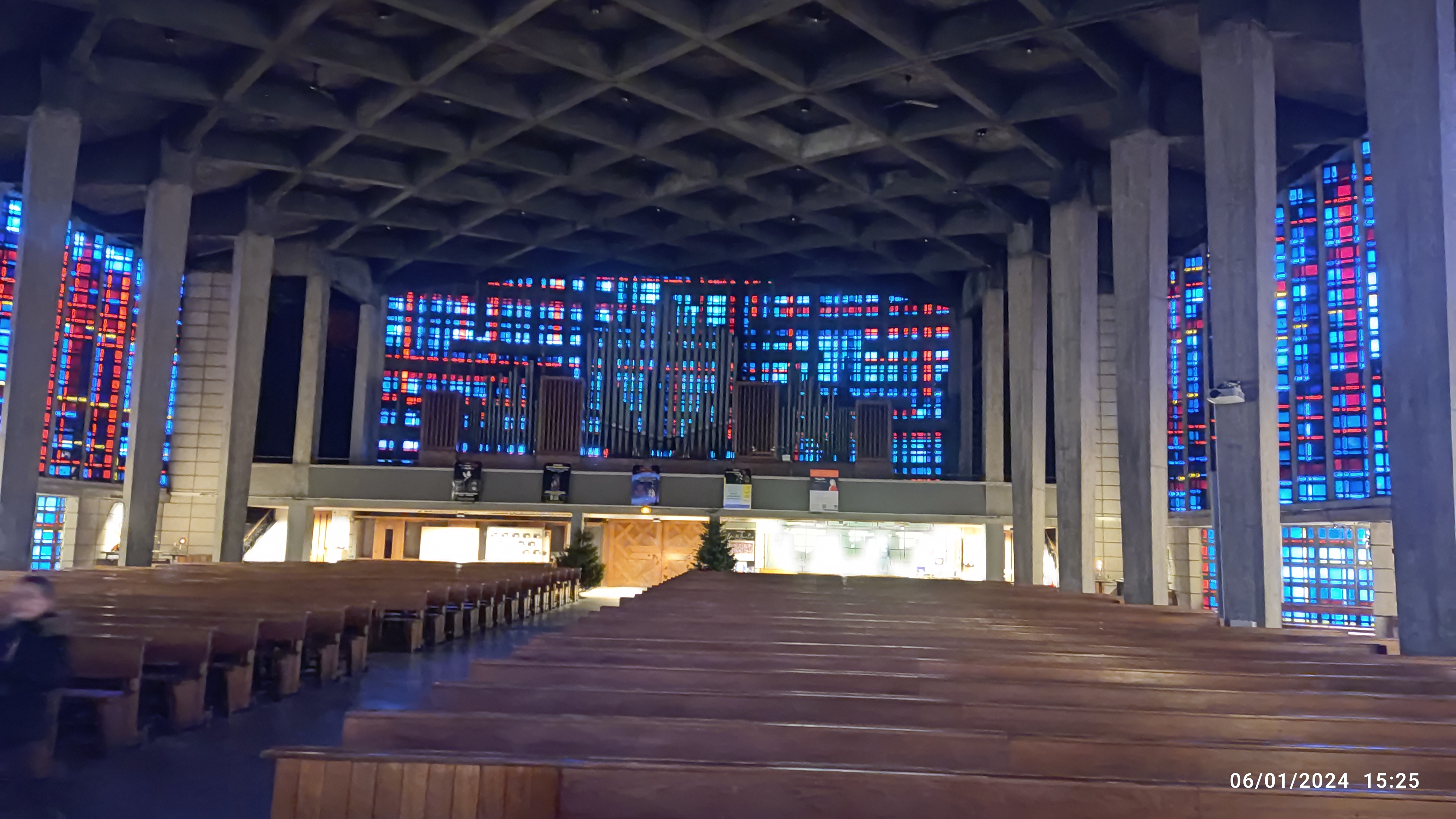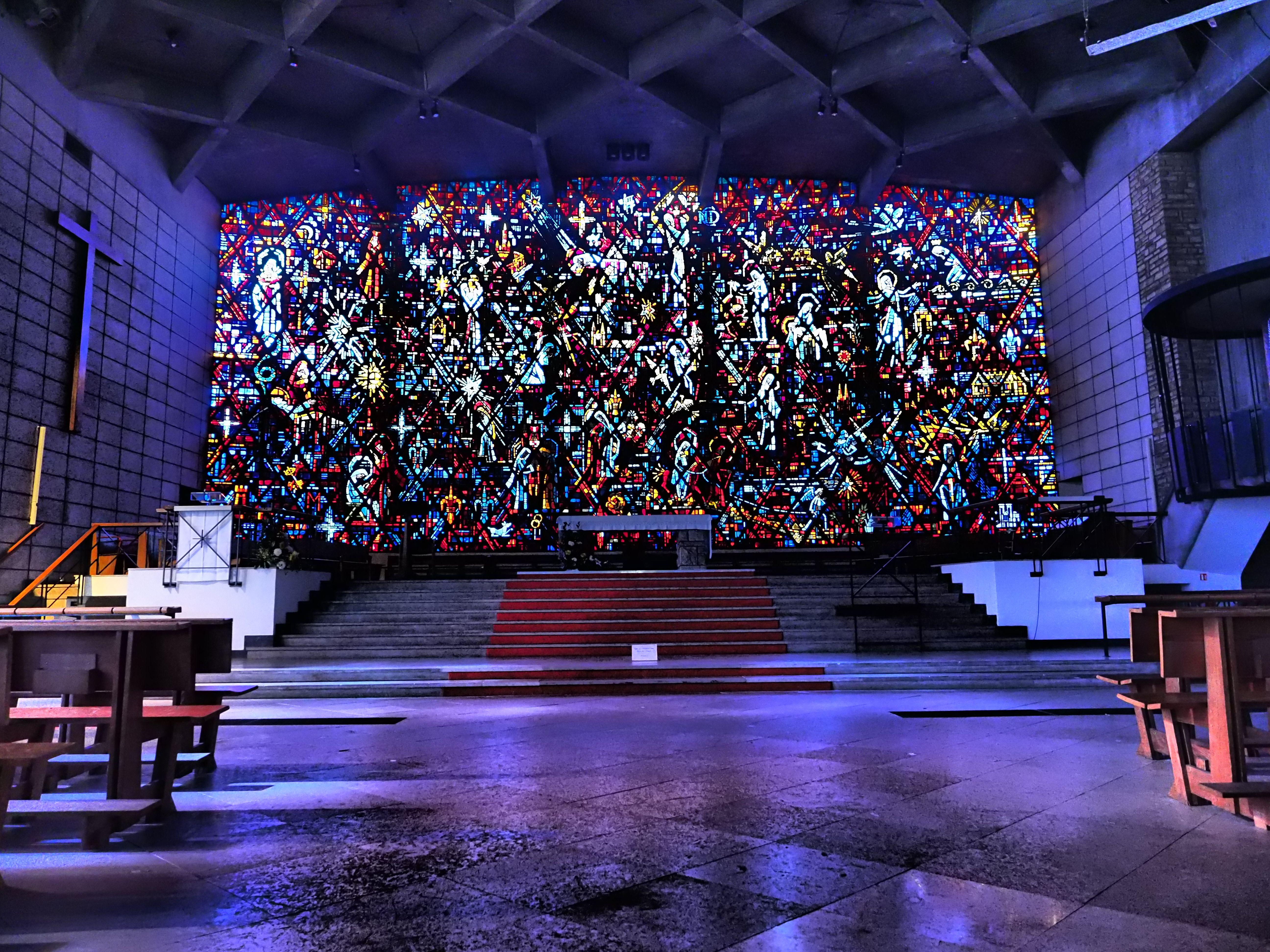 Un bel espace de style moderne en béton. Non chauffé donc très froid en hiver. Les vitraux sont d'un esthétisme modeste.