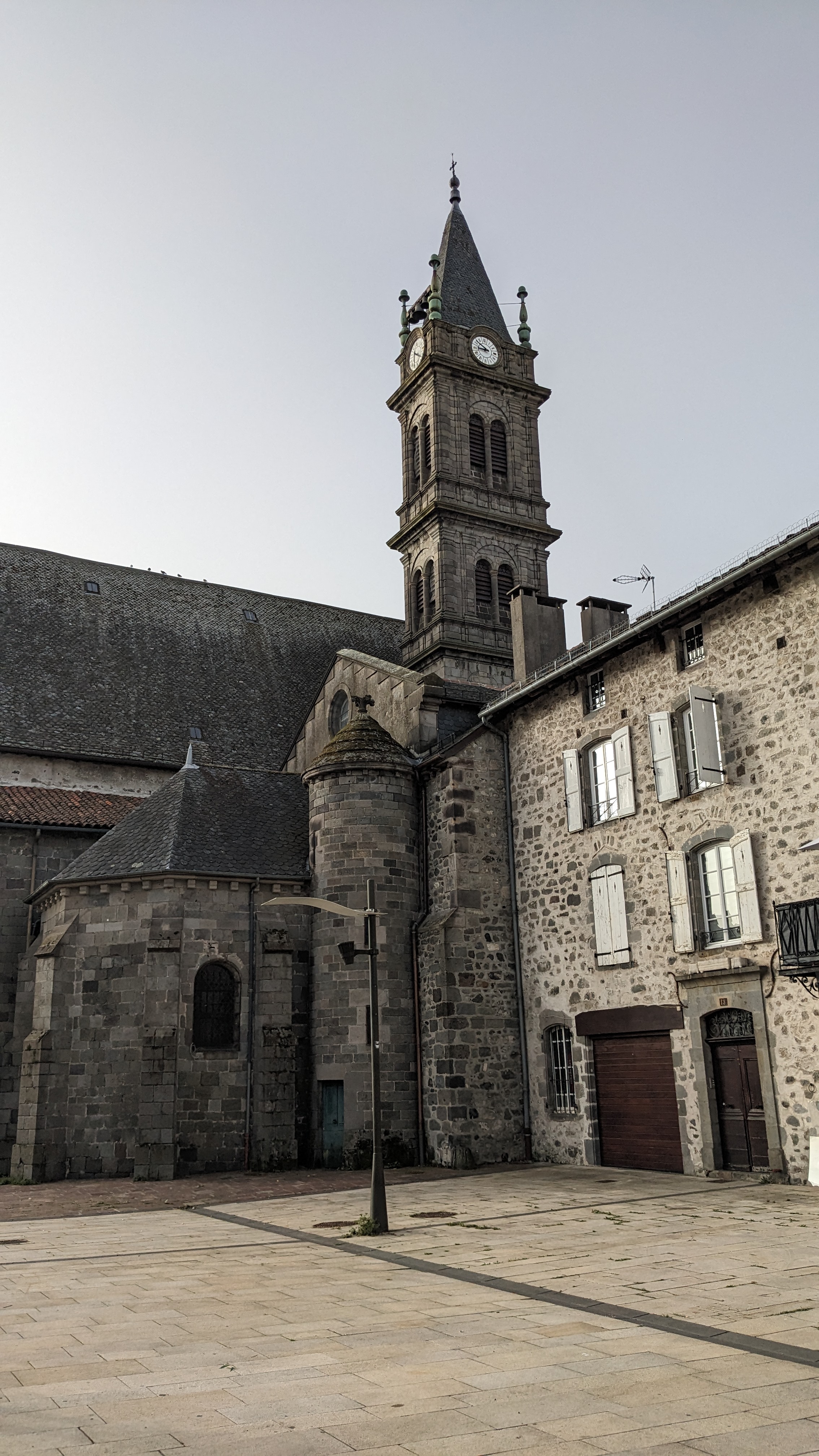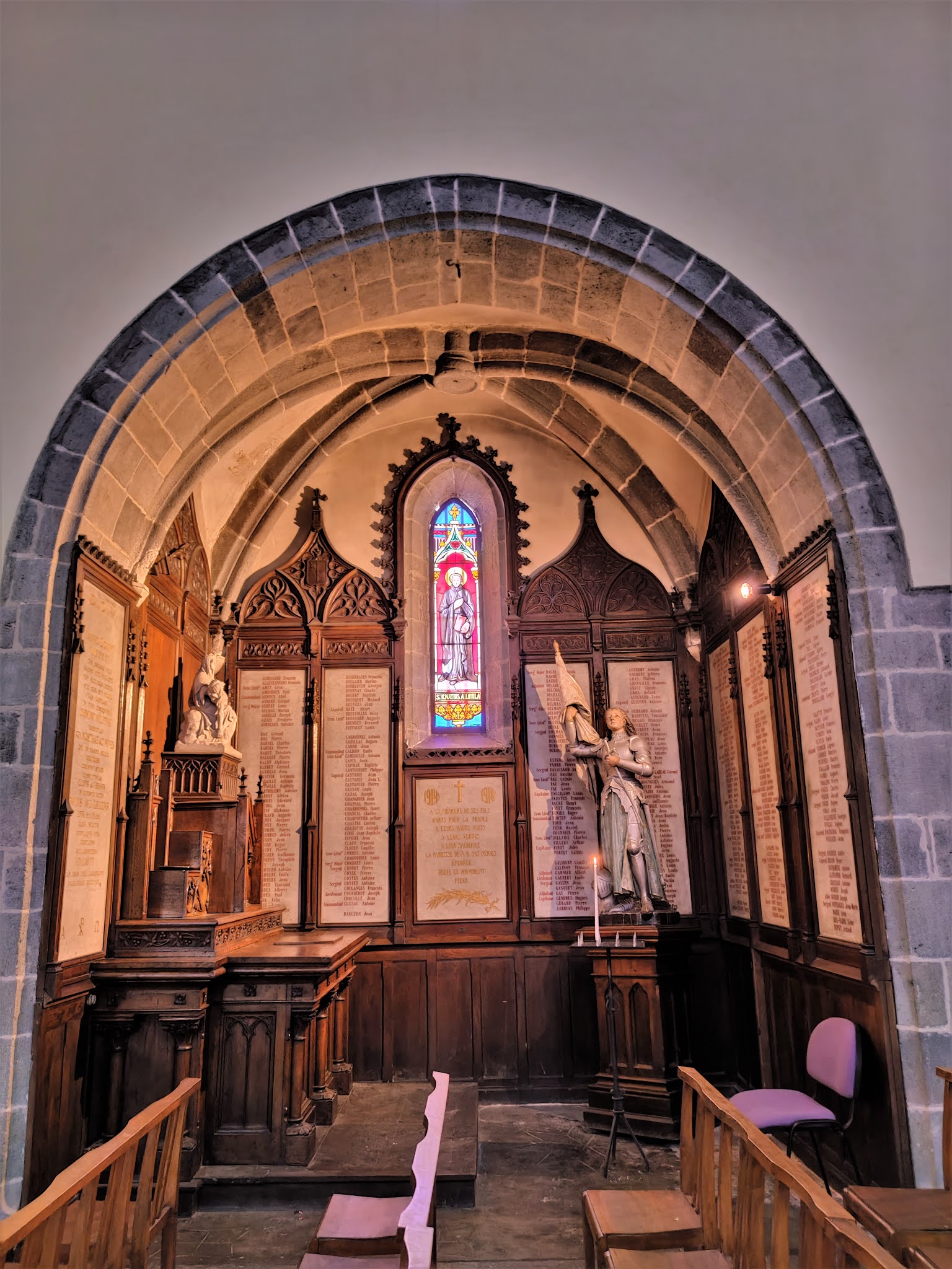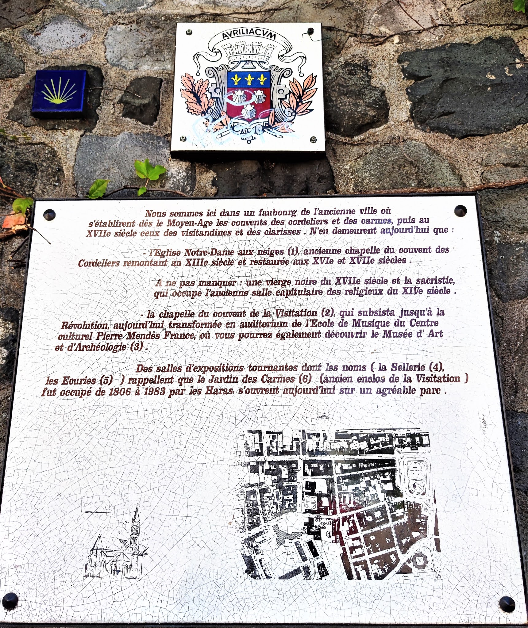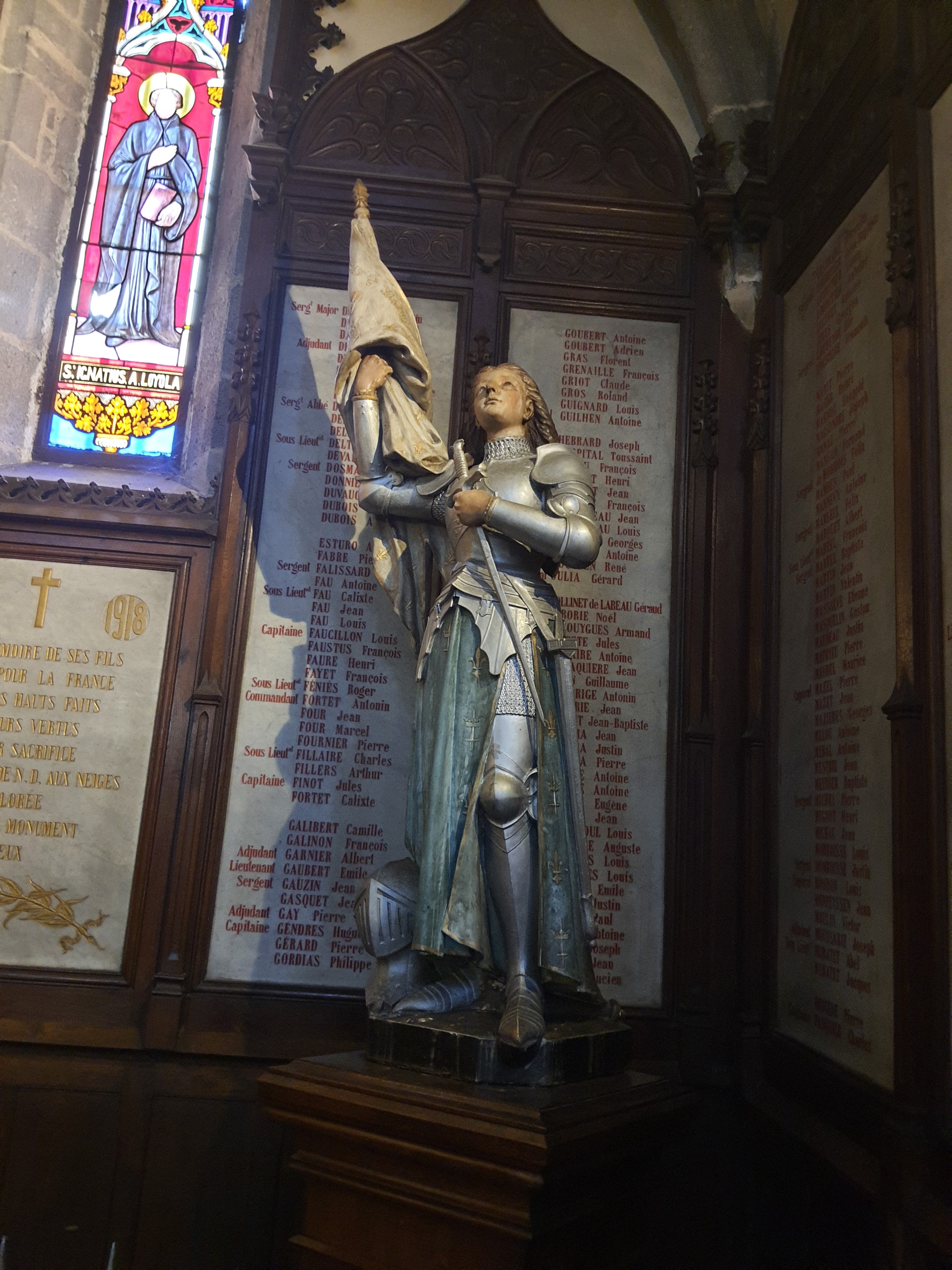 Son nom commémore une victoire improbable et une Vierge Noire ou Noircie est visible dans la salle des Cordeliers. Durant la nuit du 4 au 5 août 1581, les protestants qui avaient envahi la cité furent mis en déroute par les habitants d'Aurillac. Ces derniers bénéficièrent d'un phénomène microclimatique ou d'un miracle, selon les sources, à l'origine du nom de cette église. Une épaisse couche de neige tomba, déconcertant les agresseurs qui ne pouvaient se dissimuler. Eglise à nef unique du début 13ème siècle, inscrite par les M.H. en 1977, elle fut modifiée au 14ème et au 17ème siècles. A ces périodes, elle est agrandie d'un ensemble de chapelles formant comme des collatéraux. Les styles architecturaux propres à chaque période se côtoient dans une belle harmonie. Ancienne chapelle d'un couvent des Cordeliers, cette église fut dévastée par les protestants en 1569 comme les autres bâtiments religieux de la ville. Restaurée au 16ème et 17ème siècles, d'autres campagnes de restaurations suivirent, le clocher fut reconstruit au 19ème siècle et le chevet restauré. La salle des Cordeliers, ouverte du lundi au samedi de 14h30 à 17h mérite à elle-seule une visite. Un monsieur charmant accueille les visiteurs, ses commentaires enrichissent grandement cette découverte. Cette pièce du 14ème siècle se présente comme une salle du trésor, ou caverne d'Ali Baba. De toutes les richesses présentées, la Vierge Noire est la plus intrigante. La statue d'Aurillac est donnée comme la meilleure copie de la Vierge de Puy en Velay d'après l'eau-forte de Veyrenc. J'ai découvert à l'occasion de cette visite, que ces Vierges noires, celles de Aurillac, Rocamadour, ou Puy en Velay, par exemple, étaient à l'origine, en bois polychrome et/ou recouvertes de pierres et de métal. Elles furent furent noircies pour évoquer l'image des vierges brûlées, pendant les guerres de religions ou la révolution française. Détruire les images pour se débarrasser des superstitions et des traditions, fut une pratique commune aux réformés et aux républicains ; les deux s'inspirèrent de l'inquisition et de ses bûchers purificateurs.