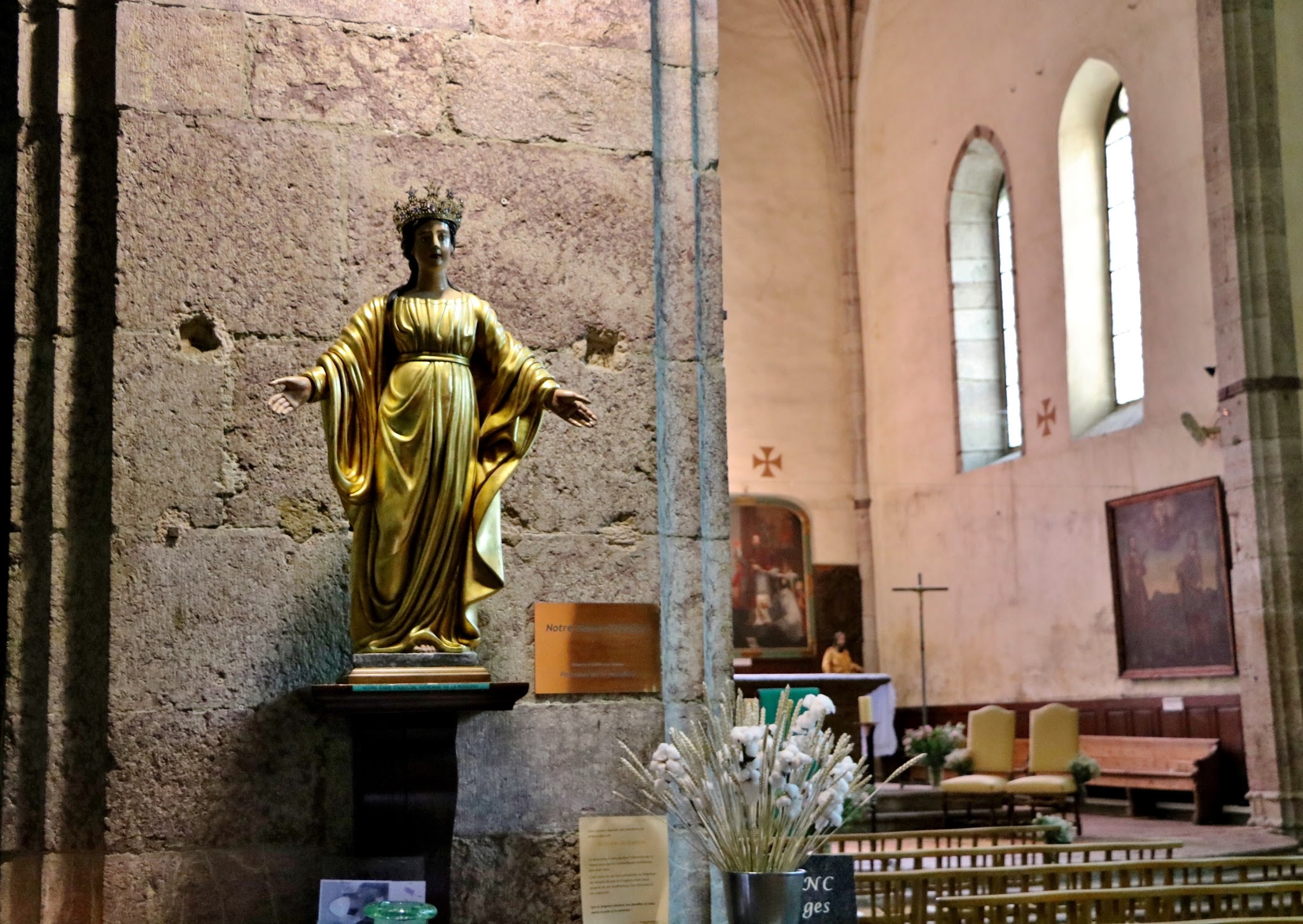 Une église sobre, en marbre rose, lumineuse. Dédiée à Notre Dame d'Aquilon. On s'y sent en paix...