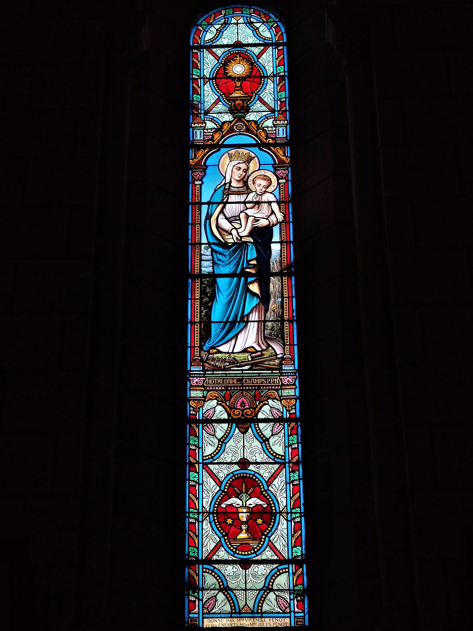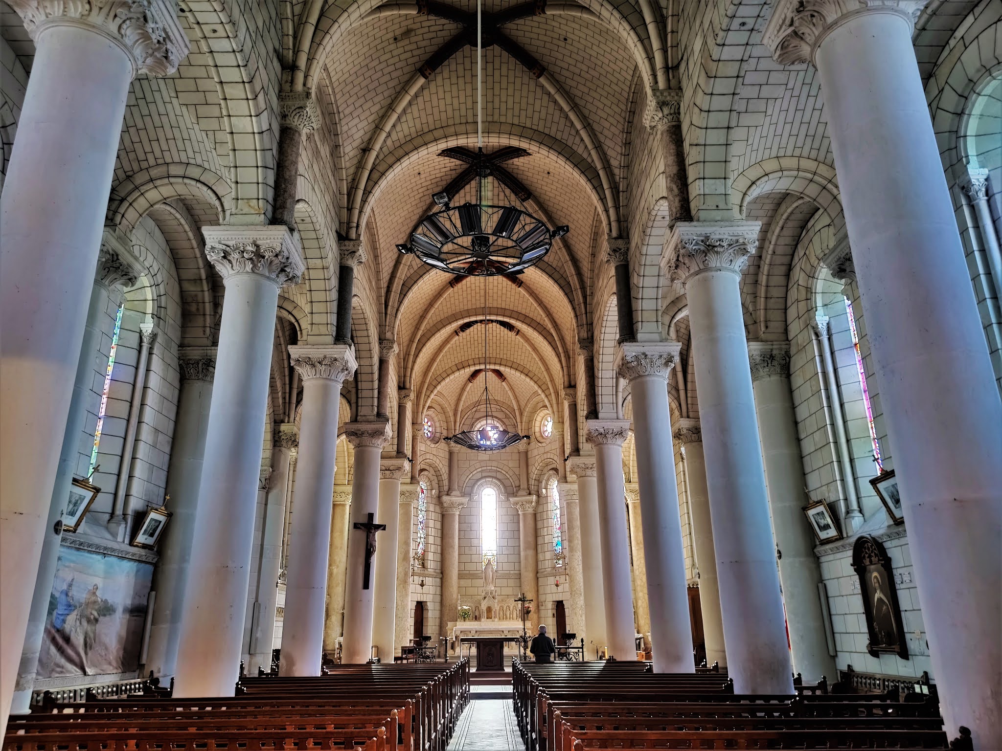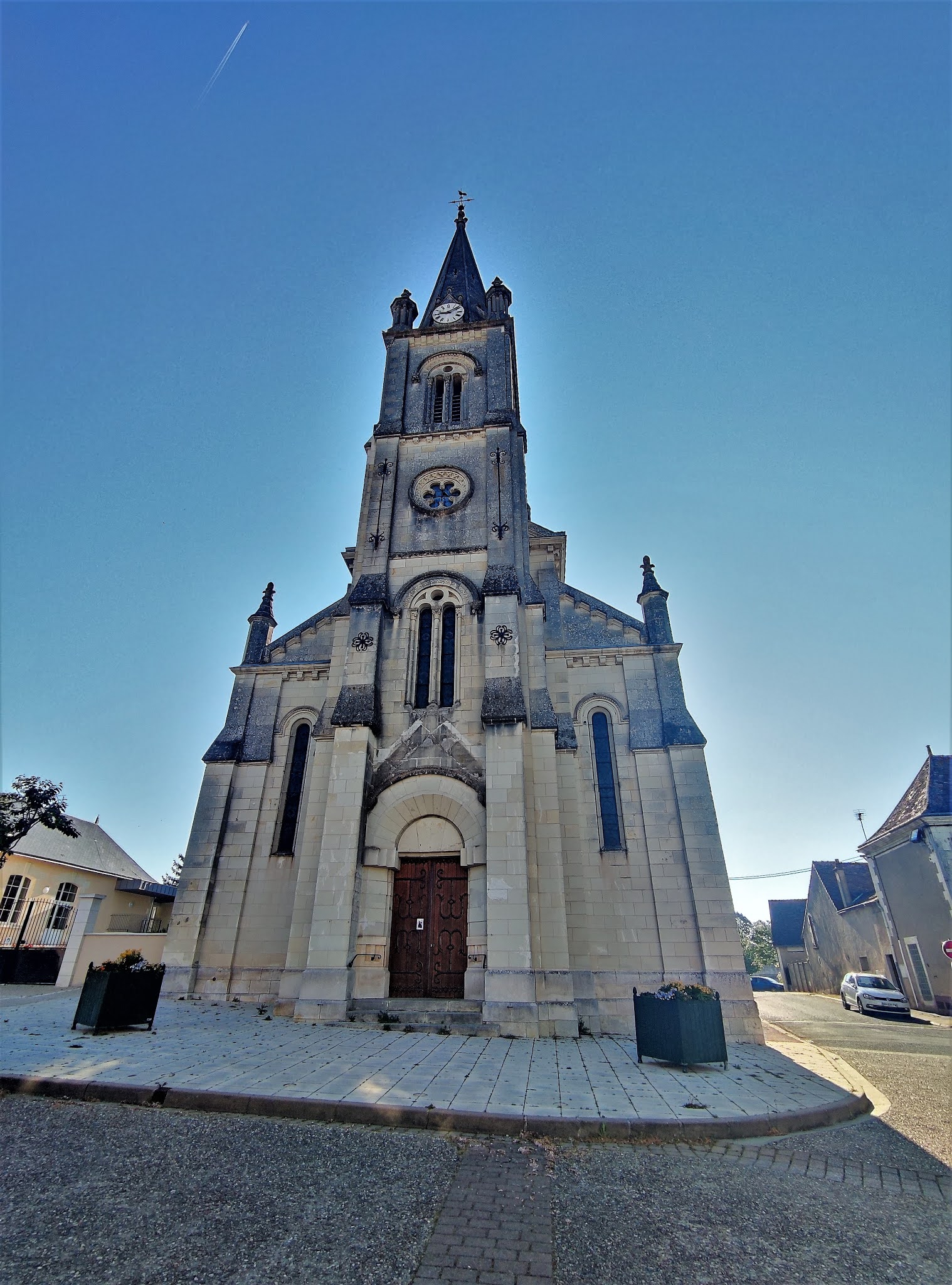 A l'emplacement de cette église du 19ème siècle, se sont dressés des monuments cultuels depuis presque 2000 ans. Au cours des travaux de fondation de cette église Notre-Dame, des découvertes archéologiques ont révélé l'existence d'un ensemble de constructions dès le 3ème siècle de notre ère, un temple, un autel Gallo-Romain, pour le moins. D'autres éléments découverts ont suggéré les fondations de l'église mérovingienne, fondée par saint Eustoche ( (442-458/459), 5ème évêque de Tours, au 5ème siècle. Une nouvelle église fut construite au 12ème siècle, elle sera remaniée au 15ème siècle. En 1893, les plans d'un nouvel édifice sont réalisés dans l'objectif de remplacer l'église médiévale, petite et vieillissante. En 1894, le conseil municipal donne son accord pour la démolition, les travaux commencent en 1895. Les découvertes archéologiques, les fouilles, mais aussi les vices cachés de construction et de malfaçon vont retarder le chantier. Un procès contre l'architecte et l'entrepreneur aura lieu. Le sort s'acharna, une tempête détruisit le clocher en construction en 1897, après reprise du chantier. Enfin, en 1903, l'église est consacrée, édifice magnifique, la nef à trois vaisseau et le chœur sont dotés de vitraux remarquables. Quelques réemplois de l'église du 12ème siècle et un bas-relief du 15ème siècle apportent une touche historique. Belle découverte à tous de cette église ouverte et accueillante, en faire le tour, permet de découvrir l'ancien presbytère et le musée archéologique minerve. Ce dernier propose de découvrir l'histoire bimillénaire des lieux.