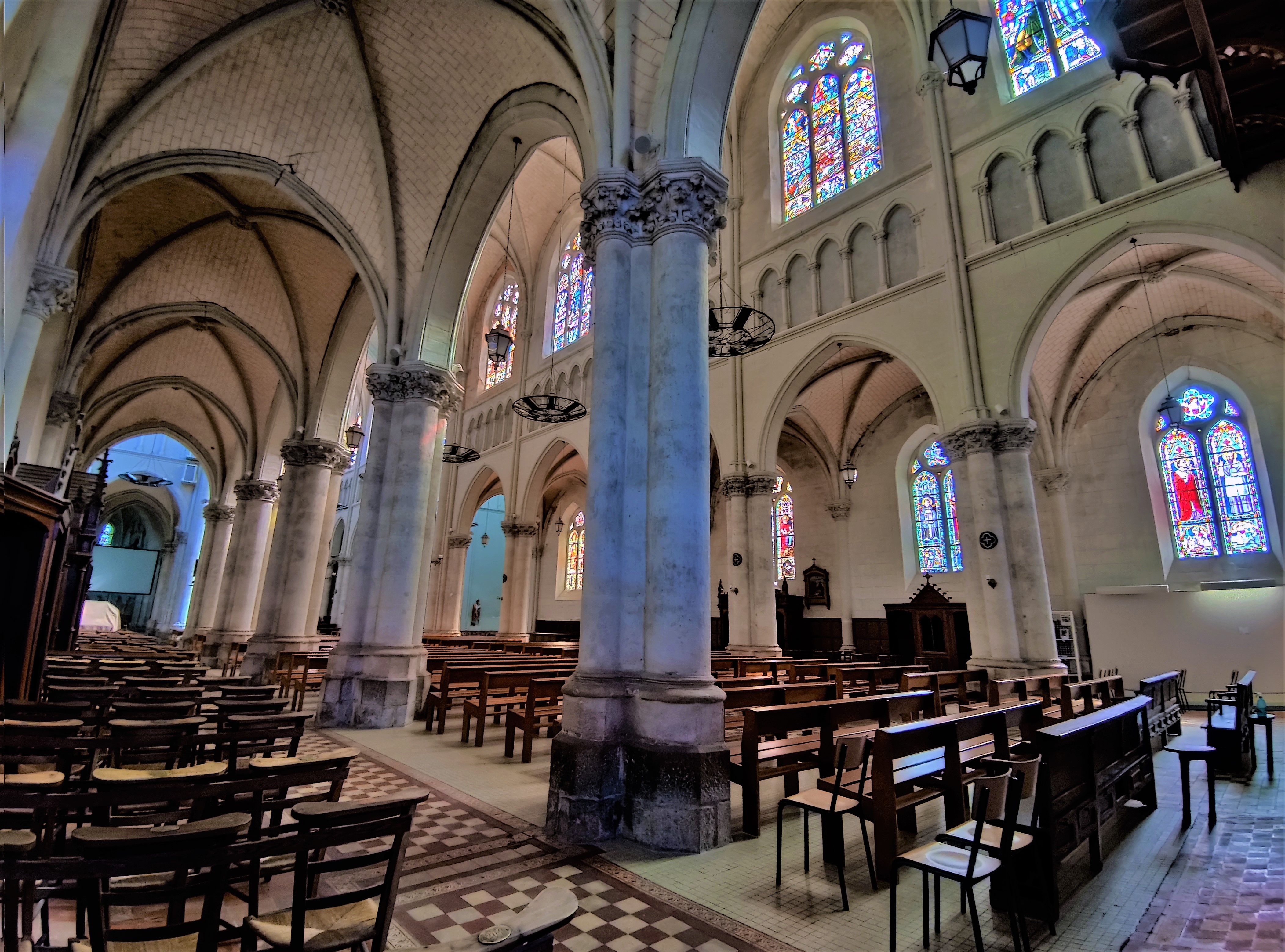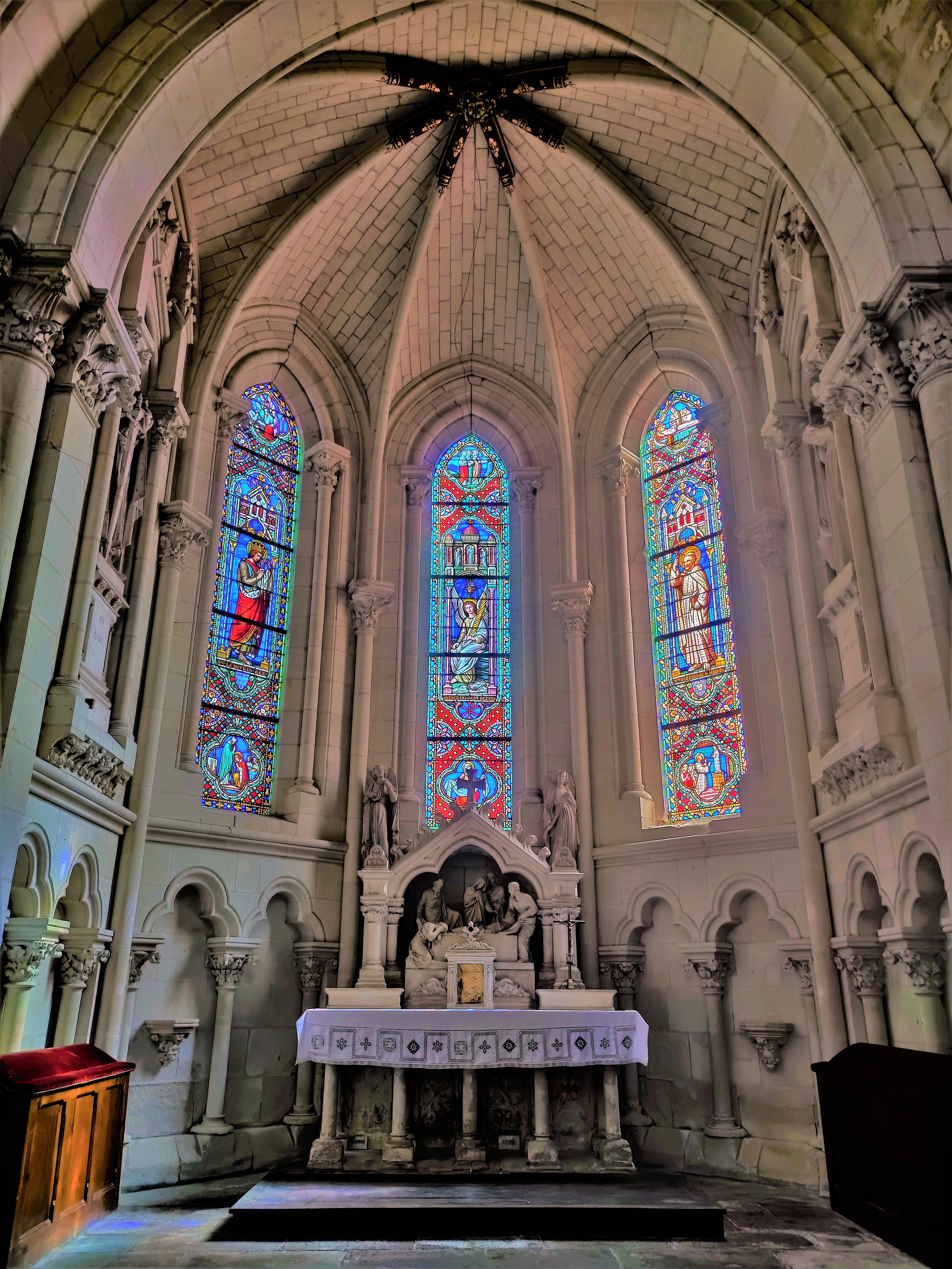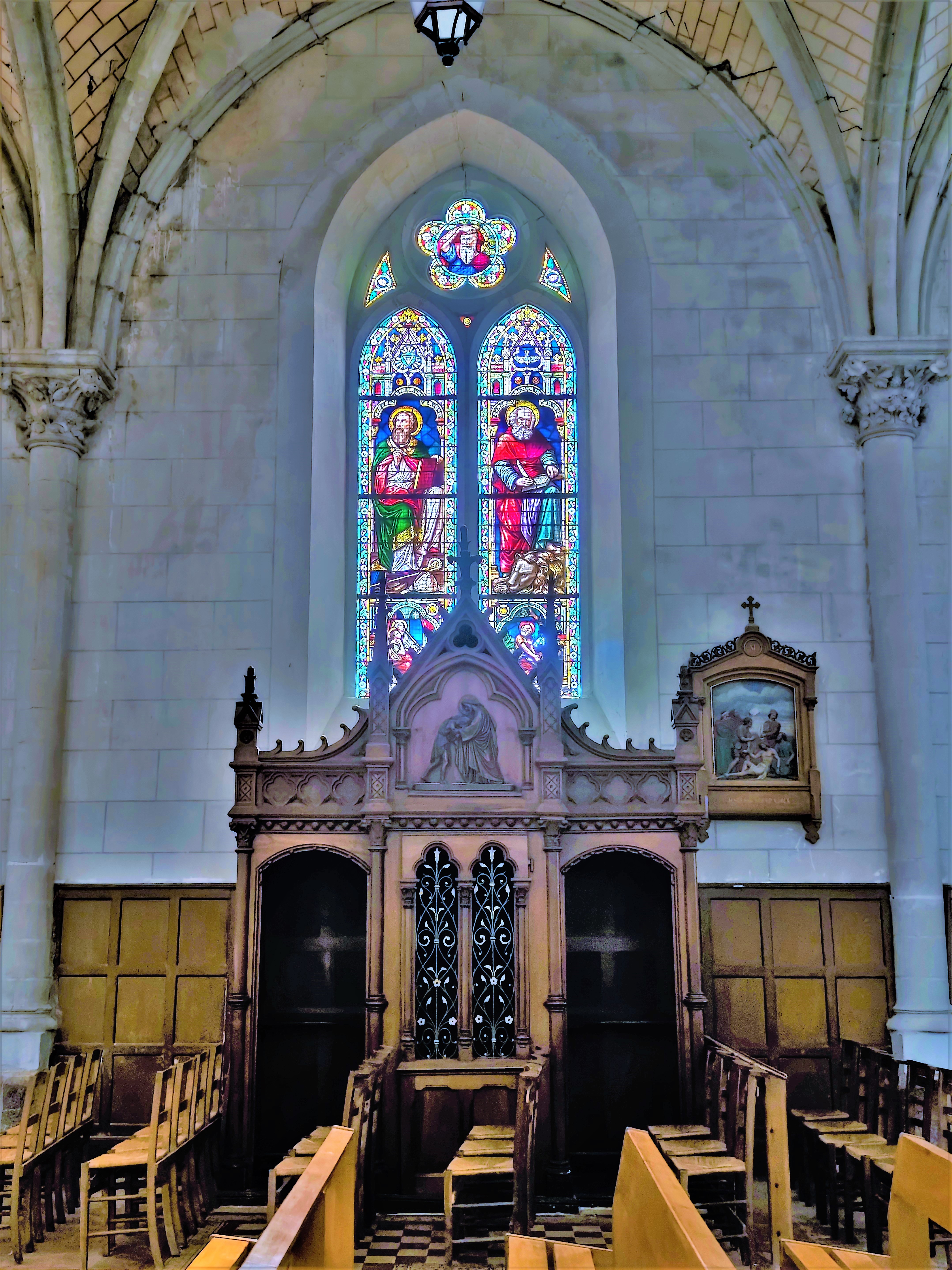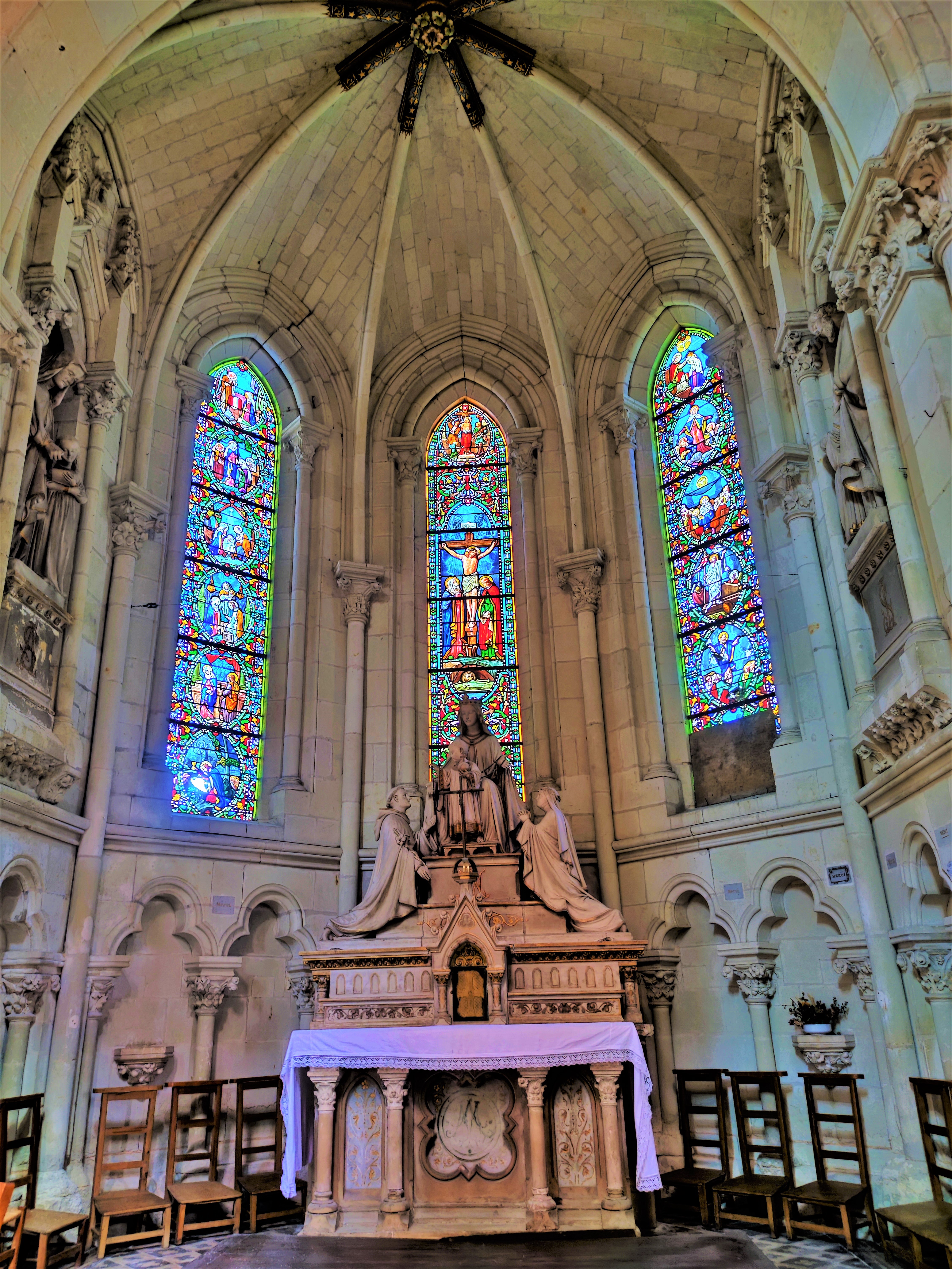 Magnifique édifice à découvrir, la chapelle, située à 50m mérite aussi une visite. A proximité du Centre Pastoral et de la chapelle Mont de Vie, s'élève une église néo gothique du 19ème, protégée par les Monuments Historiques. La façade témoigne d'une ambition architecturale assumée et annonce une nef à trois vaisseaux. Quatre niveaux dans l'élévation du clocher-porche, digne d'une cathédrale, une travée sous clocher qui fait narthex, puis une nef à vaisseau central élevé. C'est donc deux hauteurs de verrières parfaitement spectaculaires que l'on peut admirer.