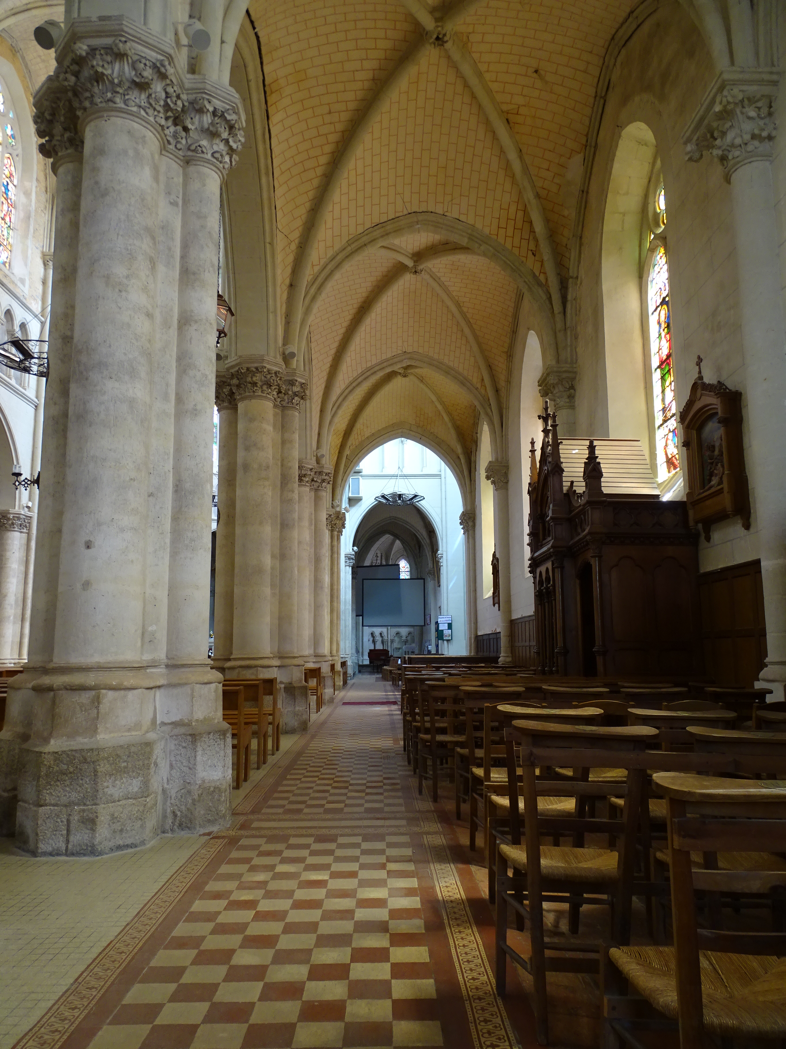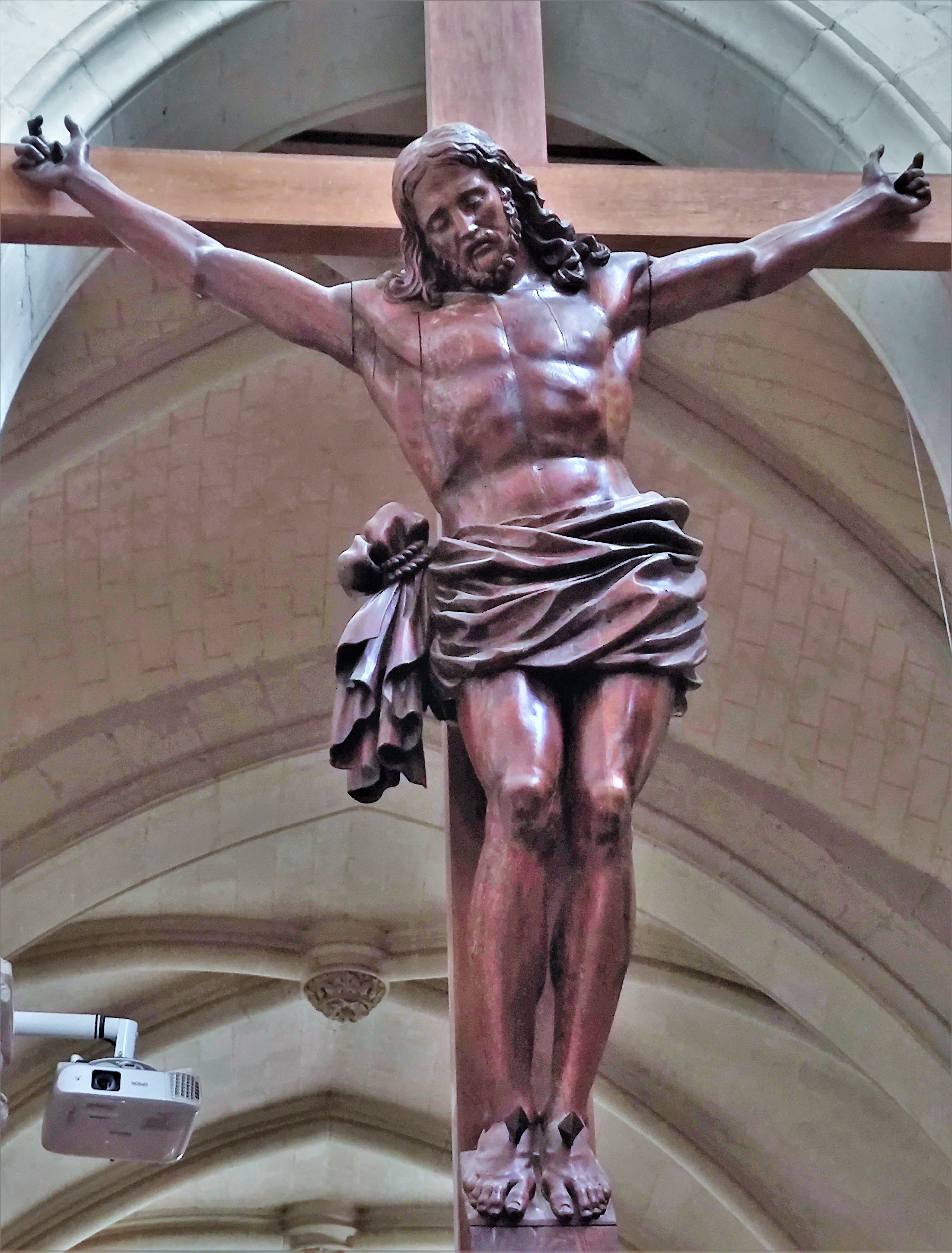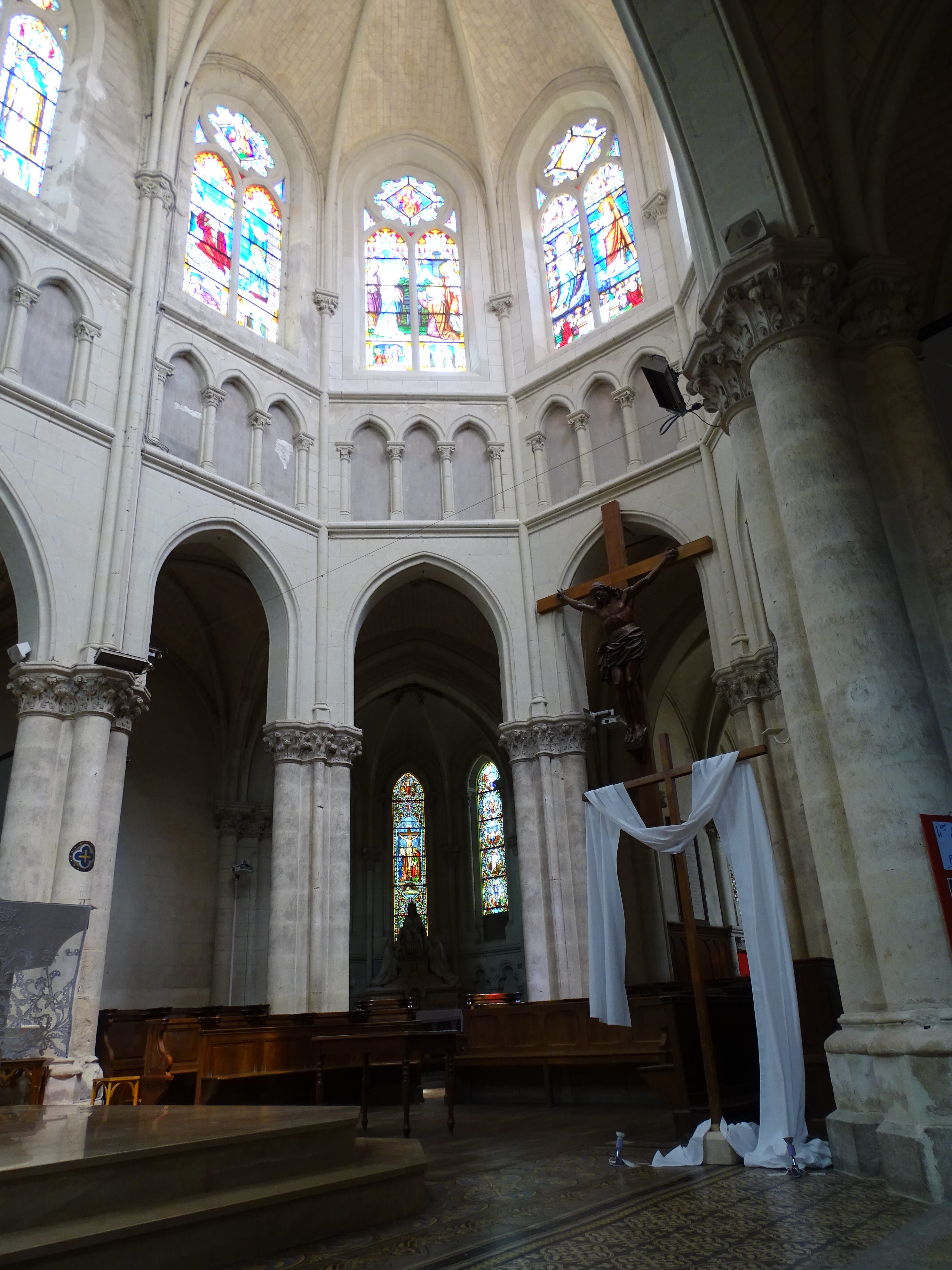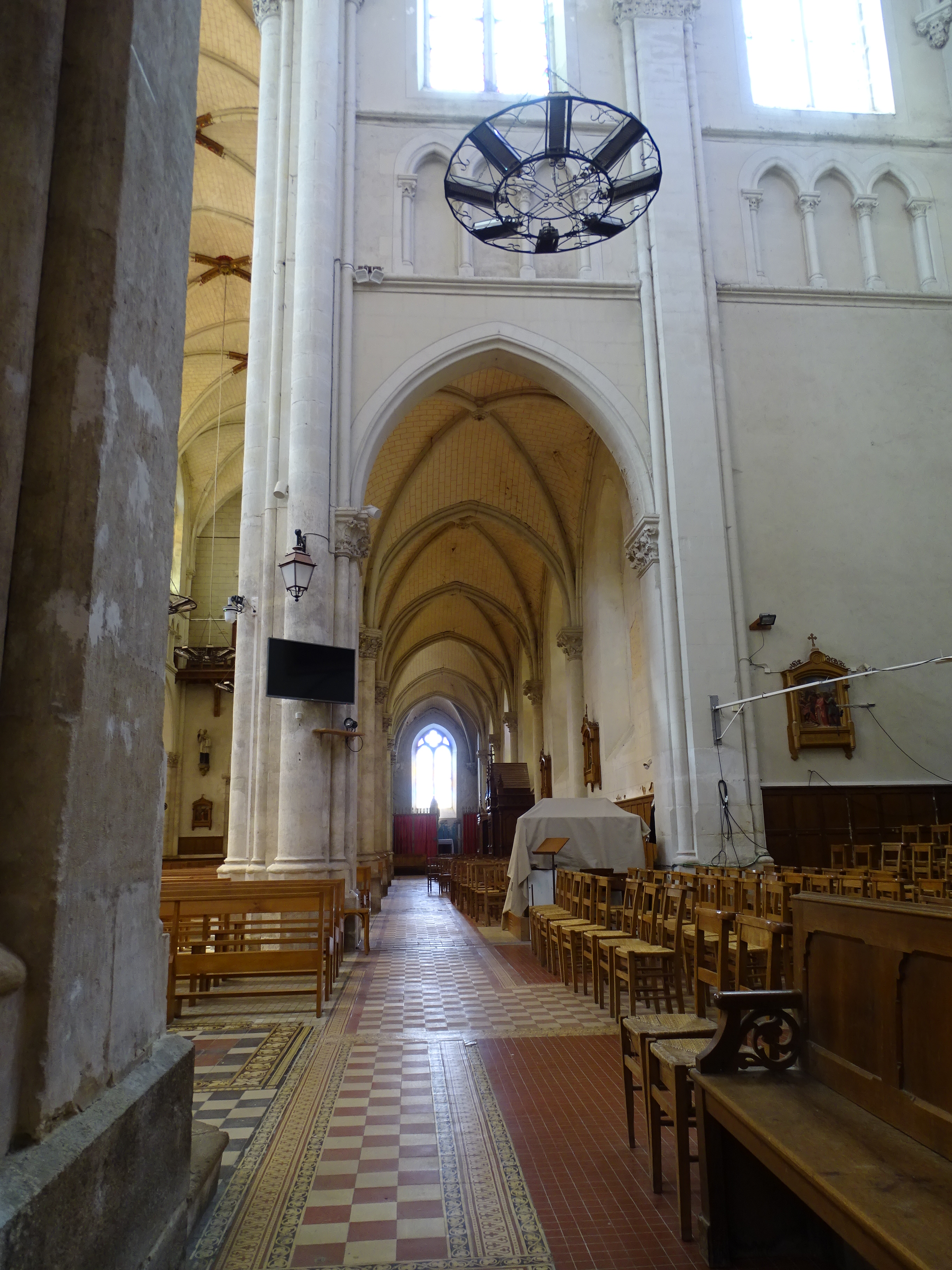Vraiment une très belle église, grande, spacieuse, aux nombreuses verrières à deux rangées, toutes représentant des scènes ou des personnages de saints. A remarquer aussi le beau Christ du chœur, dont l'histoire rapporte que voué à la destruction en 1831 par décret municipal, il fut caché à Angers puis acquit par le curé de Beaupréau qui le plaça à l'arrière de la grotte de Lourdes qui se trouve à l'extérieur de l'église (il surplombait alors cette grotte); mais abattu ensuite par une tempête en 1951, il fut enfin placé dans l'église en 1959.