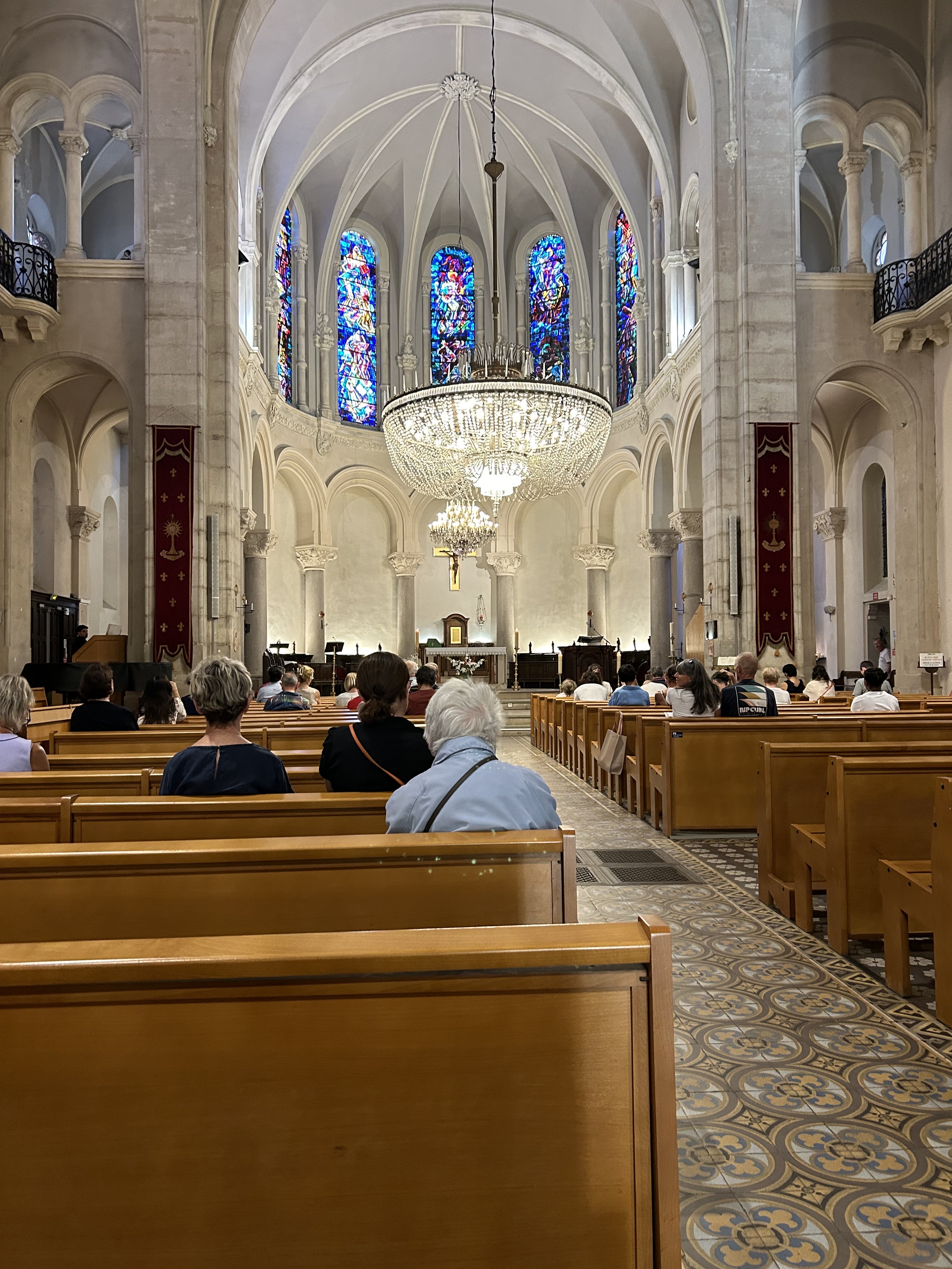 L'église est très belle, j'ai été très fasciné par les vitraux et les lustres.