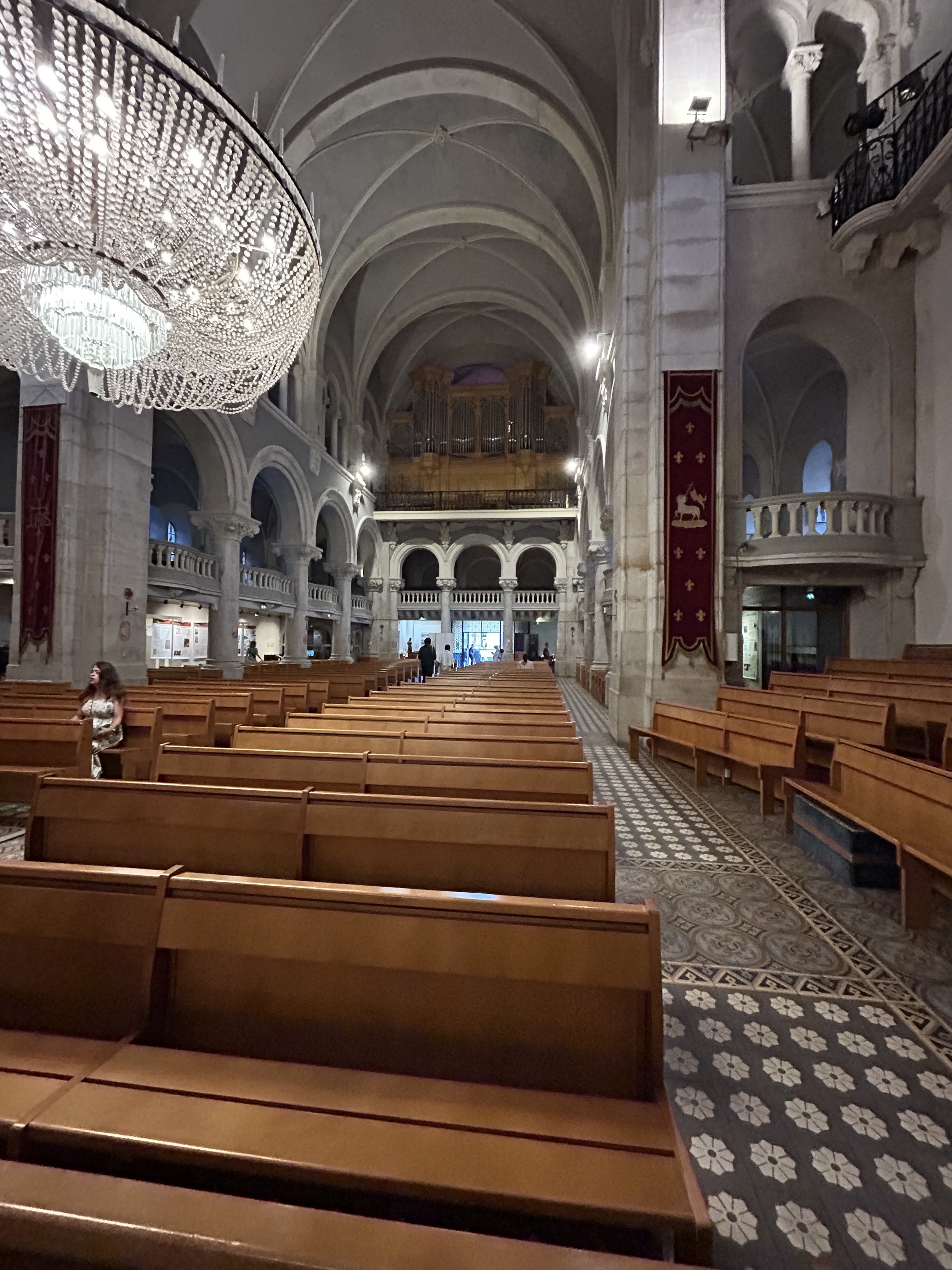 Igreja muito bonita, lustres, bastante espaçosa, linda Igreja. Église Notre Dame de Bon Voyage .