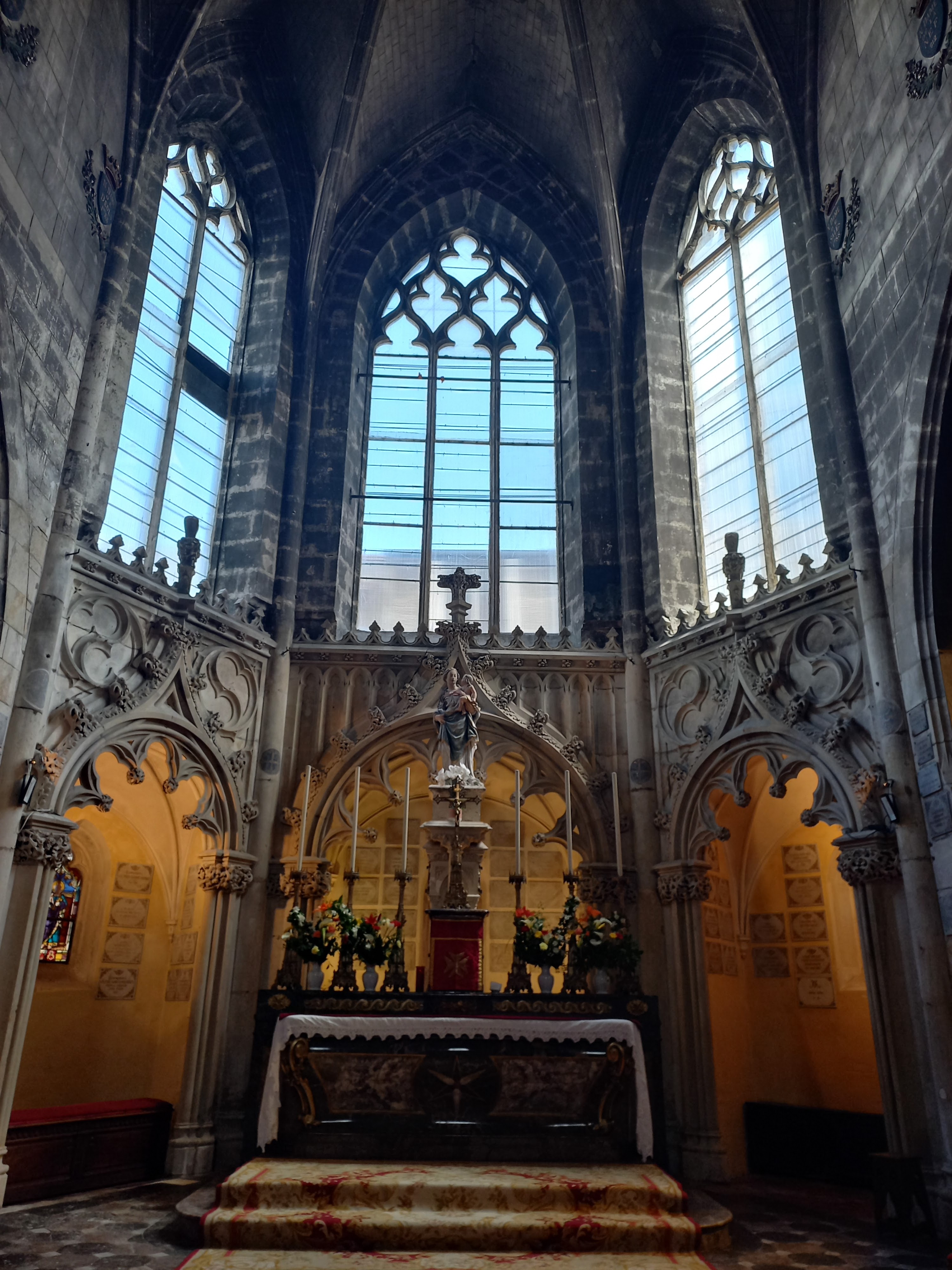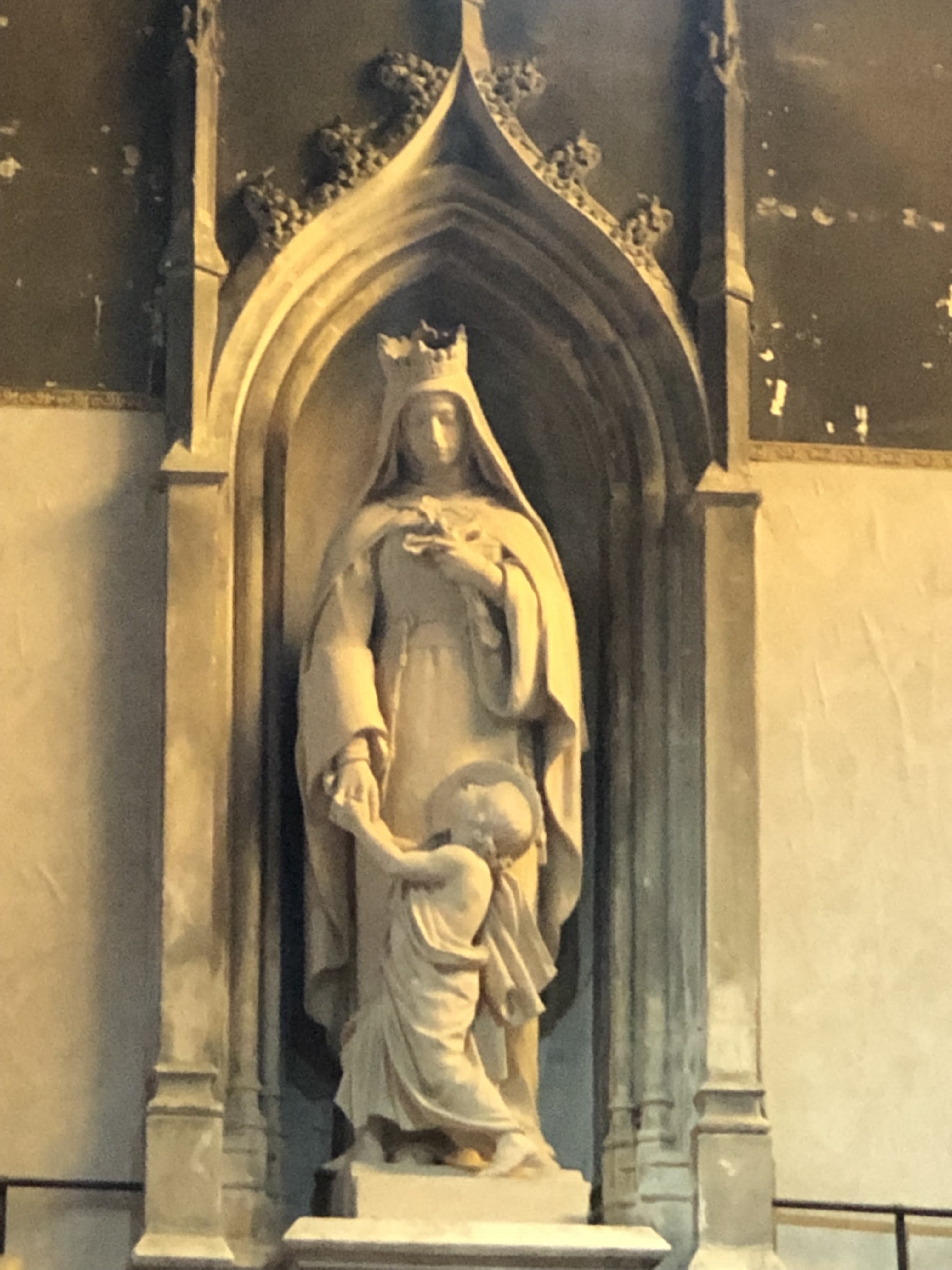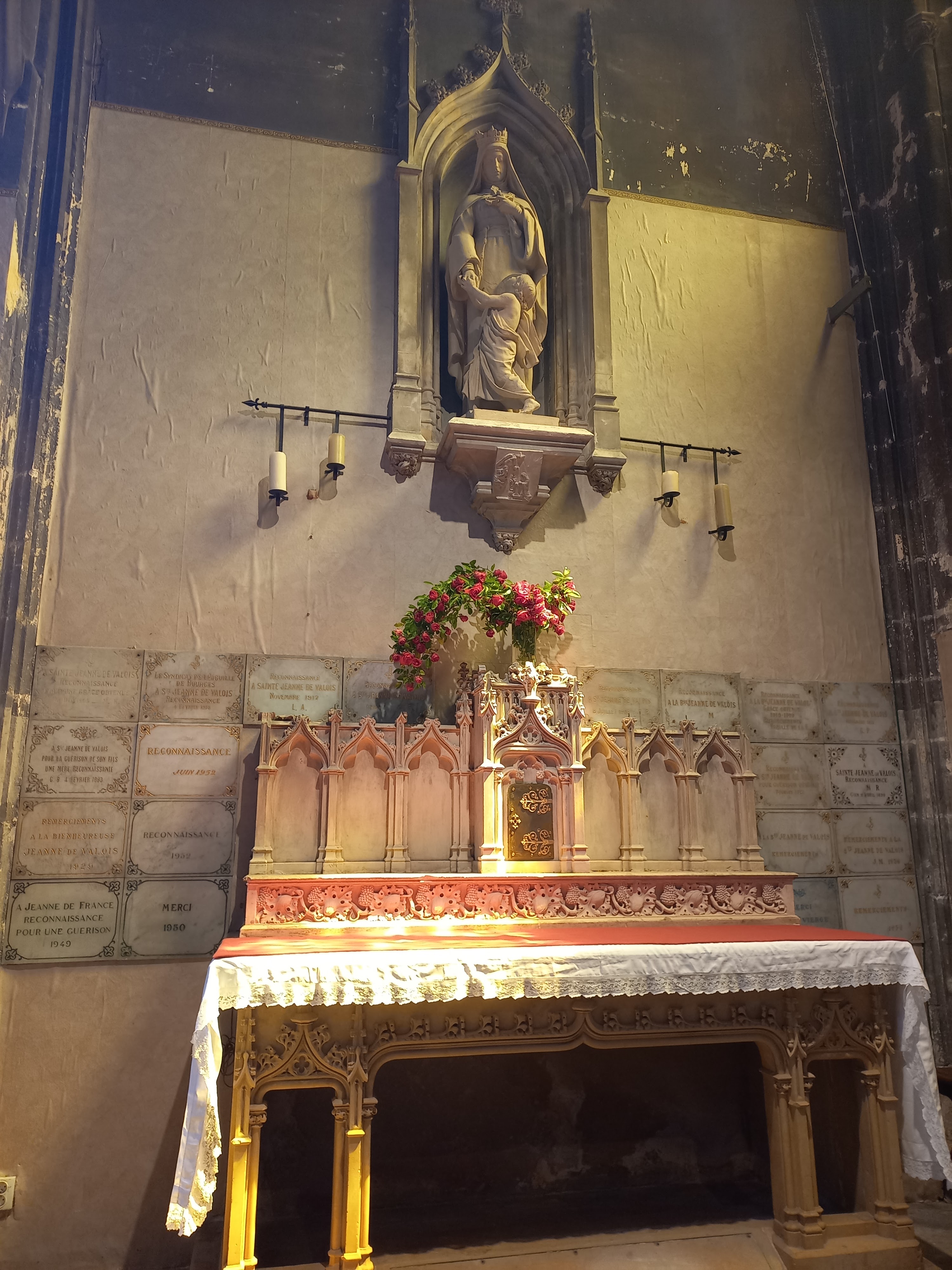 Une Dame en souffrance (les filets et les renforts en chêne massif en sont témoins), mais l'une des plus spirituelles aussi de ce centre ville si mystique. Sa situation géographique (voir cartes historiques Archives Dép.) en font un lieu hautement apaisant par axe E/O.