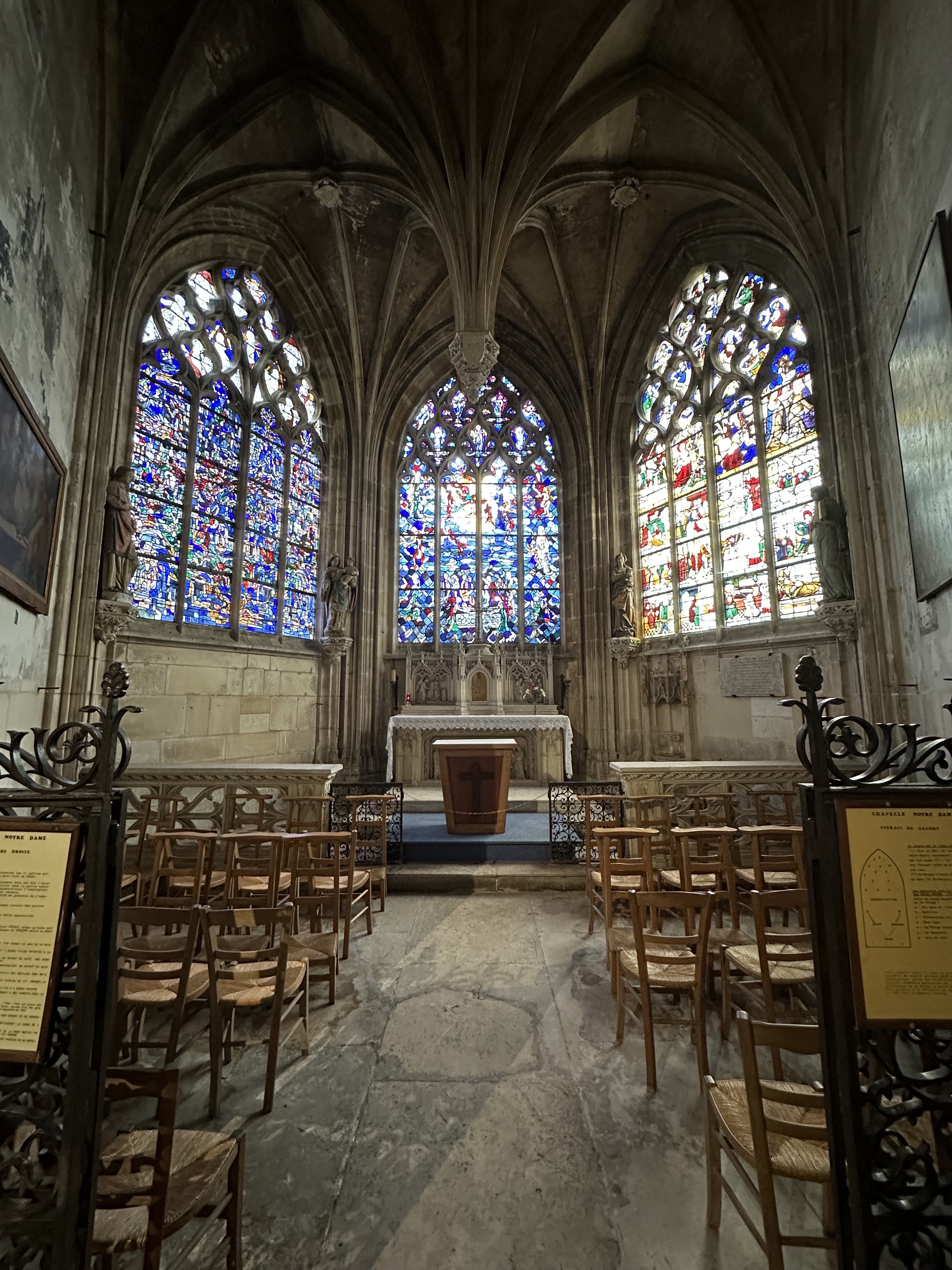 Henri IV a dit de cette église qi'elle était la plus belle chapelle de son royaume, sans exagérer la dentelle gothique est à son apogée et les vitraux si bien chargés d'autant d'histoire lumineuse.