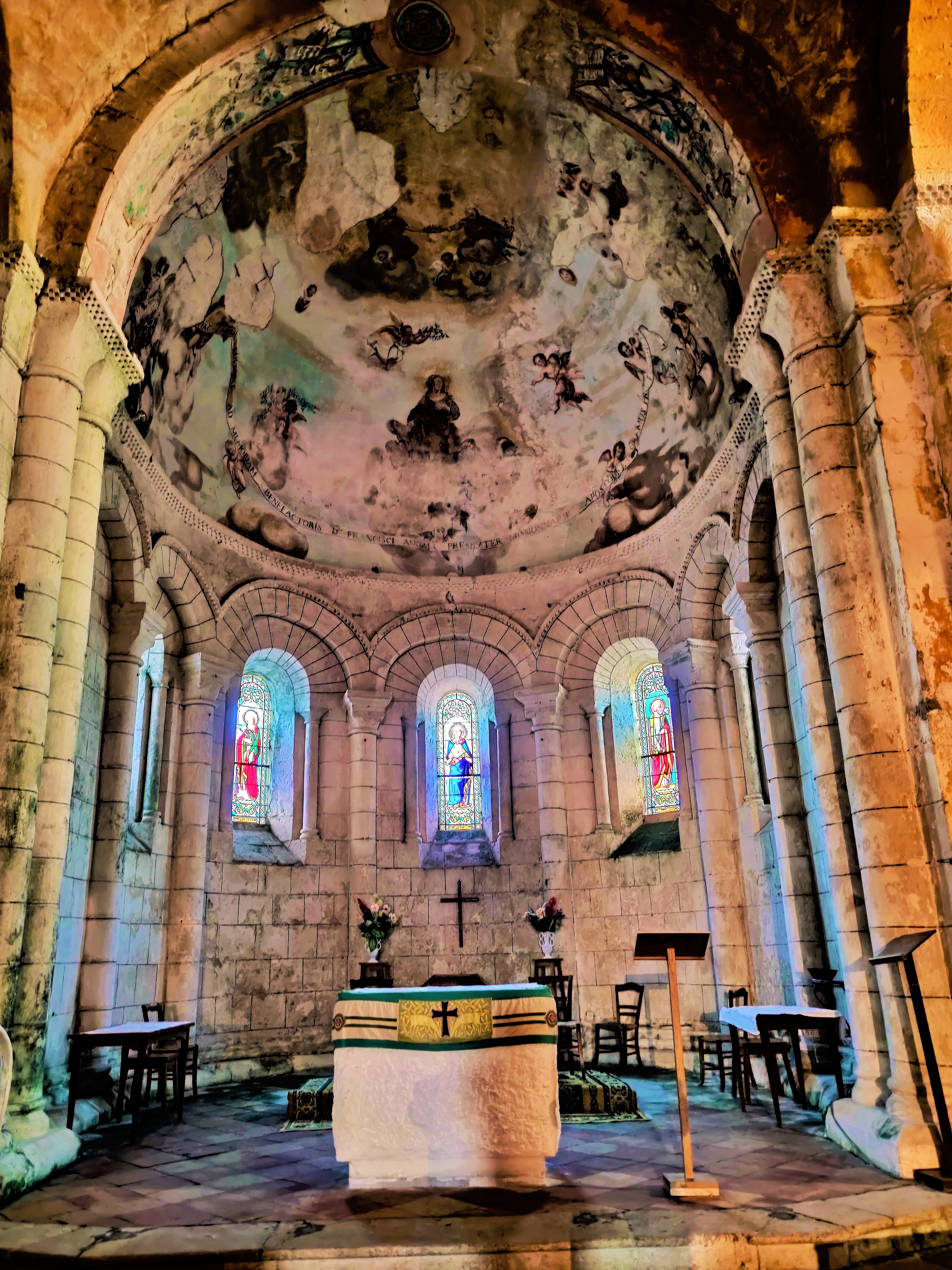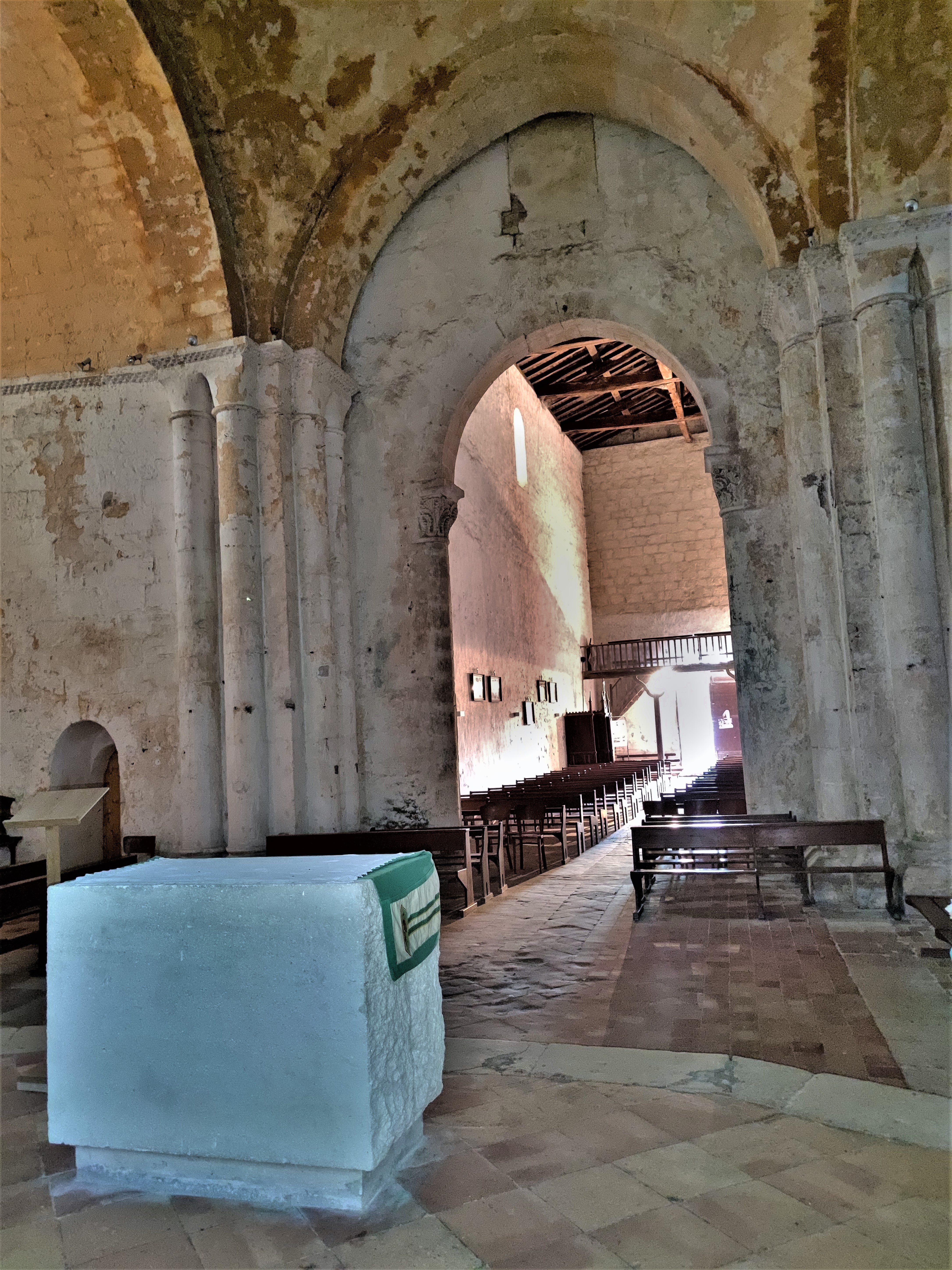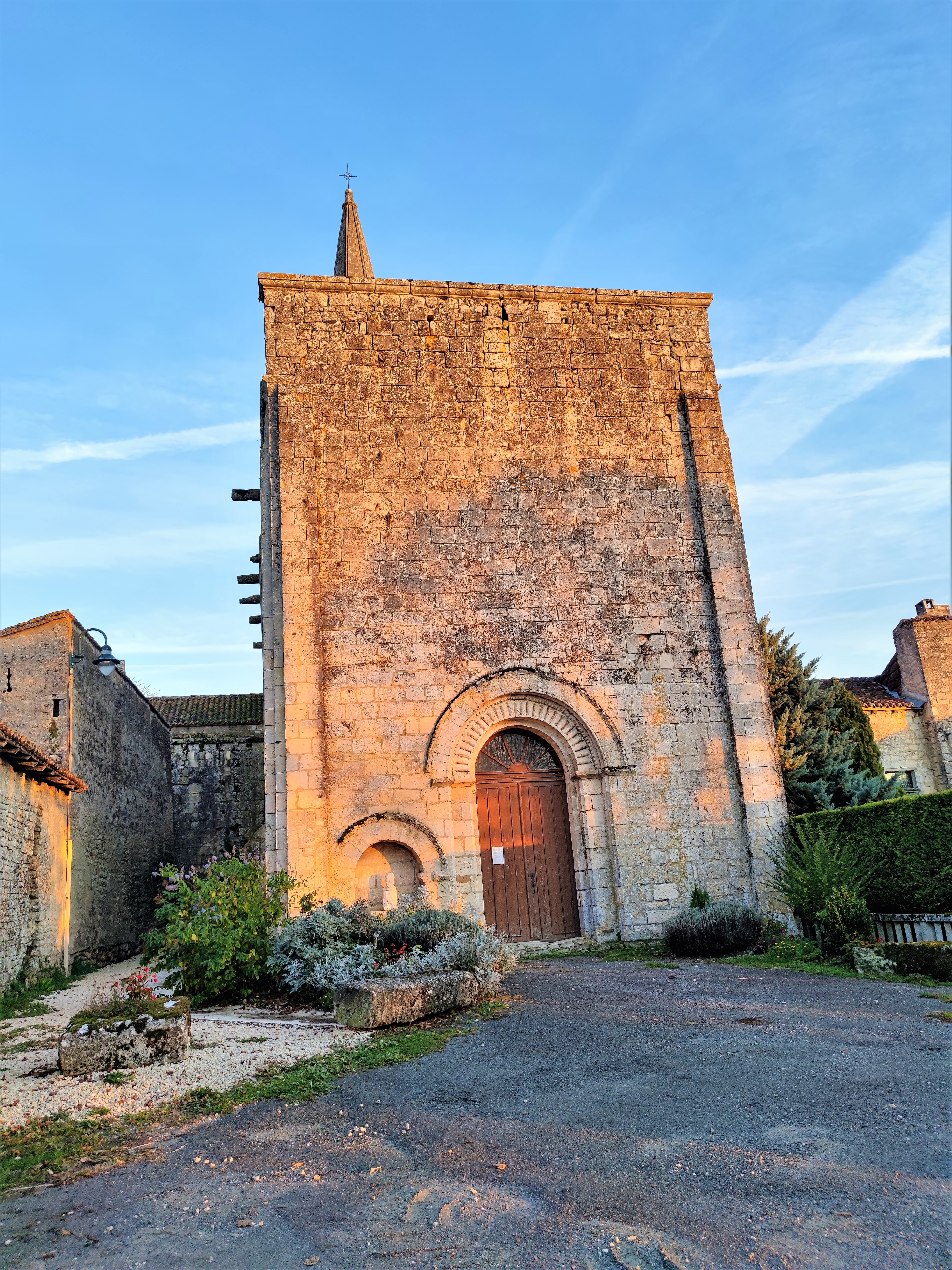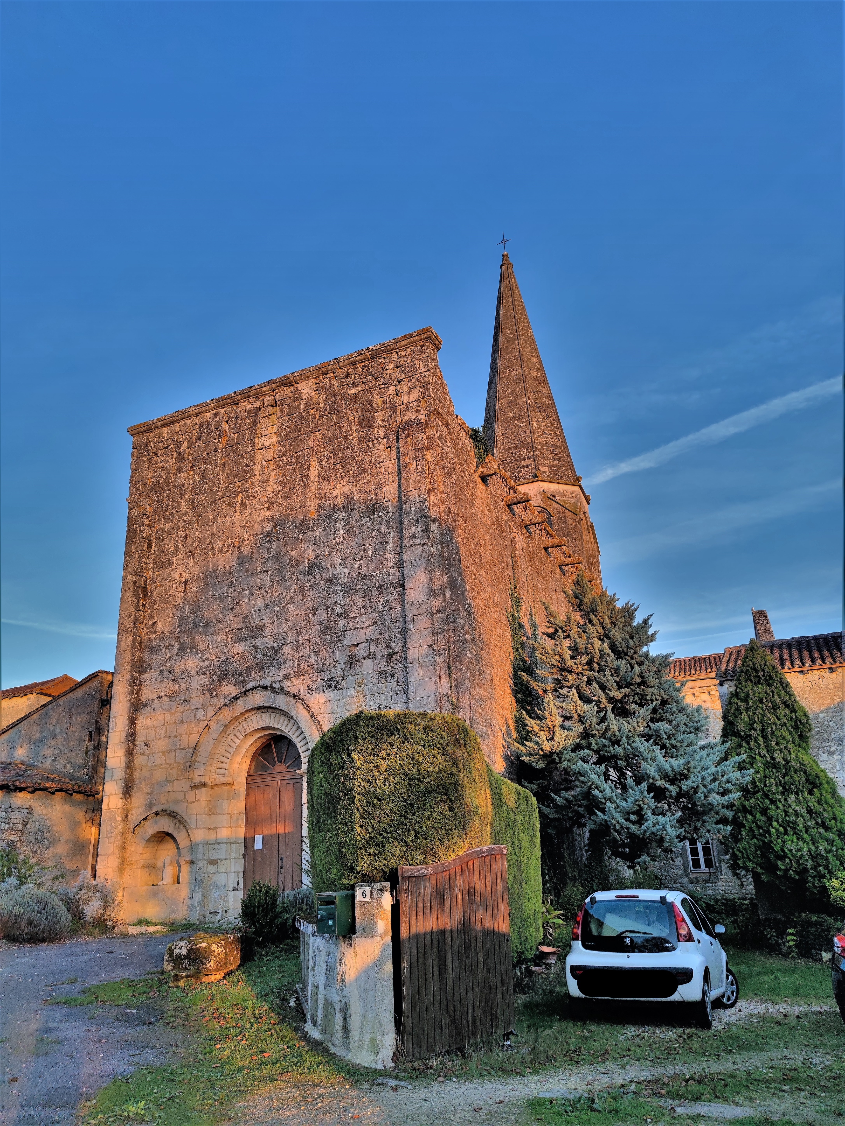 Une des nombreuses églises romanes des Charentes, un plaisir sans cesse renouvelé. Une église du 11ème et 12ème siècles, typique de l'art roman, le clocher, foudroyé au 19ème siècle, fut reconstruit en respectant les caractéristiques romanes. Le chevet est superbe, il est visible depuis le jardin de curé. A l'intérieur, des restes de décors peints subsistent, le plan est en croix latine avec abside et absidioles dans les croisillons.