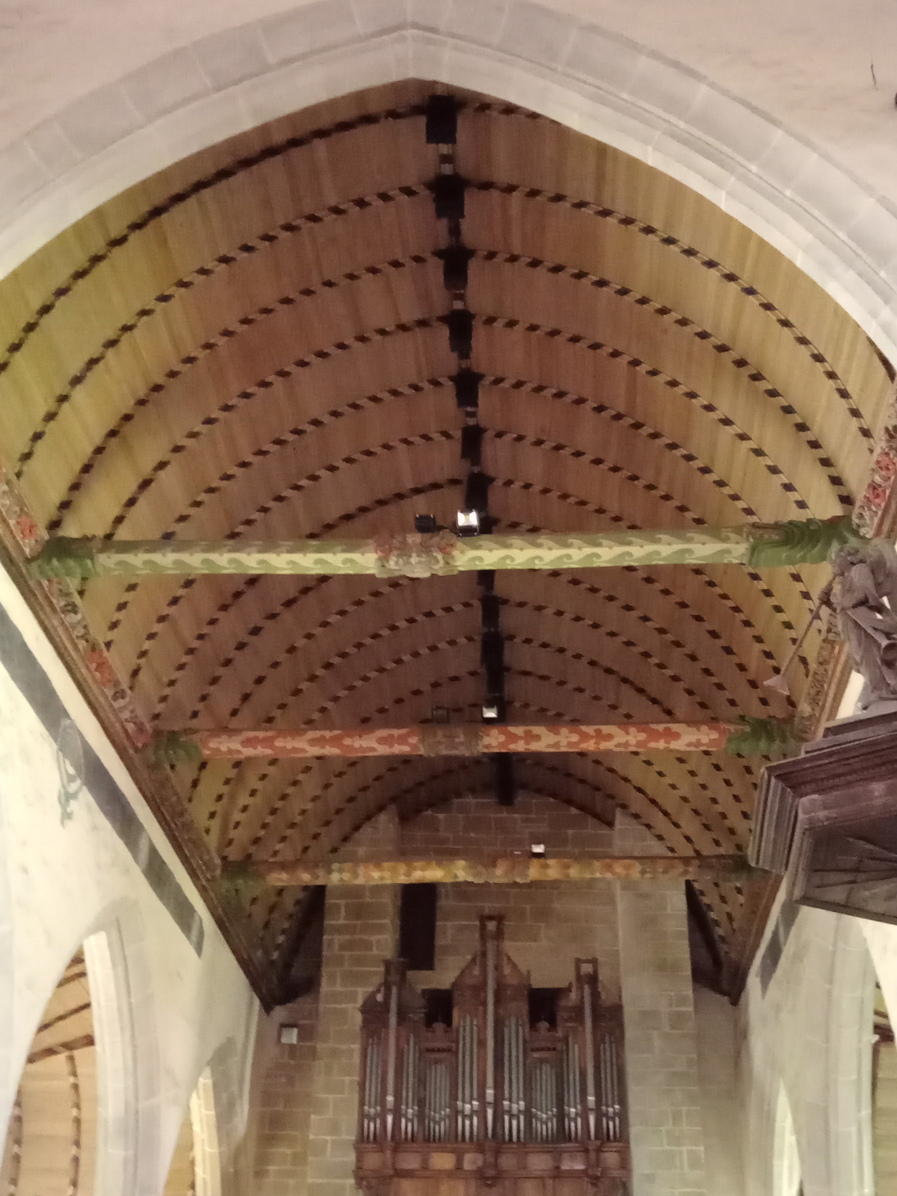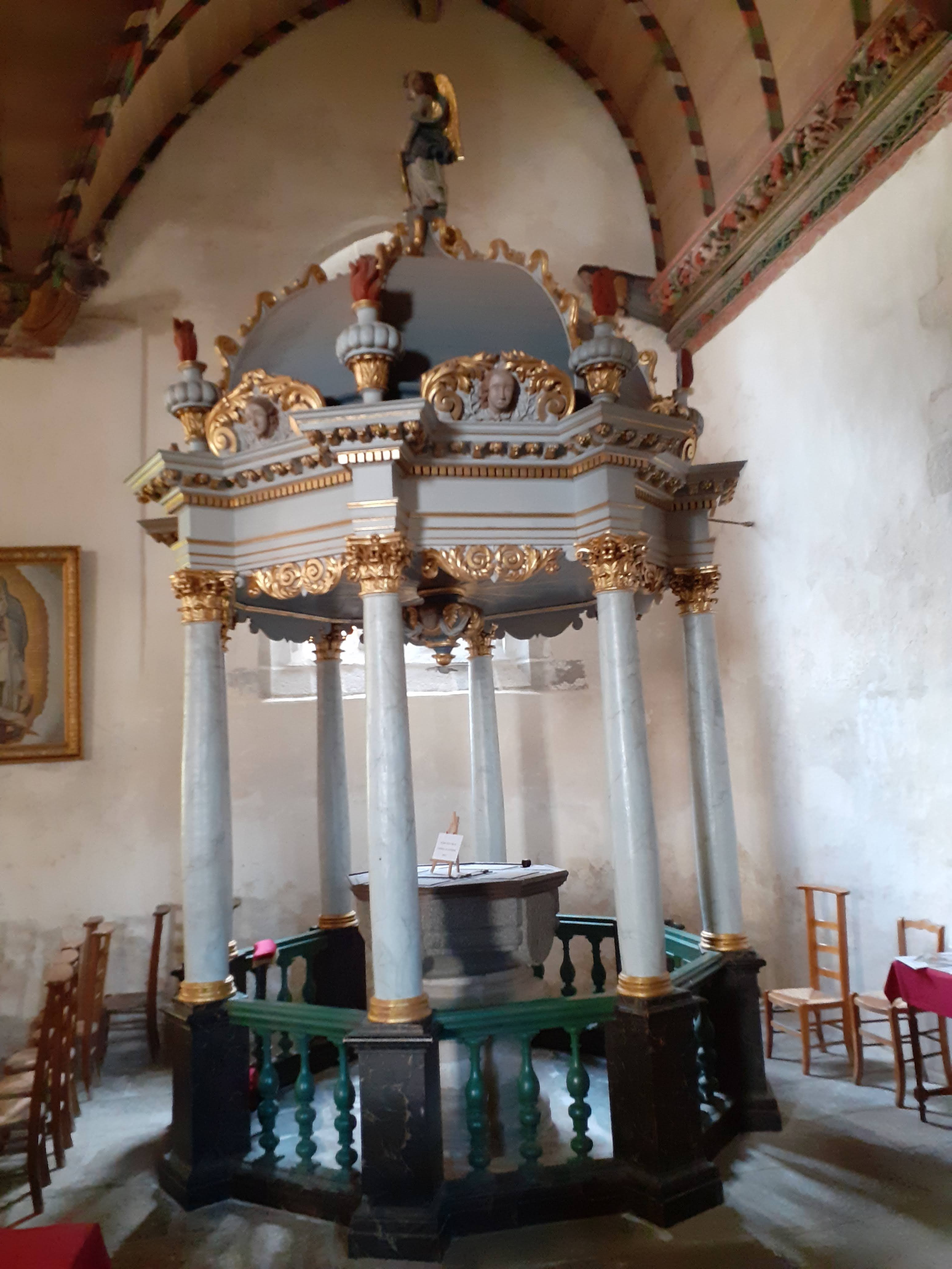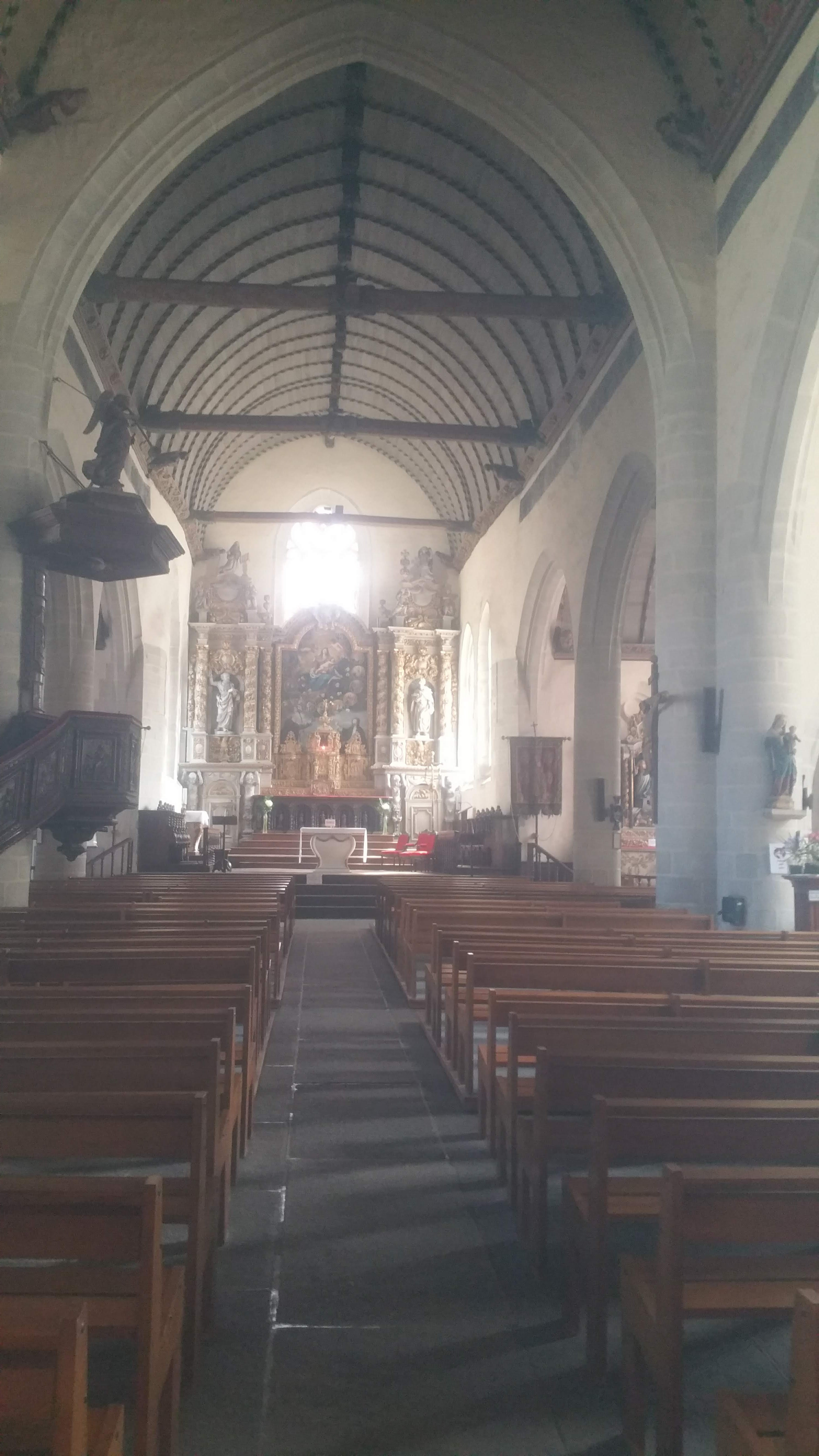 A voir, l'intérieur de l'église a été refait ,charpente apparente et moulures sculptées, sublimes
