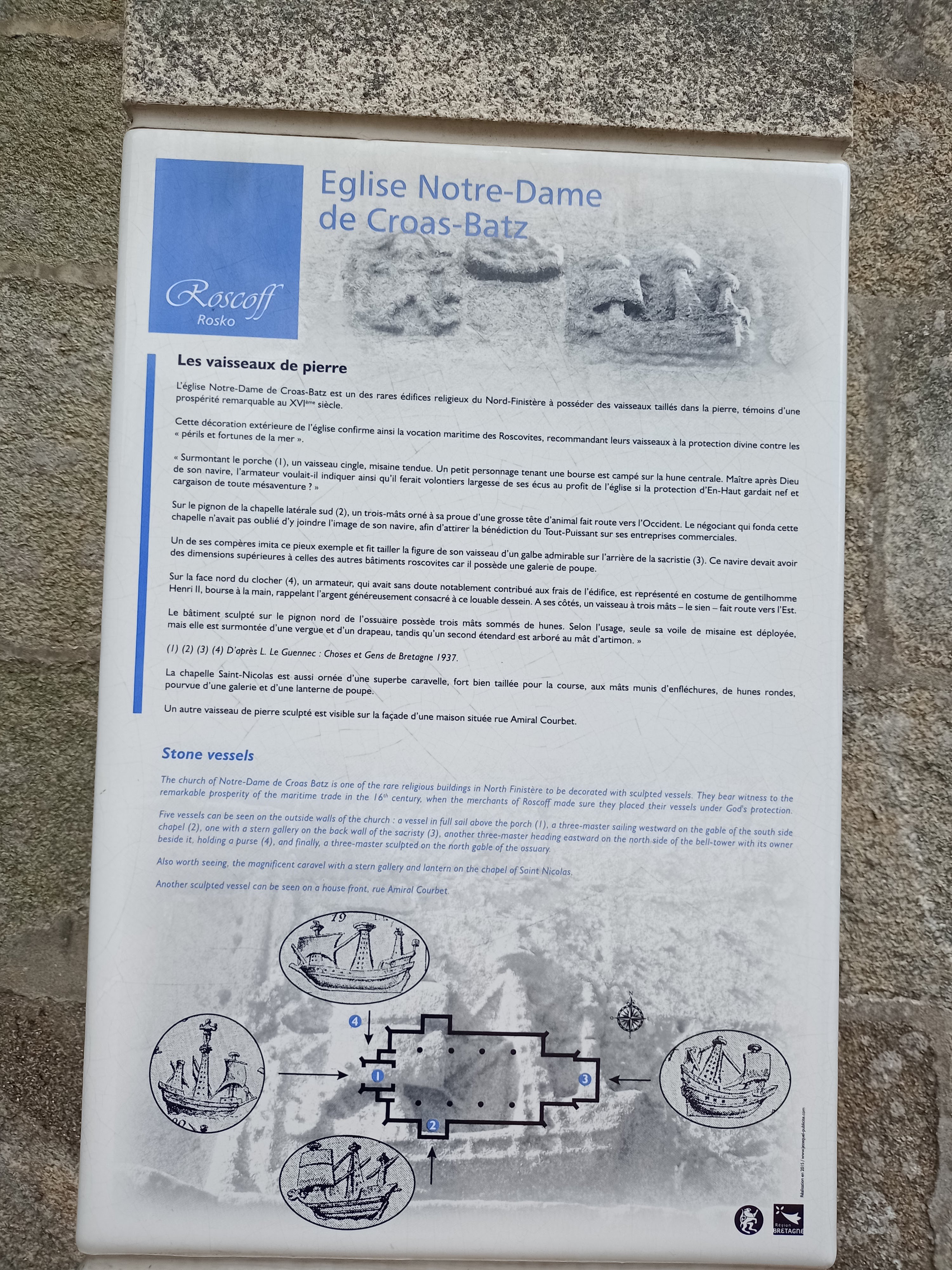 De retour de l’île de Batz, petite visite de Roskoff, sa vieille ville, ses vieilles bâtisses et son église Notre-Dame-de-Croaz-Batz. Clocher et décorations intérieures vraiment remarquables.
