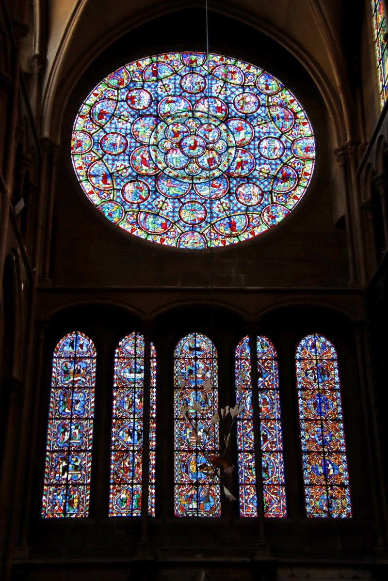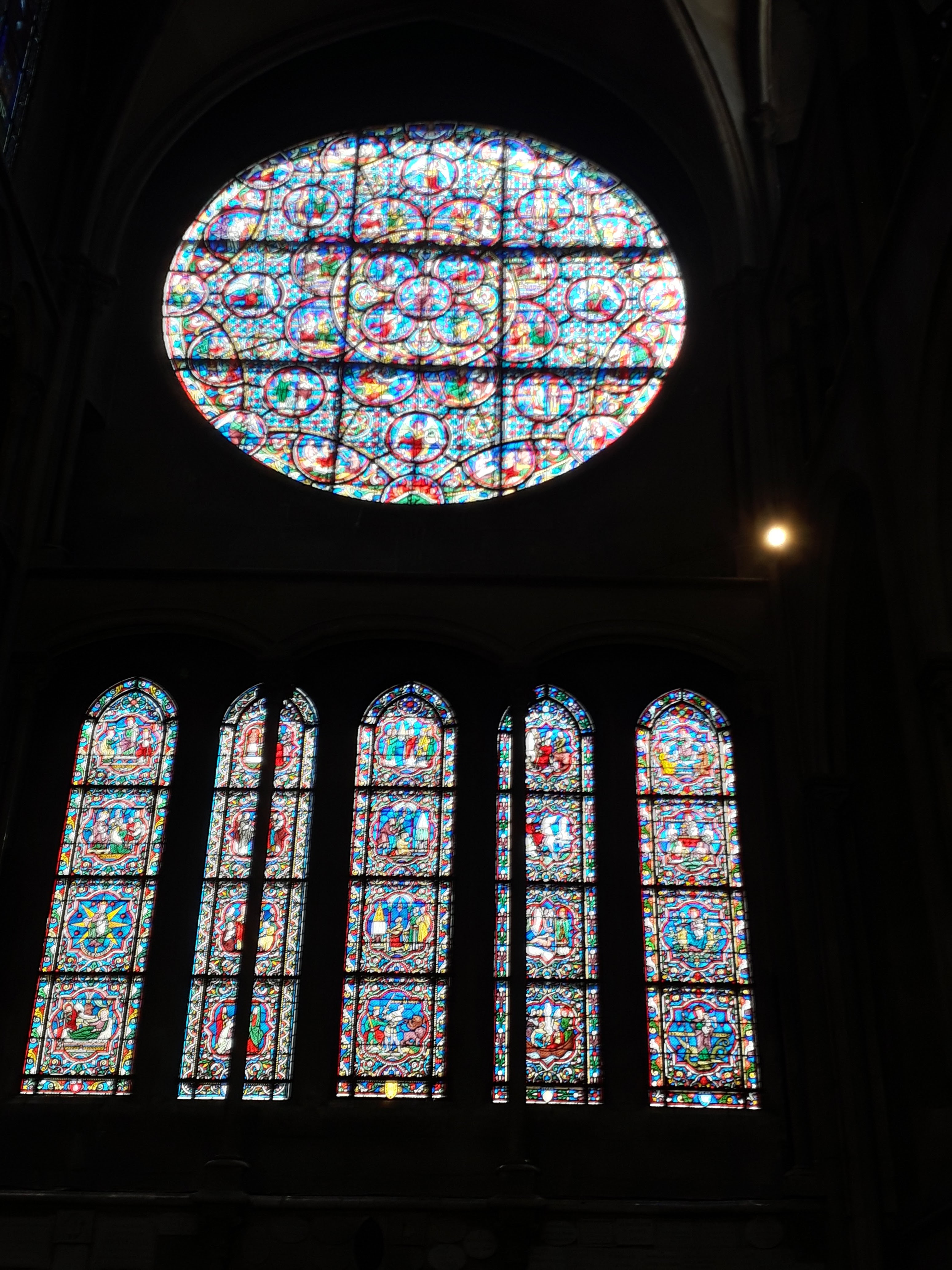 De beaux vitraux avec la fameuse chouette de Dijon.