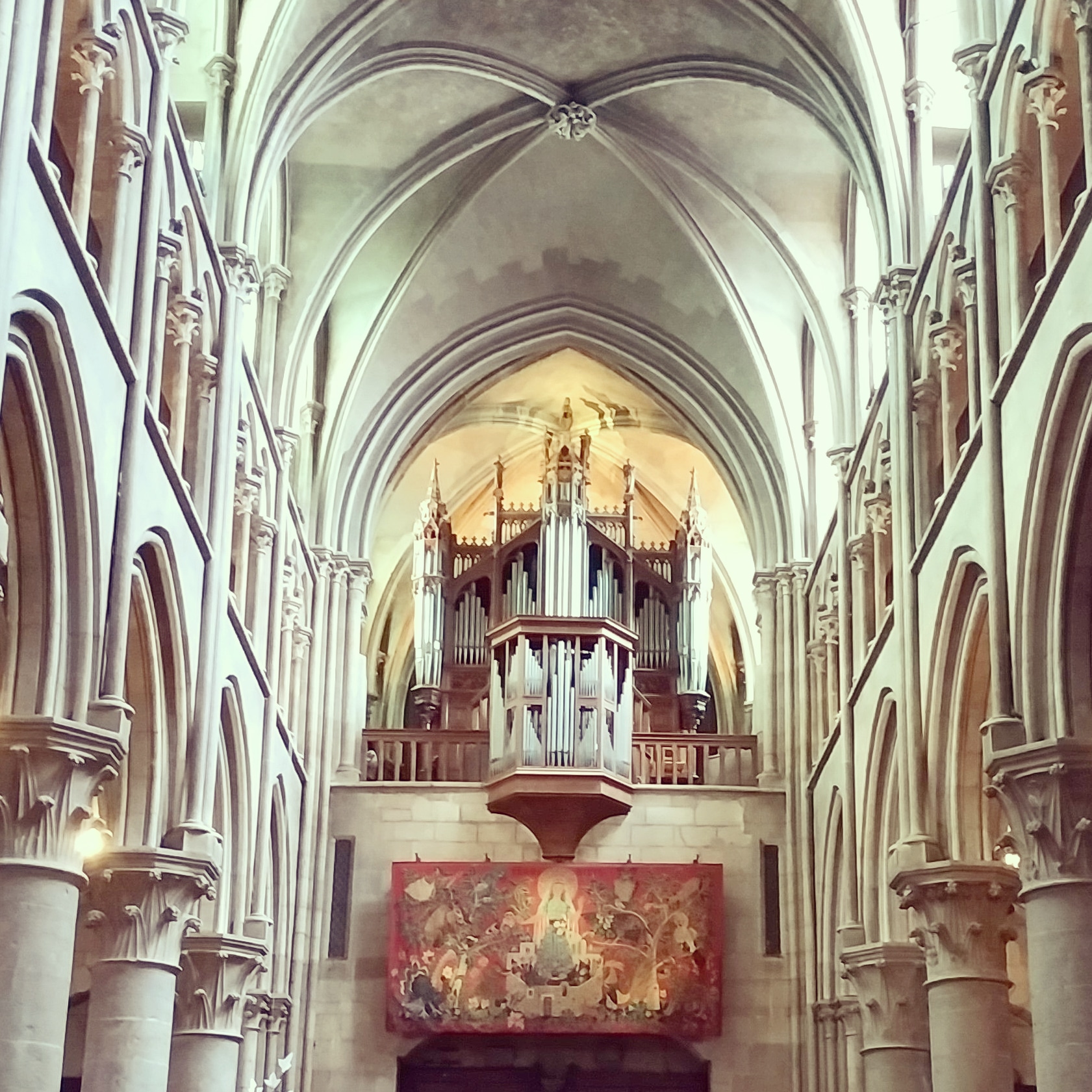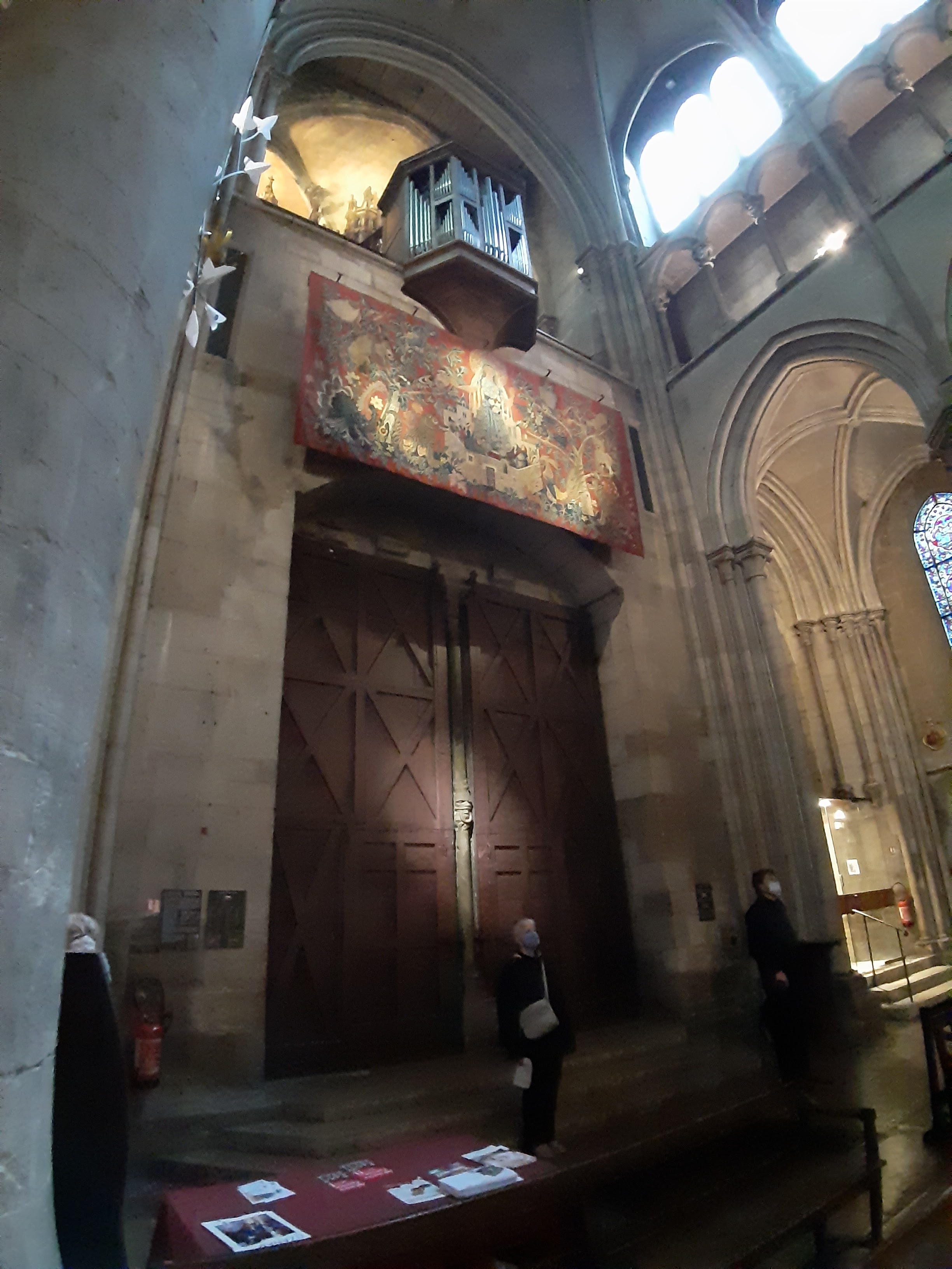 Magnifique église avec de très beaux vitraux et j'aime beaucoup l'orgue et la tapisserie en dessous. La façade est atypique et la chouette porte bonheur sur le côté.