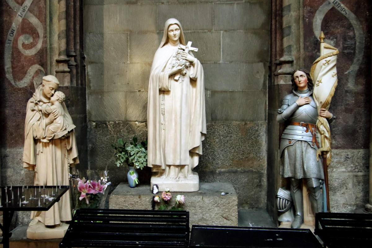 Belle église avec de nombreux saints qui sont honorés (ste thérèse, st joseph, st antoine, st joseph …)