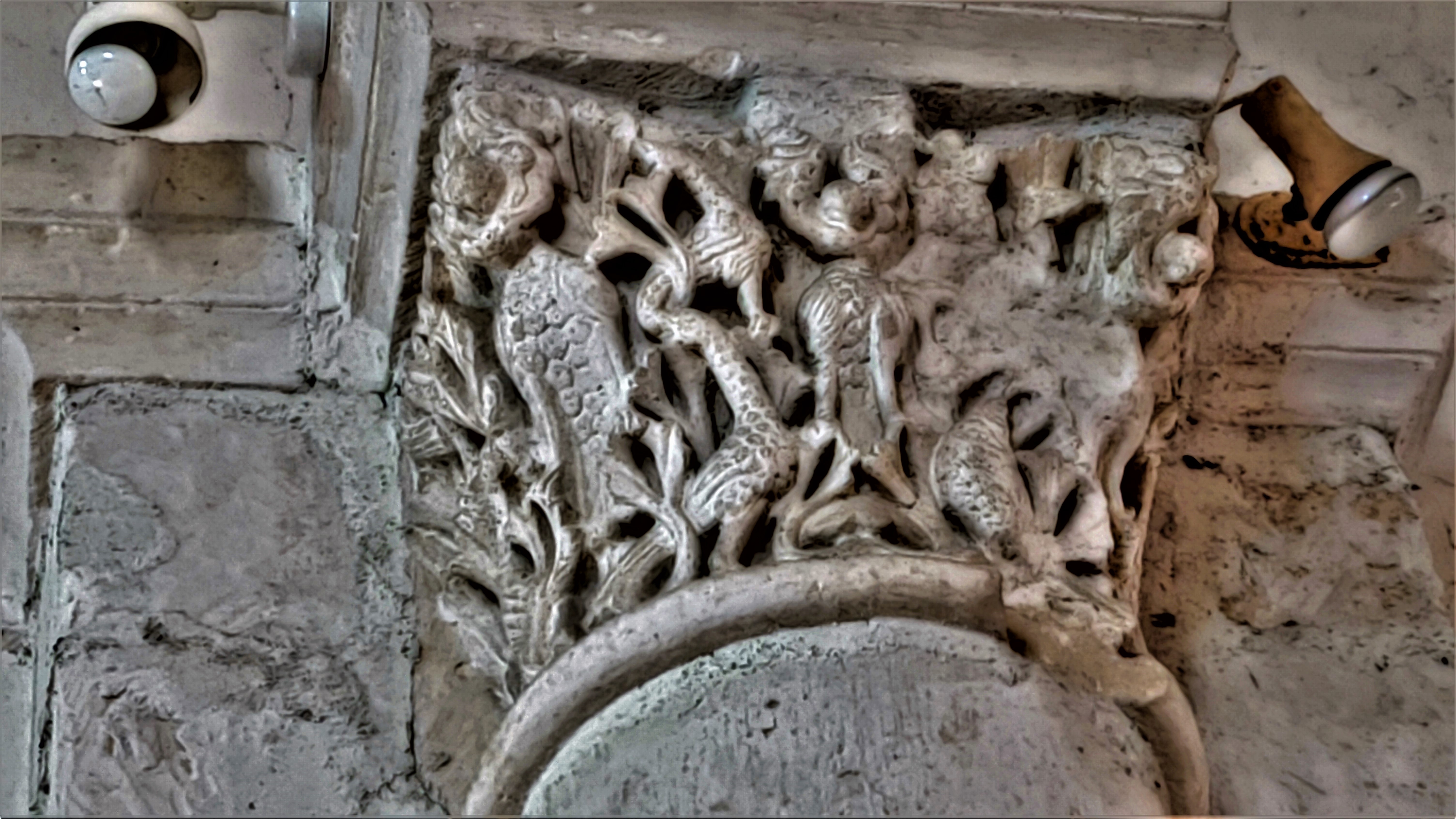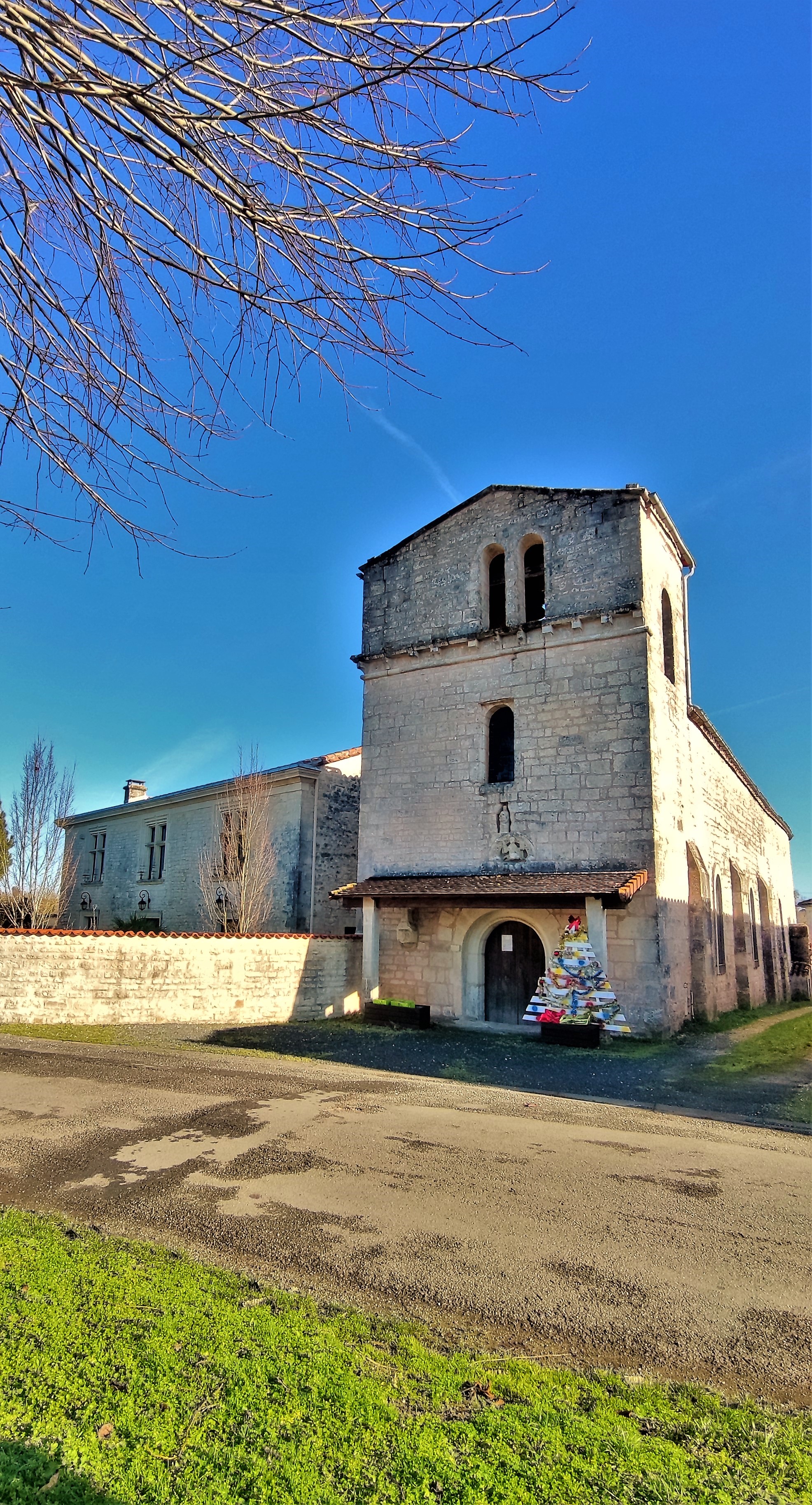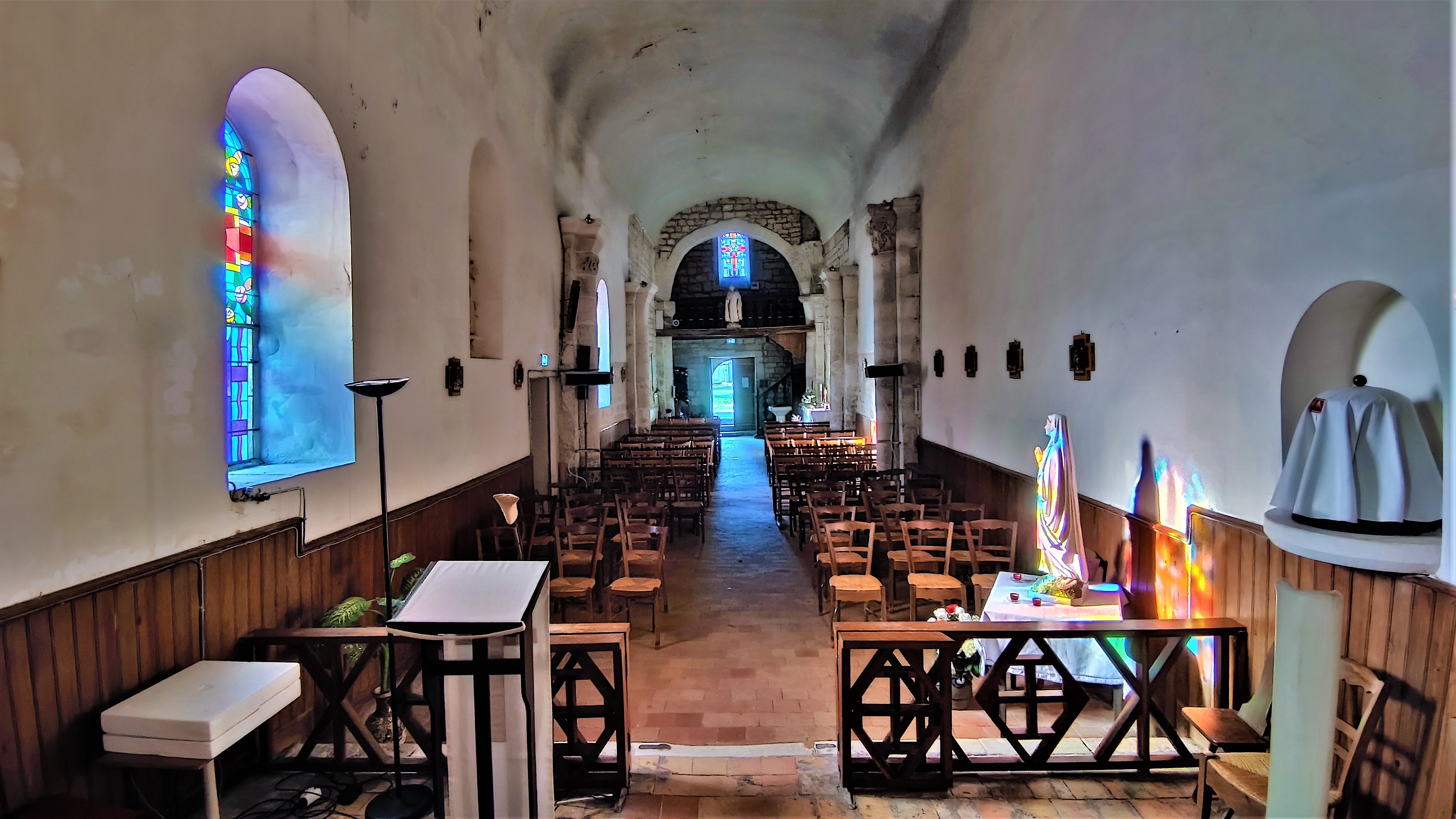 Église du 12ème souvent remaniée, c'est un charmant témoin presque millénaire de la vie de la cité. Victime de la guerre de cent ans, elle fut restaurée, puis connut une destruction partielle pendant les guerres de religions. Reconstruite en partie au 17è et 18è, sa voûte primitive, disparue pendant les conflits du 16è fut remplacée au 19è par une voûte en briques. Les décors sur la façade, les chapiteaux sculptés, la statuaire, sont autant d'éléments historiques à découvrir. Dans la nef, une des colonnes, porteuses de la voûte du 12ème, laisse voir un pendentif, signe de l'existence d'une coupole ou d'un alignement de coupoles. Pour entrer, j'ai demandé à la mairie, je remercie mon interlocutrice et mon interlocuteur pour leur disponibilité et leur efficacité.