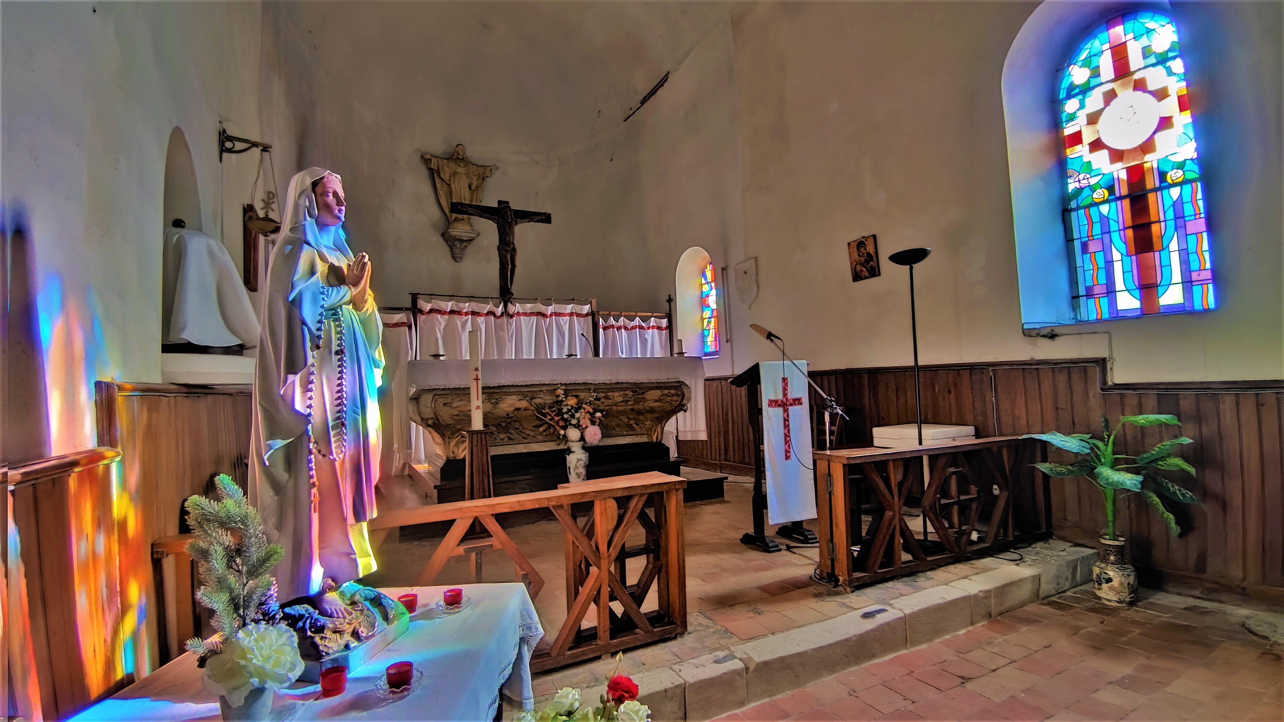 Aucune ouverture dans cette église qui réveille notre claustrophobie !